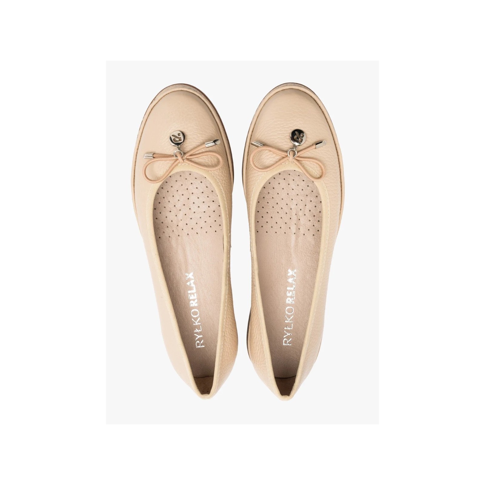 Czarne skórzane baleriny Ryłko z ozdobną kokardą