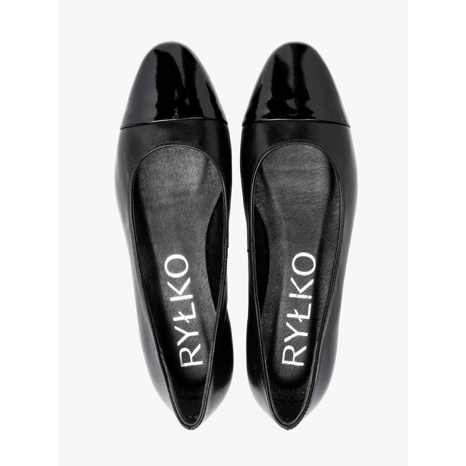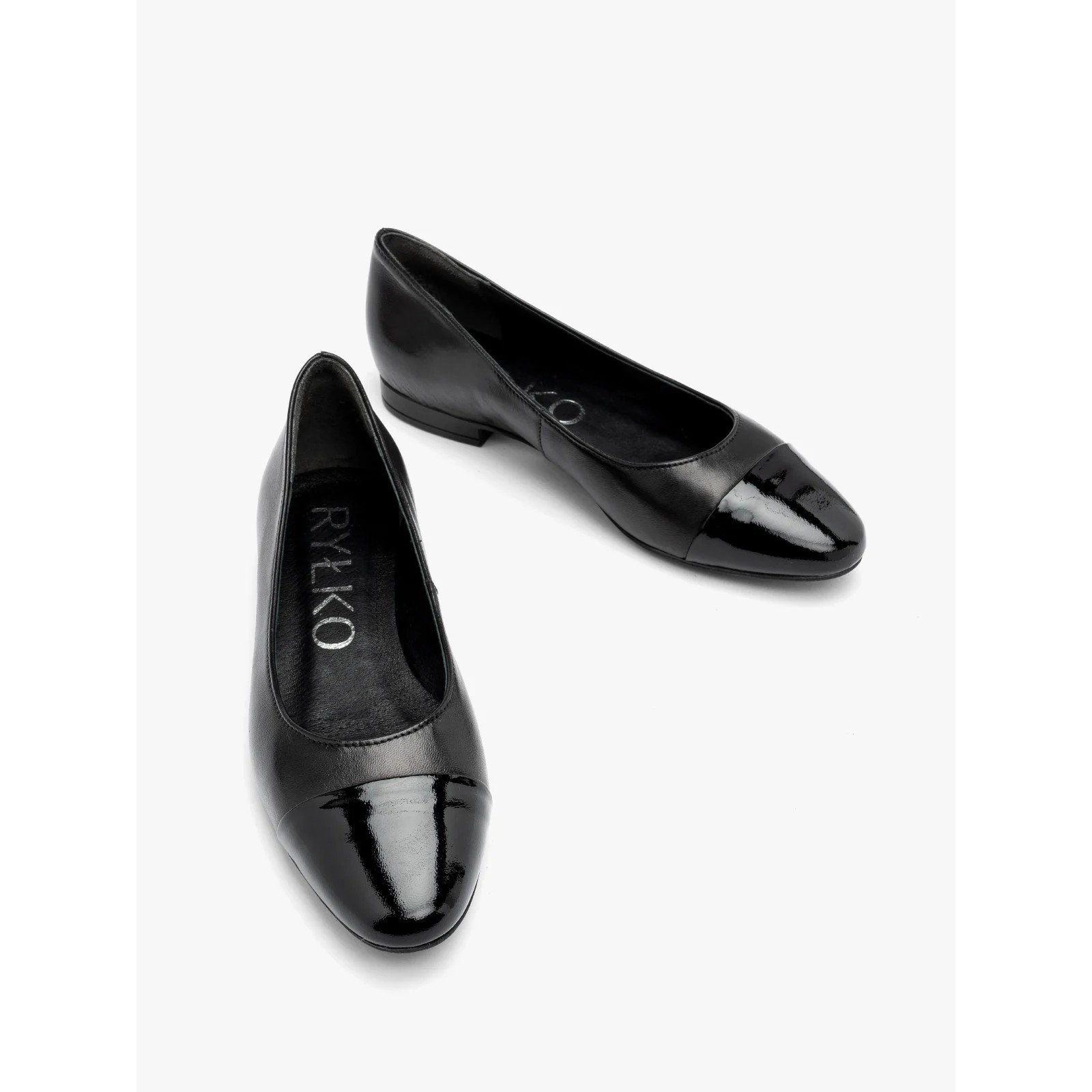 Czarne skórzane baleriny Ryłko z ozdobną kokardą