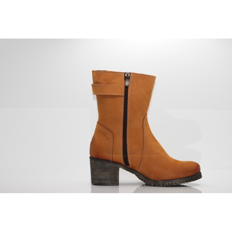 Stabilny obcas typu klocek zapewnia komfort podczas noszenia, a staranne wyprofilowanie dba o wygodę przez cały dzień. Cholewka z nubuku podkreśla naturalny urok butów, nadając im wyjątkowego charakteru. Zapięcie na suwak ułatwia zakładanie i zdejmowanie, dodając praktyczności.