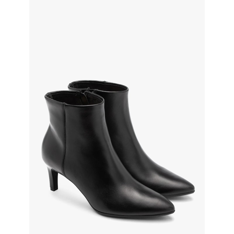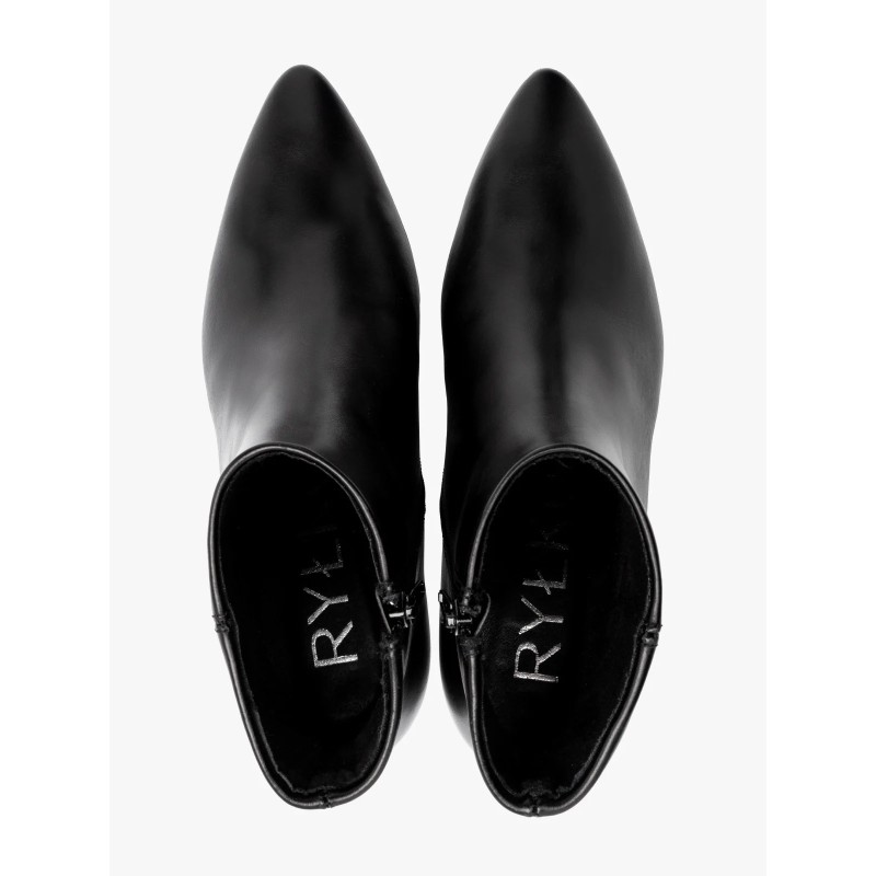 Czarne botki skórzane Ryłko na szpilce z noskiem w szpic
