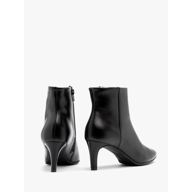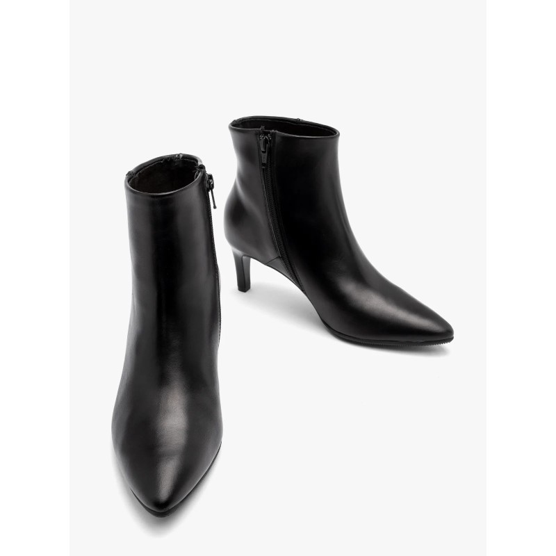 Cholewka botków wykonana jest z naturalnej skóry o gładkiej fakturze, która nadaje im elegancji i zapewnia trwałość. Subtelne przeszycia podkreślają staranne wykończenie, a nosek w szpic dodaje butom smukłości i wyrafinowania. Zapięcie na zamek z boku ułatwia szybkie zakładanie i zdejmowanie obuwia, co jest szczególnie praktyczne podczas codziennego użytkowania. Smukła linia cholewki płynnie podkreśla kształt nogi, nadając jej elegancki wygląd.