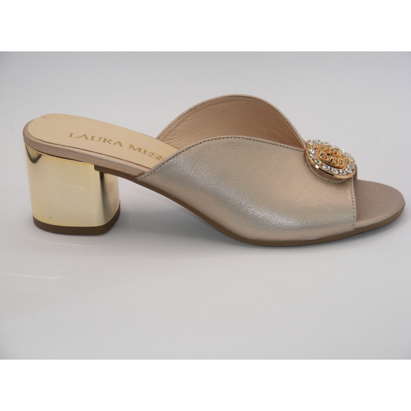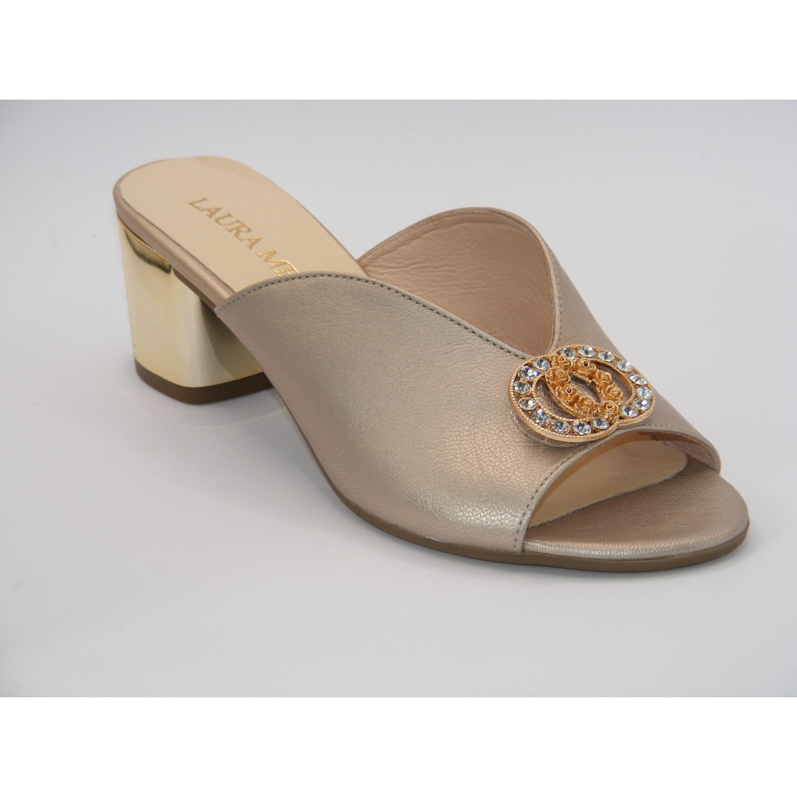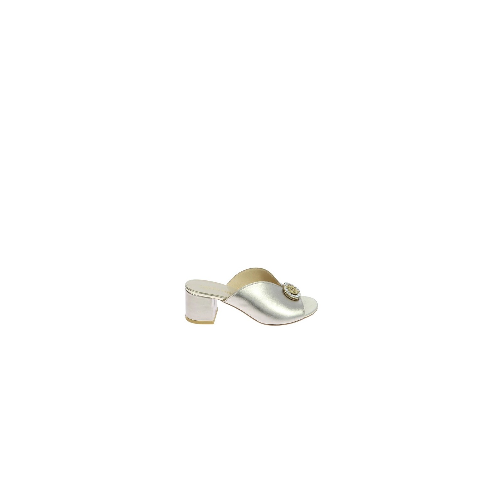Złote klapki na klocku z ozdobą Laura Messi2714