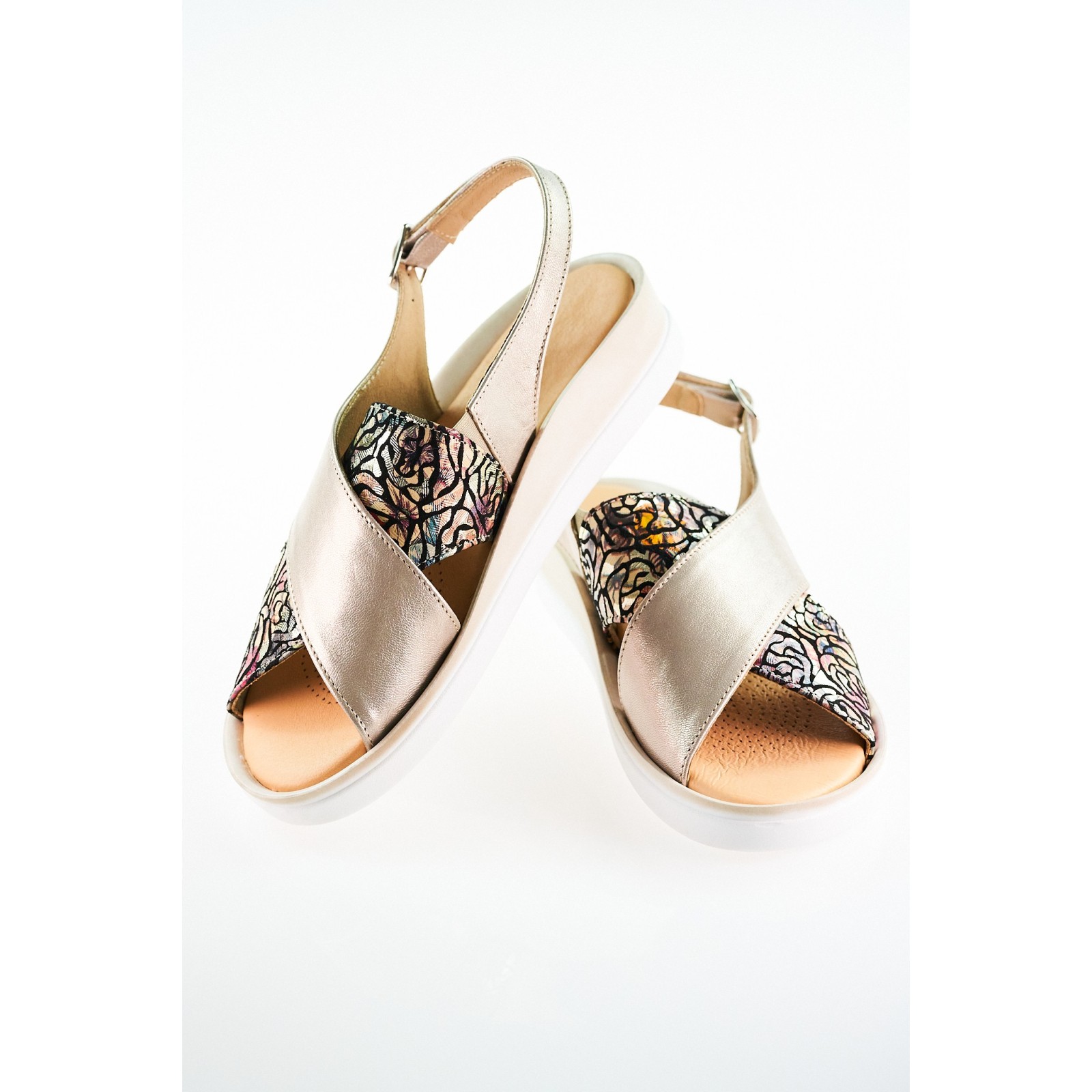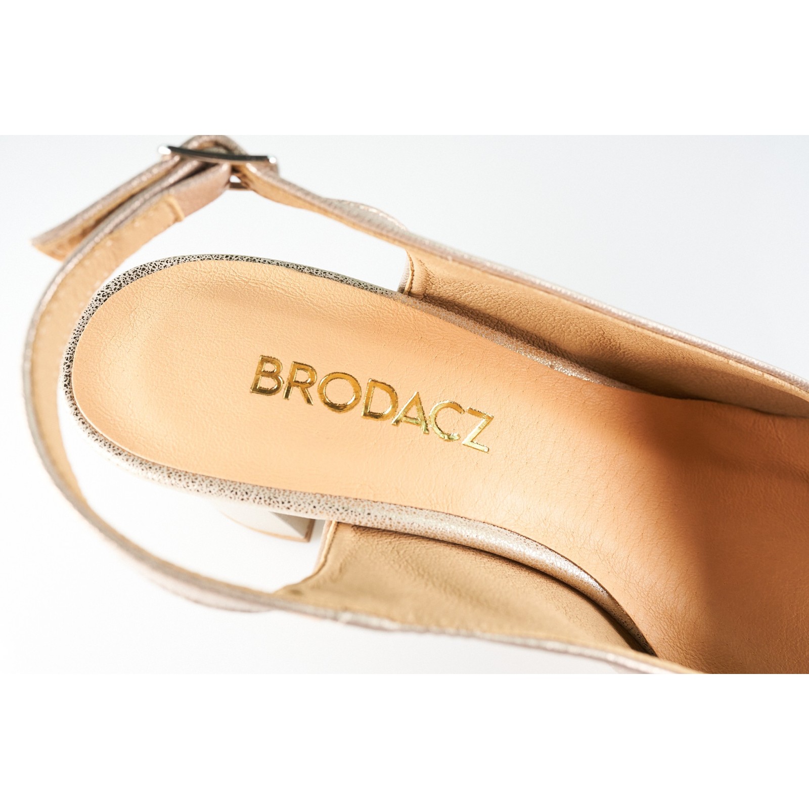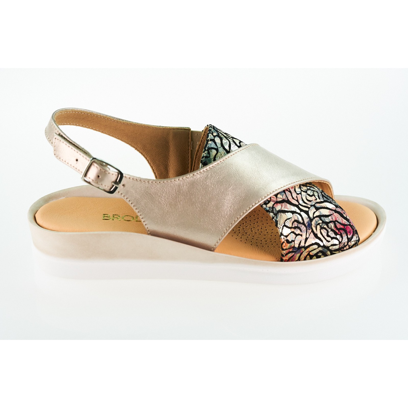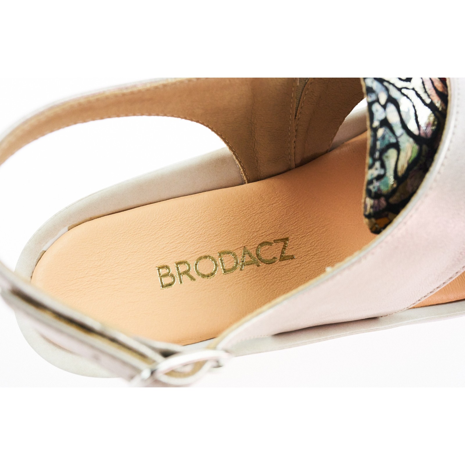 Skórzane sandały Brodacz na koturnie w kolorze paltynowym z motywem kwiatowym – styl i wygoda na lato