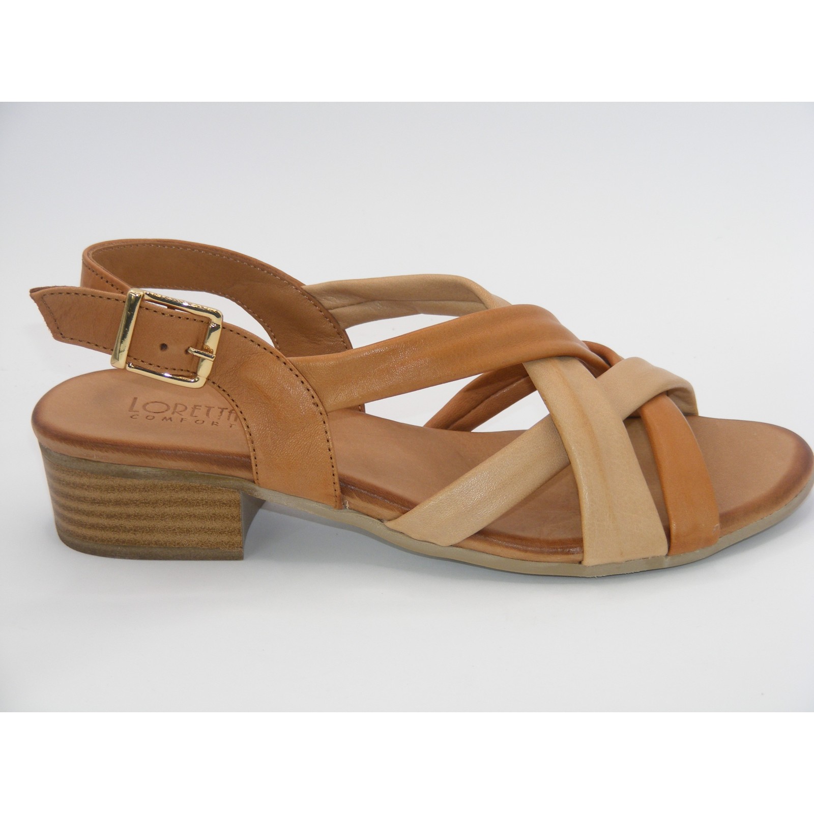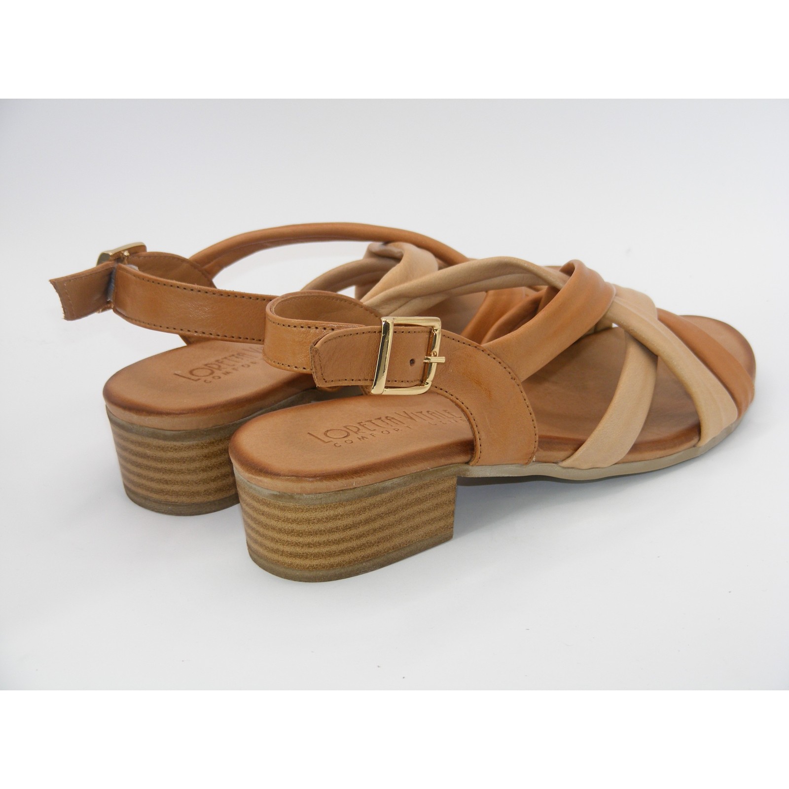 Styl i wygoda w letnim wydaniu! Sandały Loretta Vitale to połączenie elegancji z komfortem noszenia na co dzień. Wykonane z wysokiej jakości naturalnej skóry w odcieniach karmelu i beżu, zachwycają ponadczasowym designem oraz miękkim wykończeniem. Skrzyżowane paski efektownie układają się na stopie, zapewniając stabilność i modny wygląd. Niski, szeroki obcas dodaje sylwetce lekkości, a jednocześnie gwarantuje wygodę nawet przez cały dzień.
