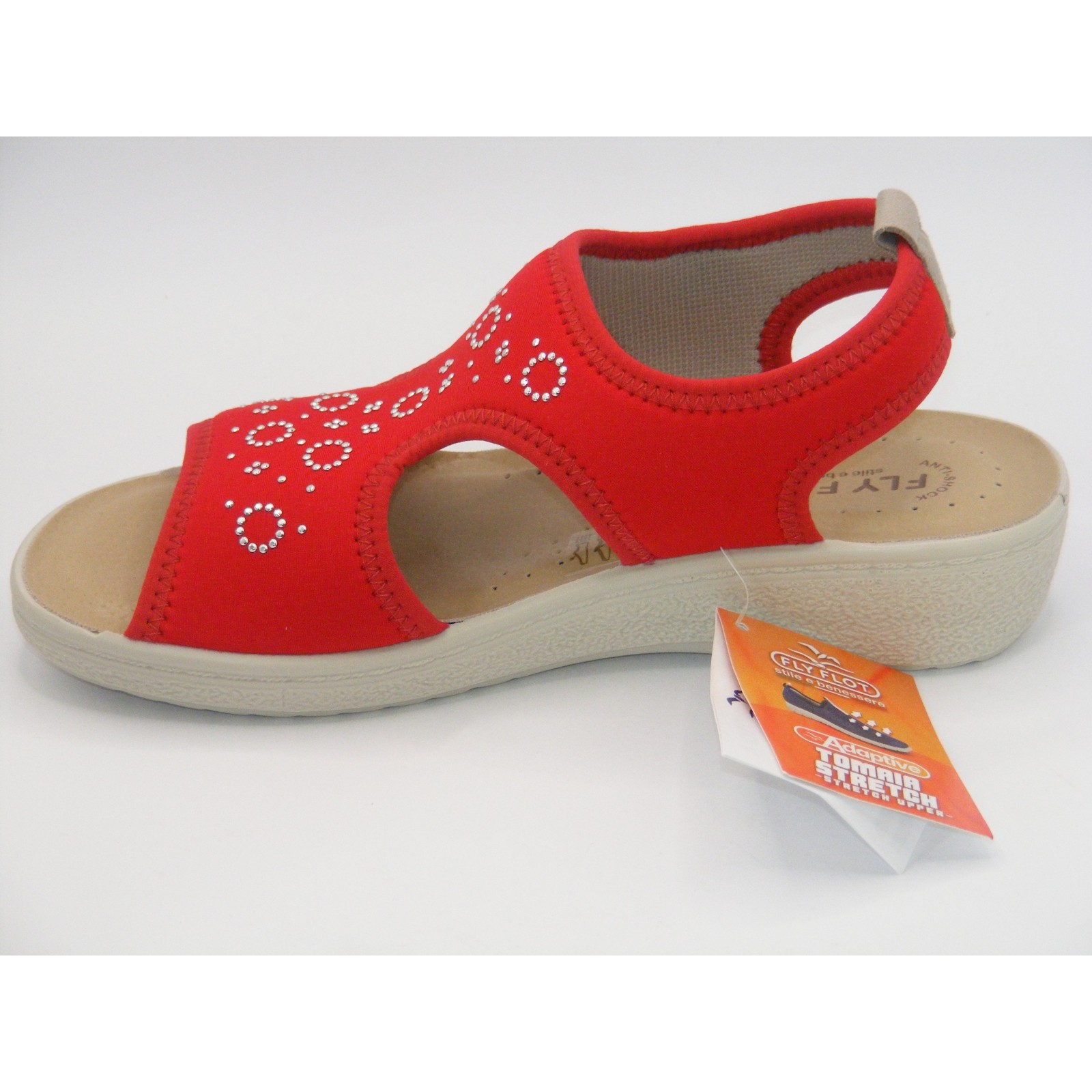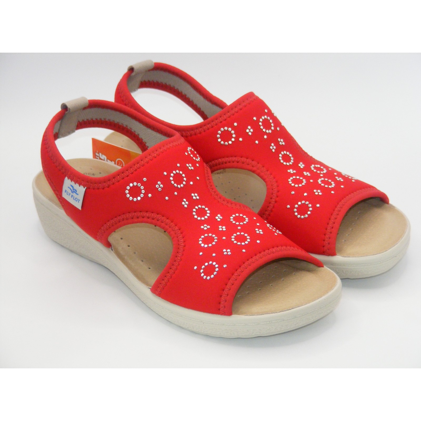 Damskie sandałki Fly Flot z elastycznego stretch w kolorze czerwonym – komfort i styl na co dzień
