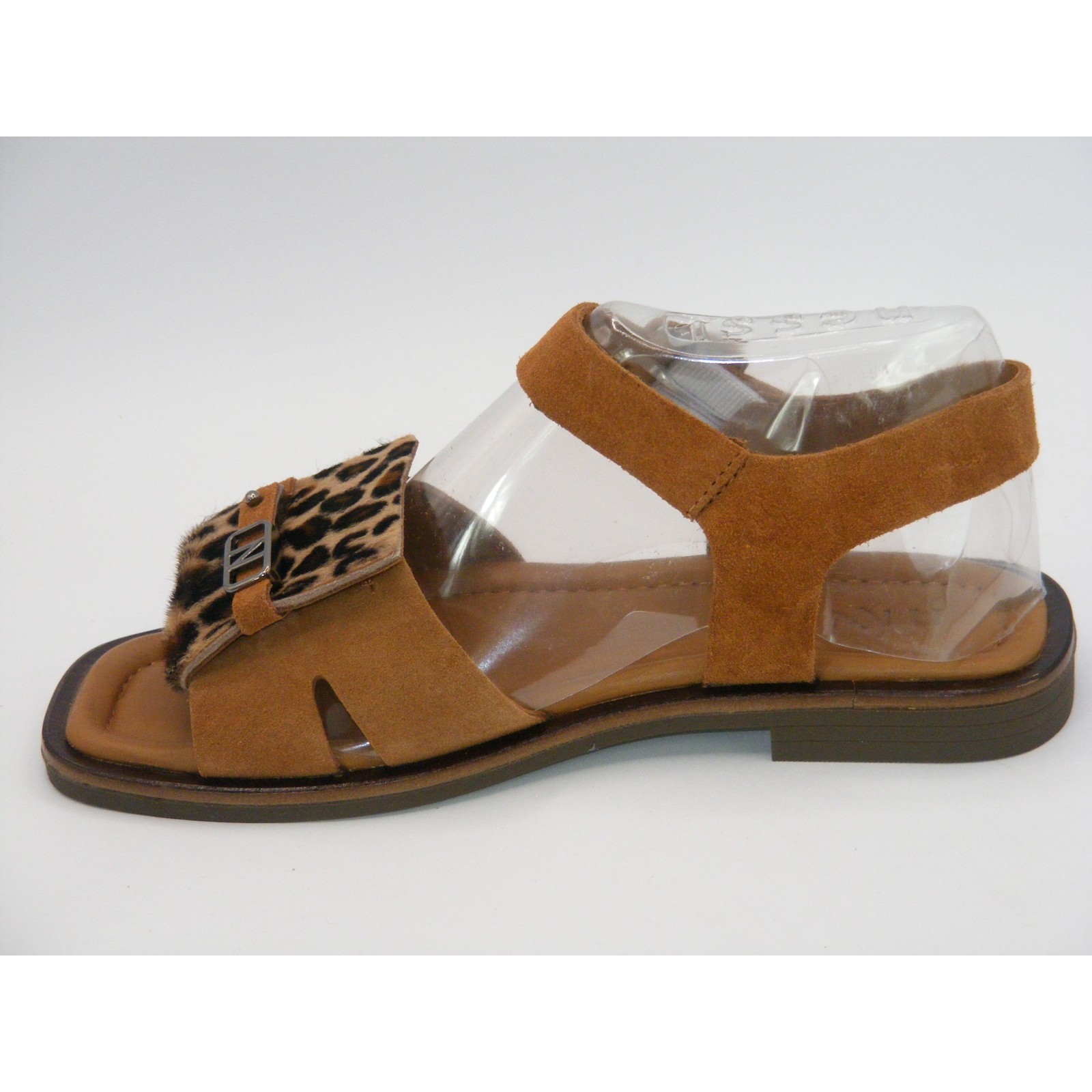 Brązowe zamszowe sandały Ravini z motywem panterki – wygoda i drapieżny akcent