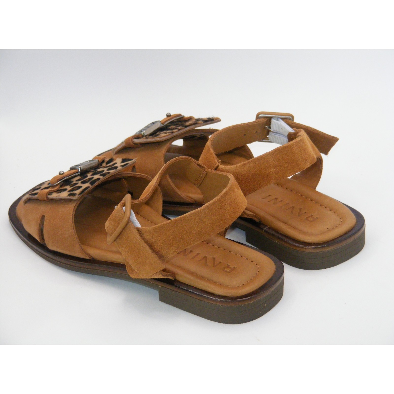 Brązowe zamszowe sandałki Ravini z panterkowym akcentem to doskonałe połączenie wygody, jakości i stylowego wykończenia – świetnie pasują do sukienek, szortów i spodni.
