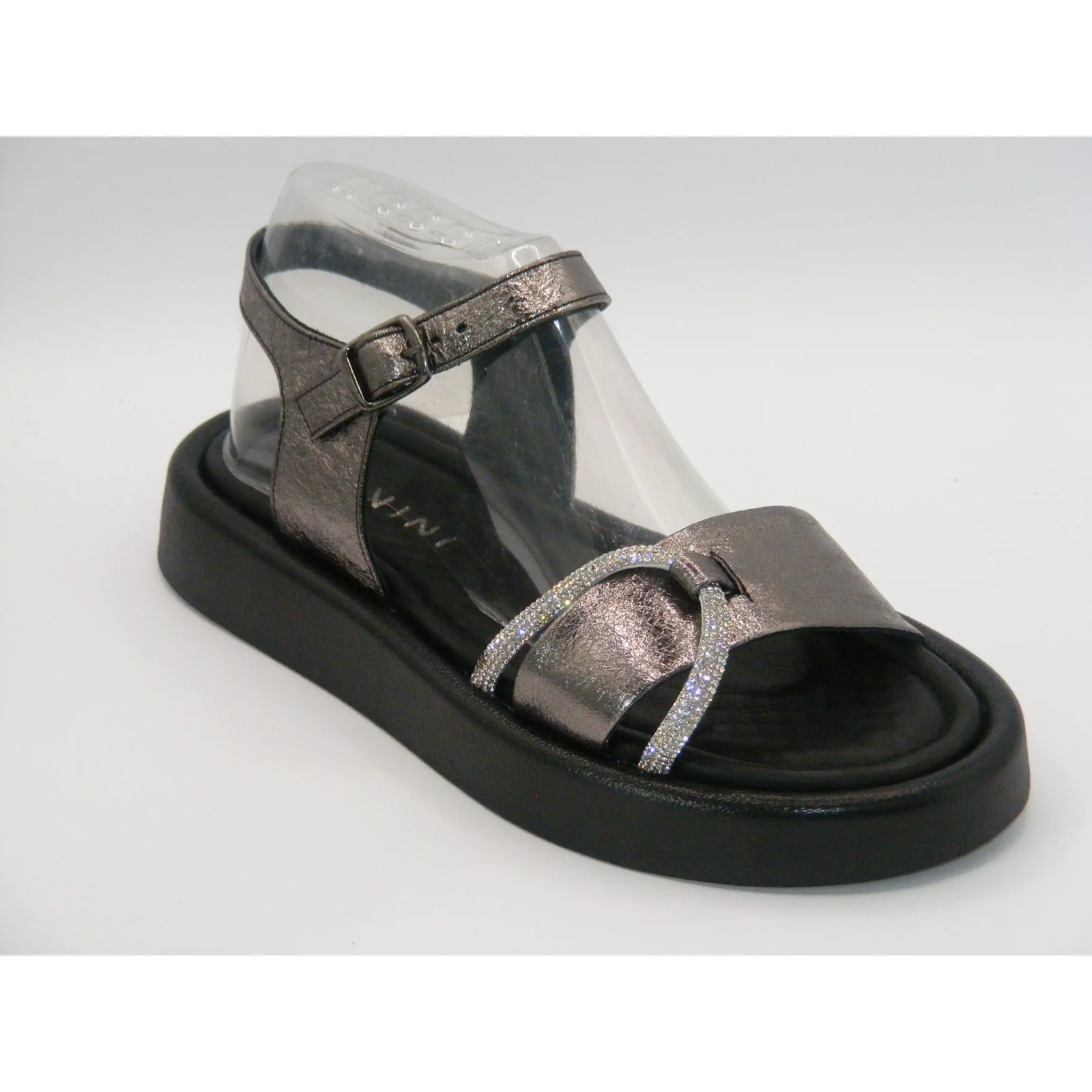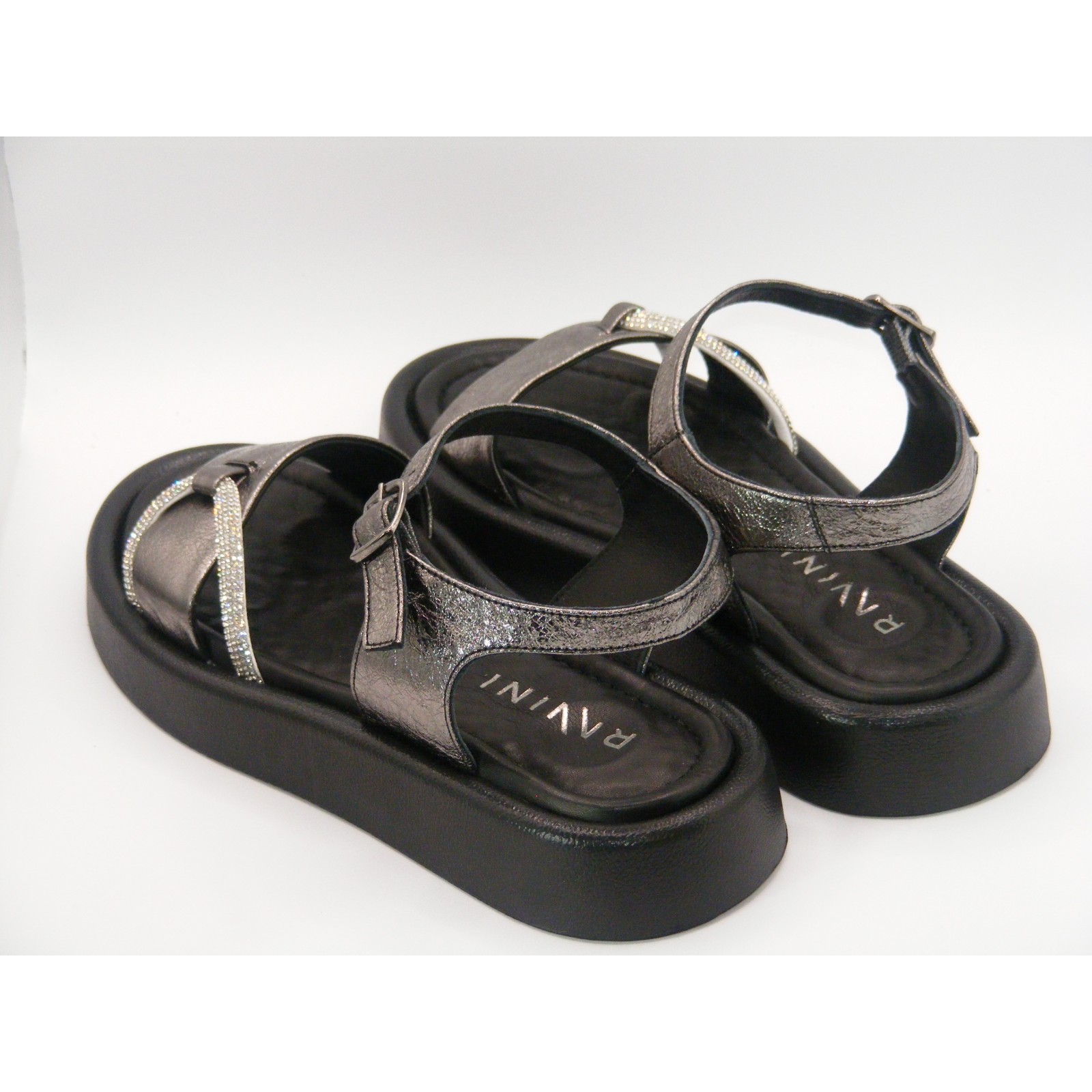 Sandały Ravini w odcieniu ciemnego srebra to świetne uzupełnienie letnich stylizacji – pasują do sukienek, spodni i spódnic, dodając im szyku i lekkości.