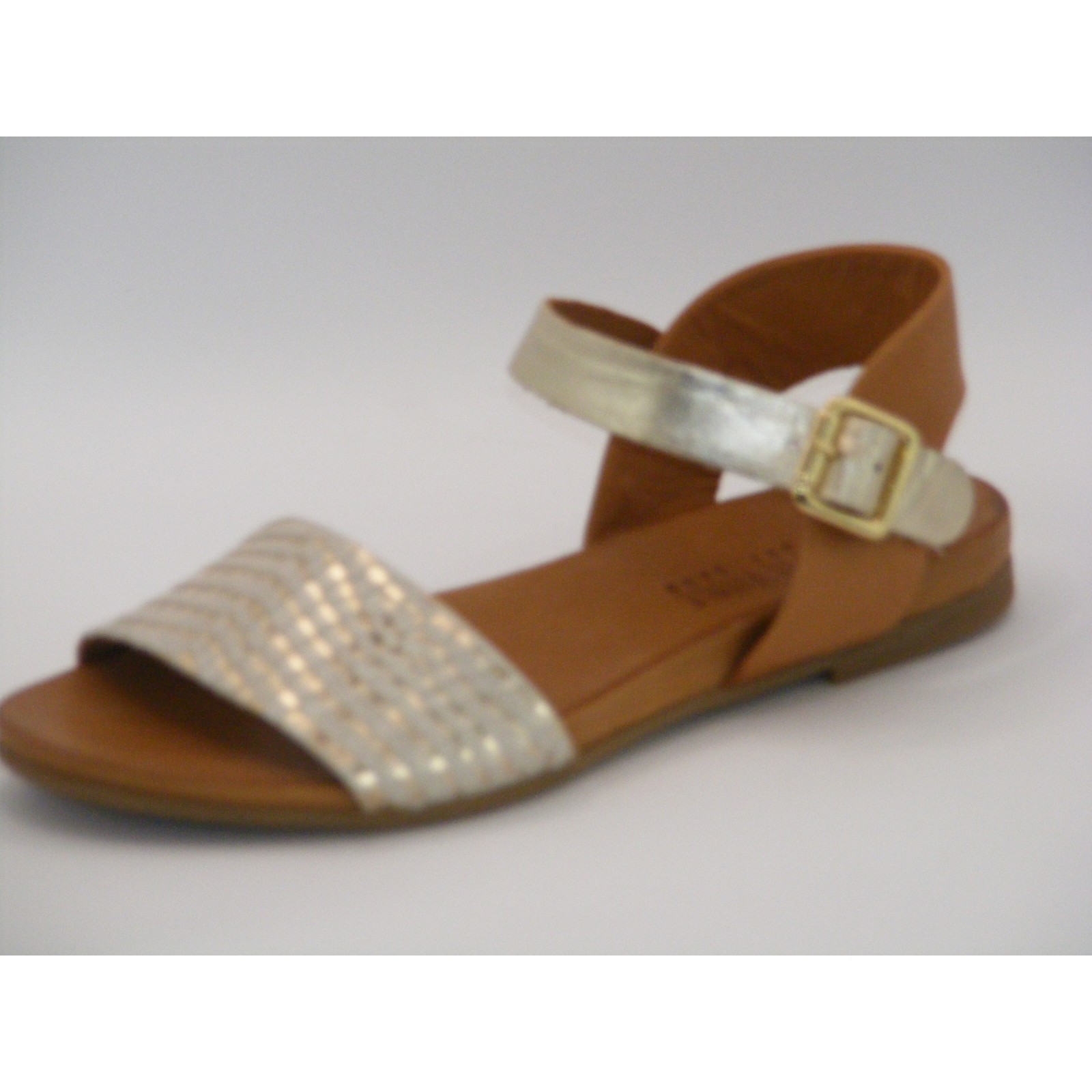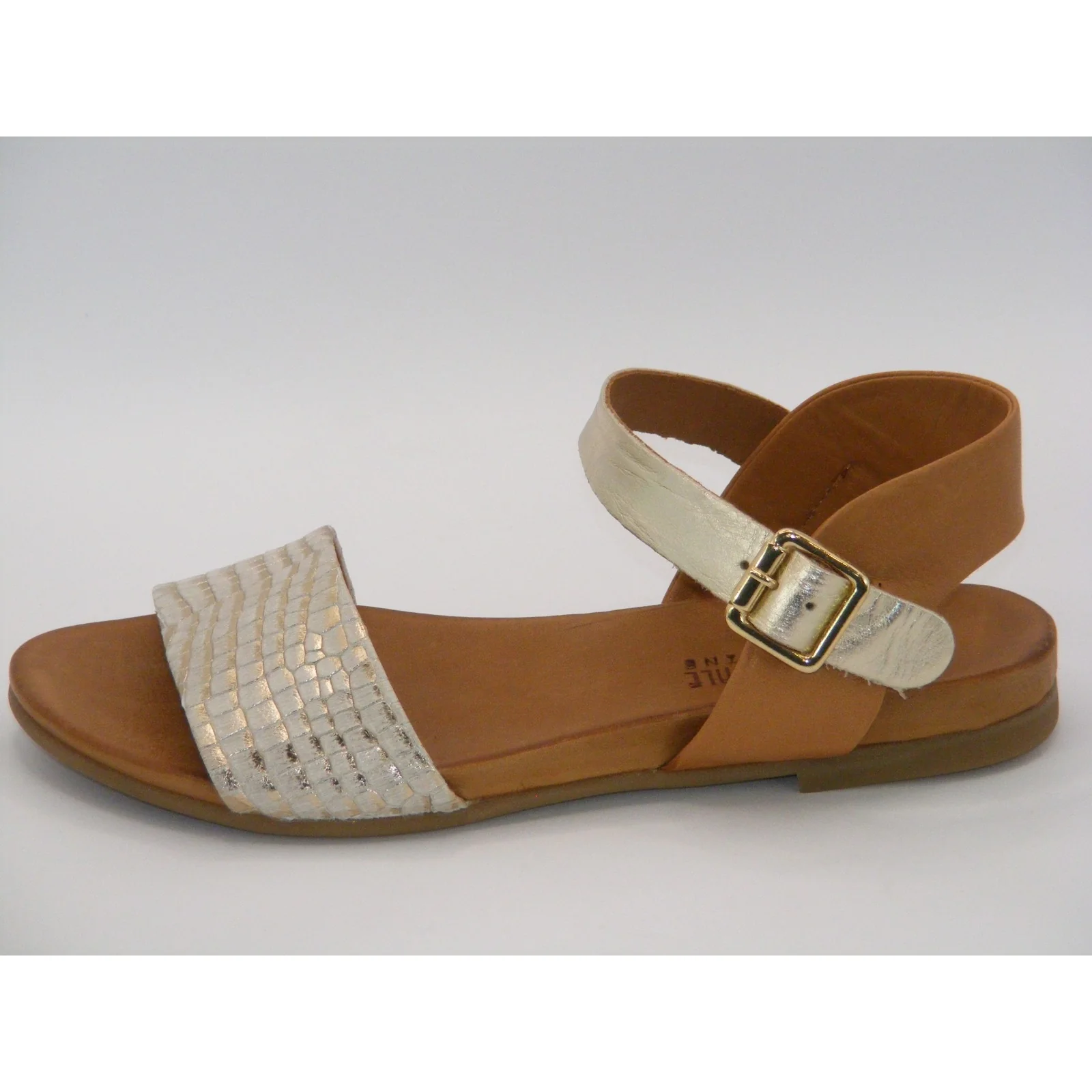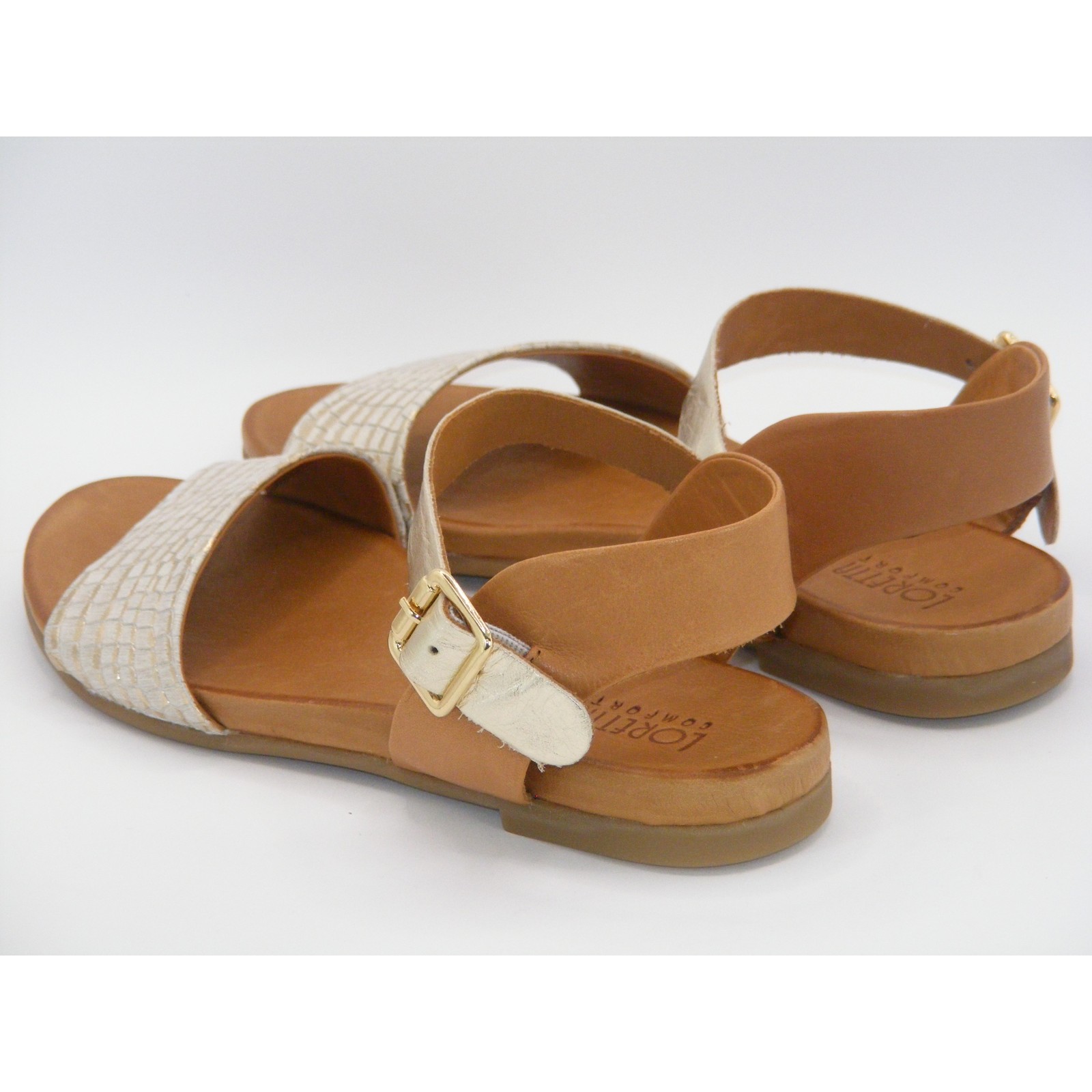 Dodaj swojej letniej stylizacji szyku i wygody z sandałkami Loretta Vitale w eleganckim brązowo-złotym kolorze. Wykonane z wysokiej jakości naturalnej skóry, zachwycają subtelnym połyskiem i starannym wykończeniem. Płaski spód zapewnia komfort podczas całodziennego noszenia, a klasyczne zapięcie gwarantuje stabilność i dobre dopasowanie do stopy.