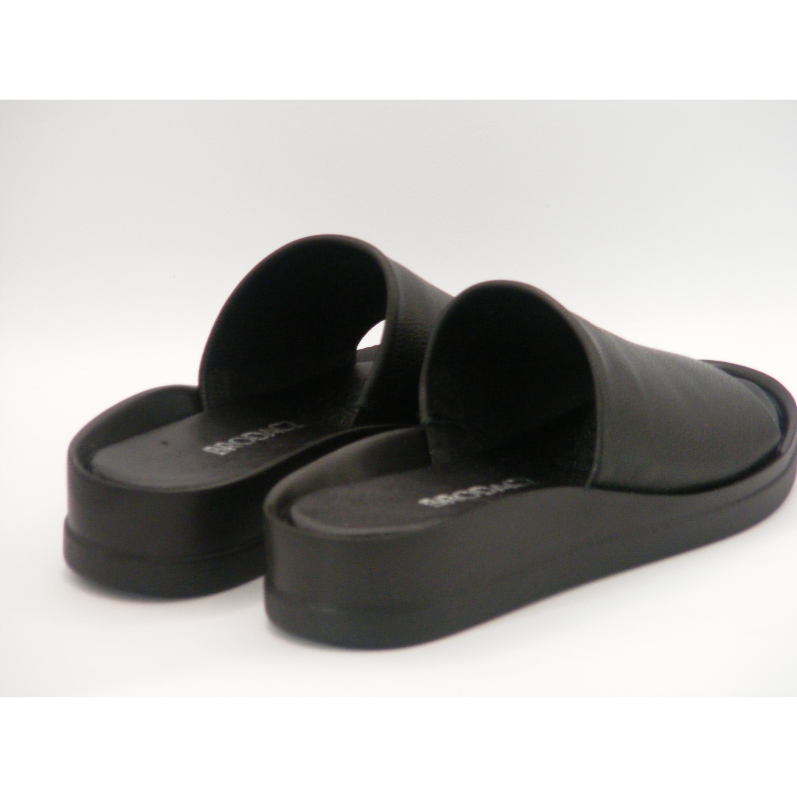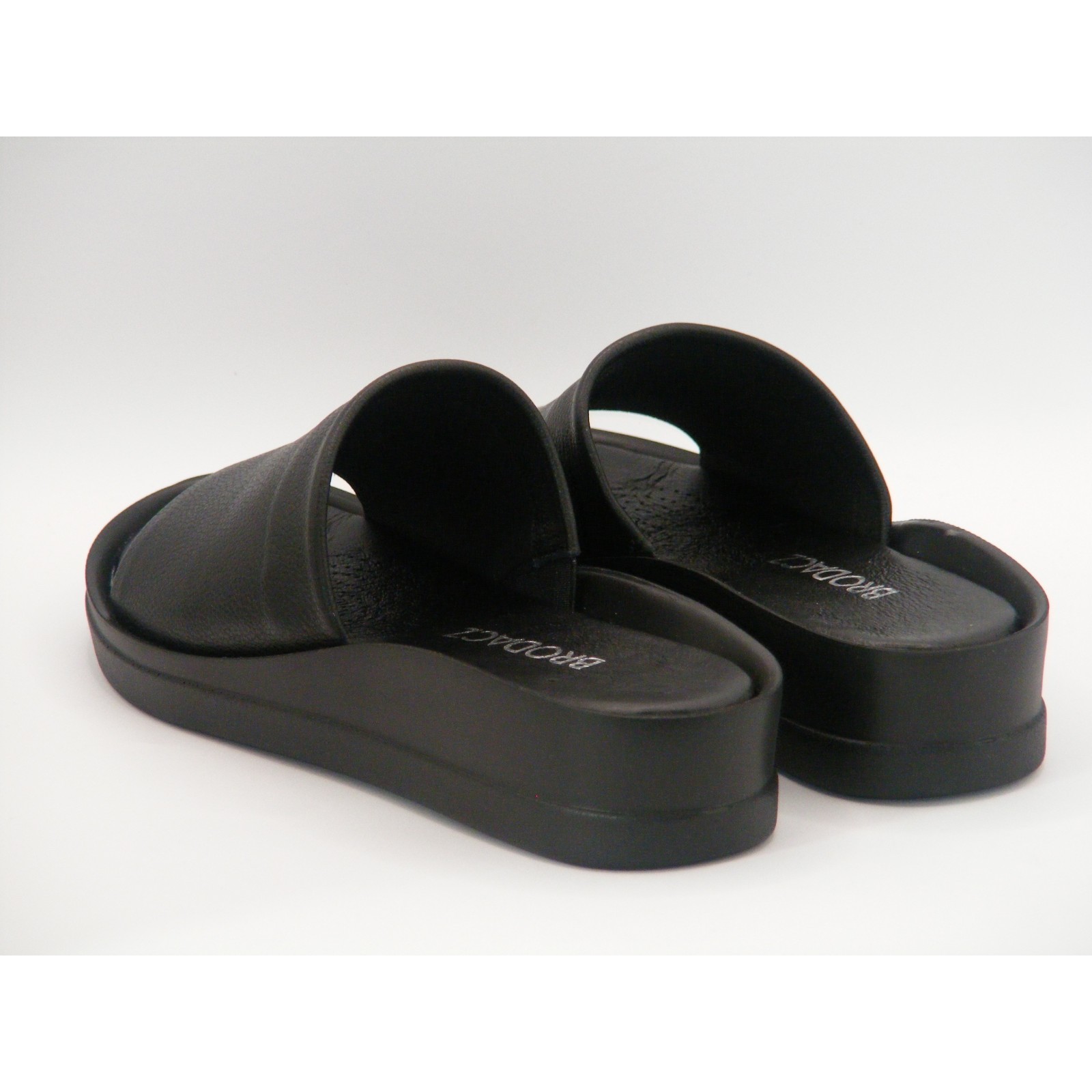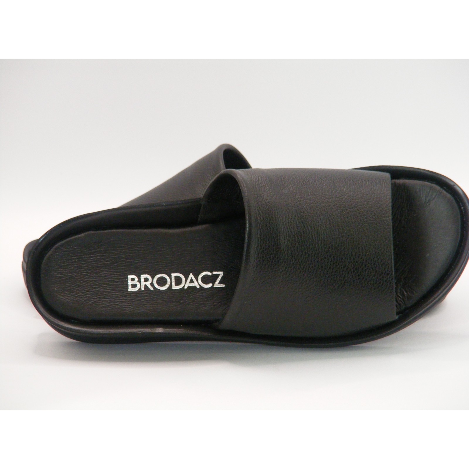 Postaw na ponadczasową klasykę z klapkami skórzanymi Brodacz w kolorze głębokiej czerni. Ręcznie wykonane z naturalnej skóry, osadzone na niskiej i stabilnej koturnie – idealne dla kobiet ceniących elegancję bez rezygnacji z komfortu.