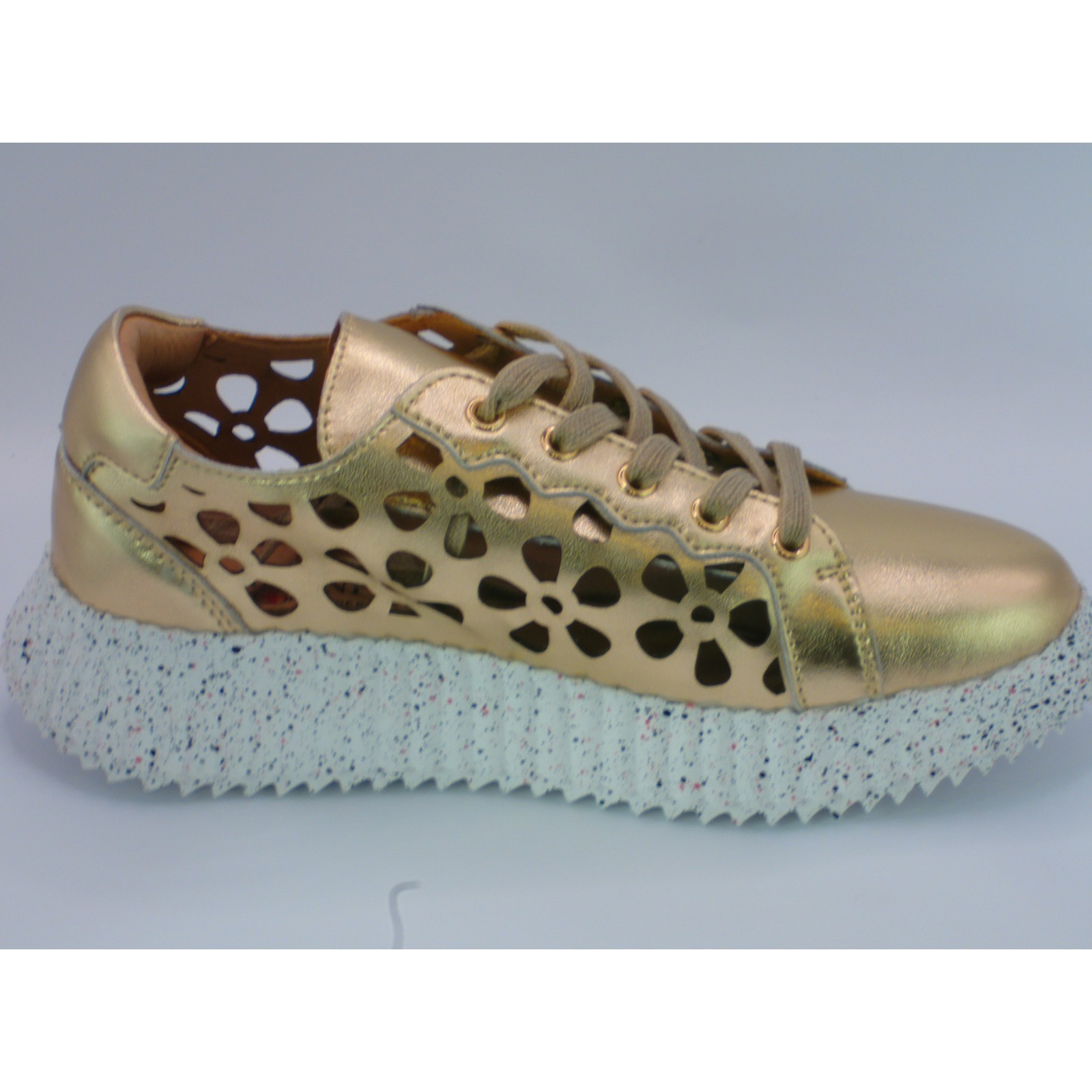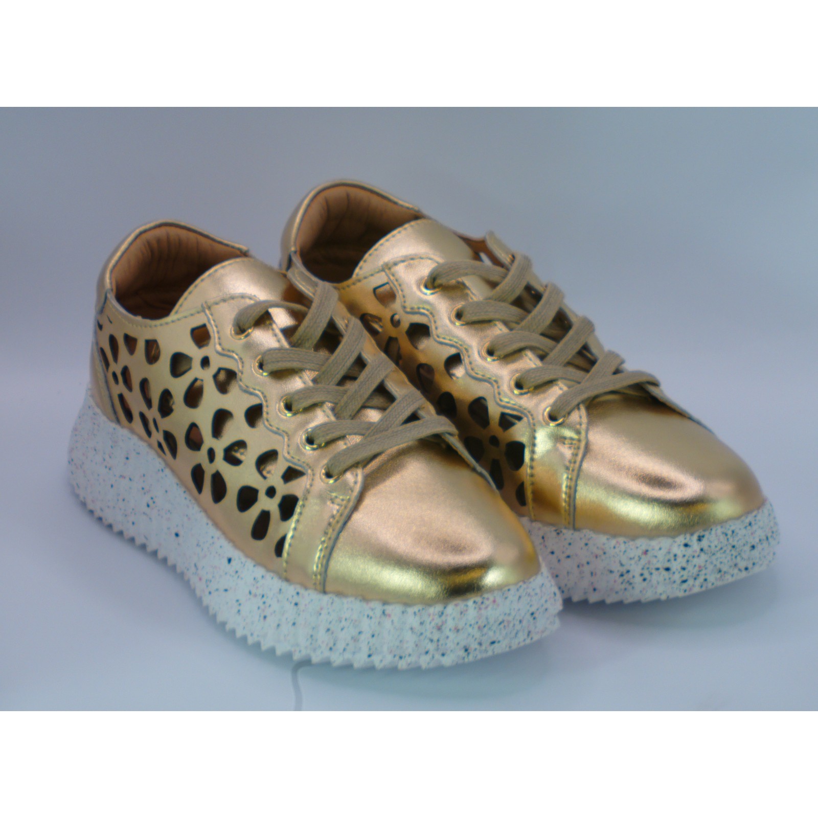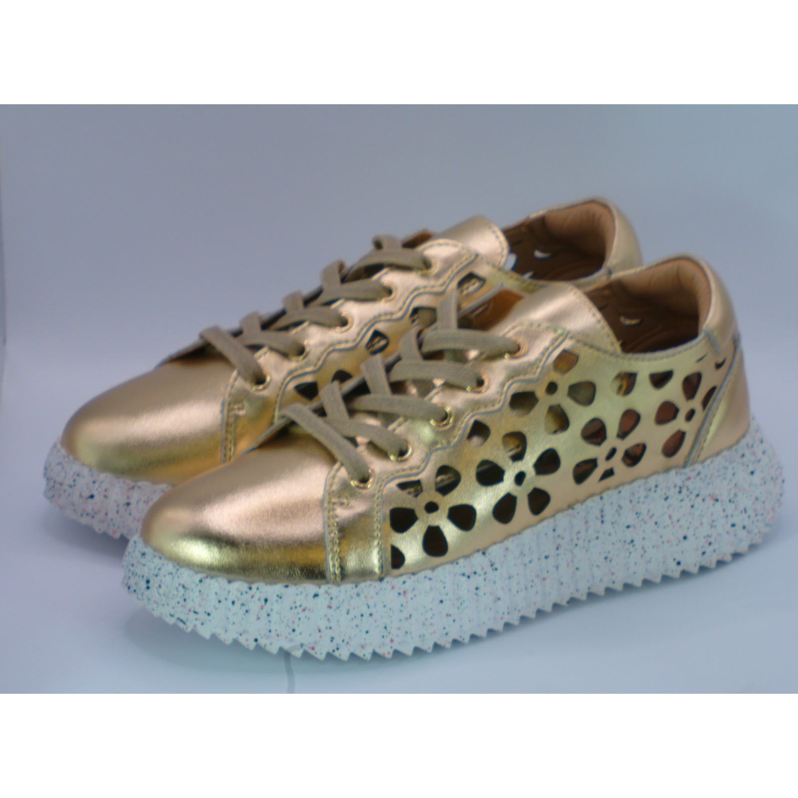 Szukasz butów, które połączą modny design ze sportowym komfortem? Buty damskie sportowe skórzane złote na platformie to idealny wybór dla kobiet ceniących sobie wygodę i elegancki wygląd. Wykonane z wysokiej jakości naturalnej skóry, gwarantują trwałość i komfort noszenia przez cały dzień. Złoty kolor dodaje blasku każdej stylizacji – zarówno codziennej, jak i wieczorowej.