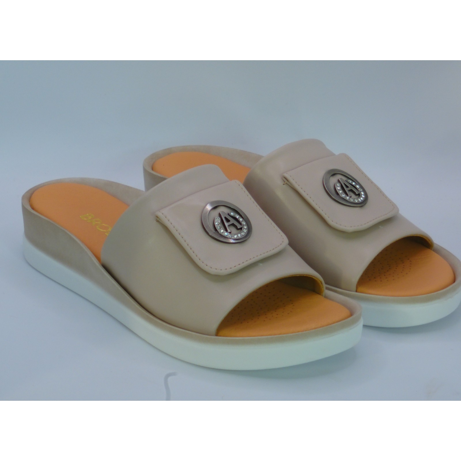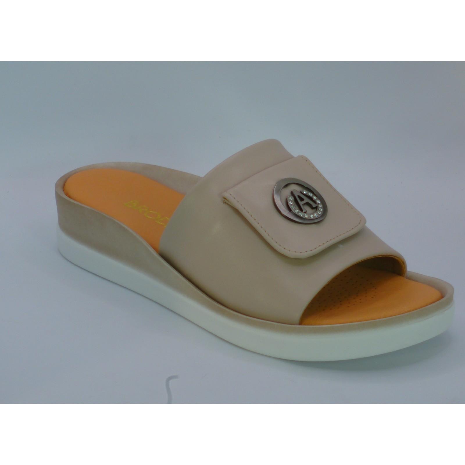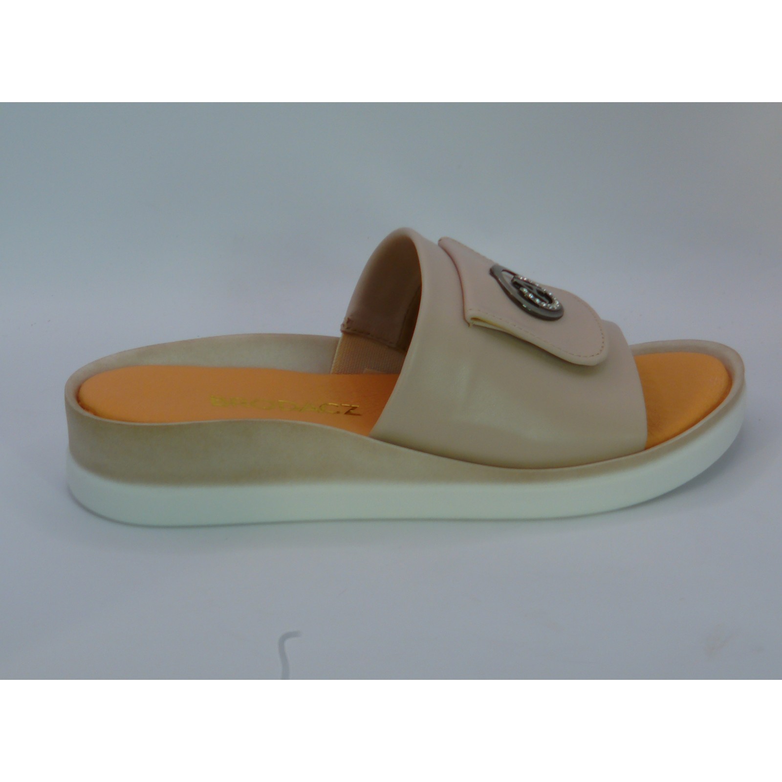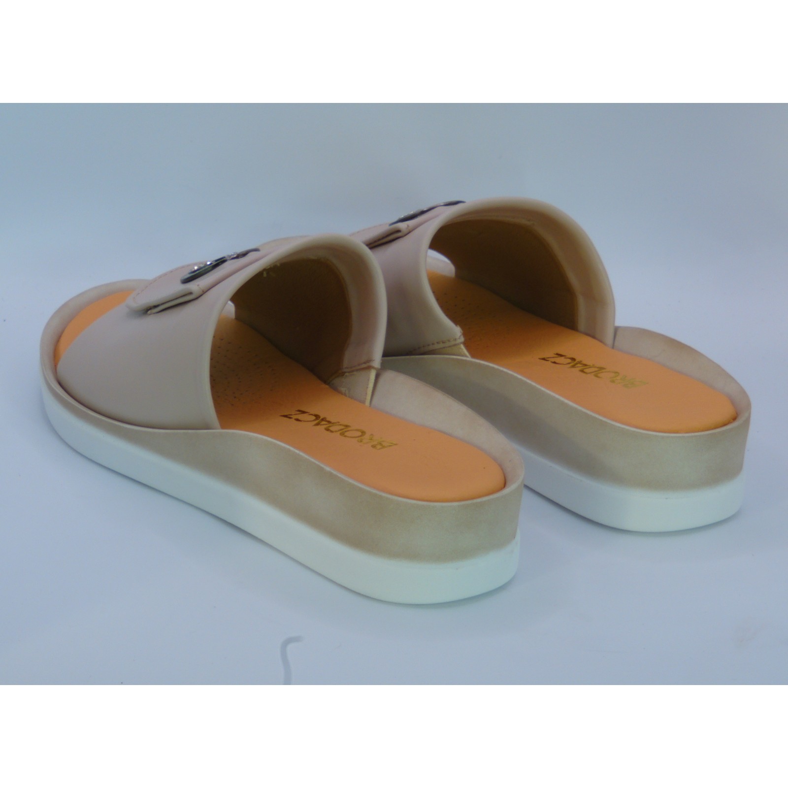 Szukasz letniego obuwia, które połączy komfort, elegancję i kobiecy styl? Postaw na klapki damskie Brodacz w kolorze cappuccino – wykonane z wysokiej jakości skóry naturalnej, osadzone na niskim, stabilnym koturnie i ozdobione subtelnym akcentem dekoracyjnym.