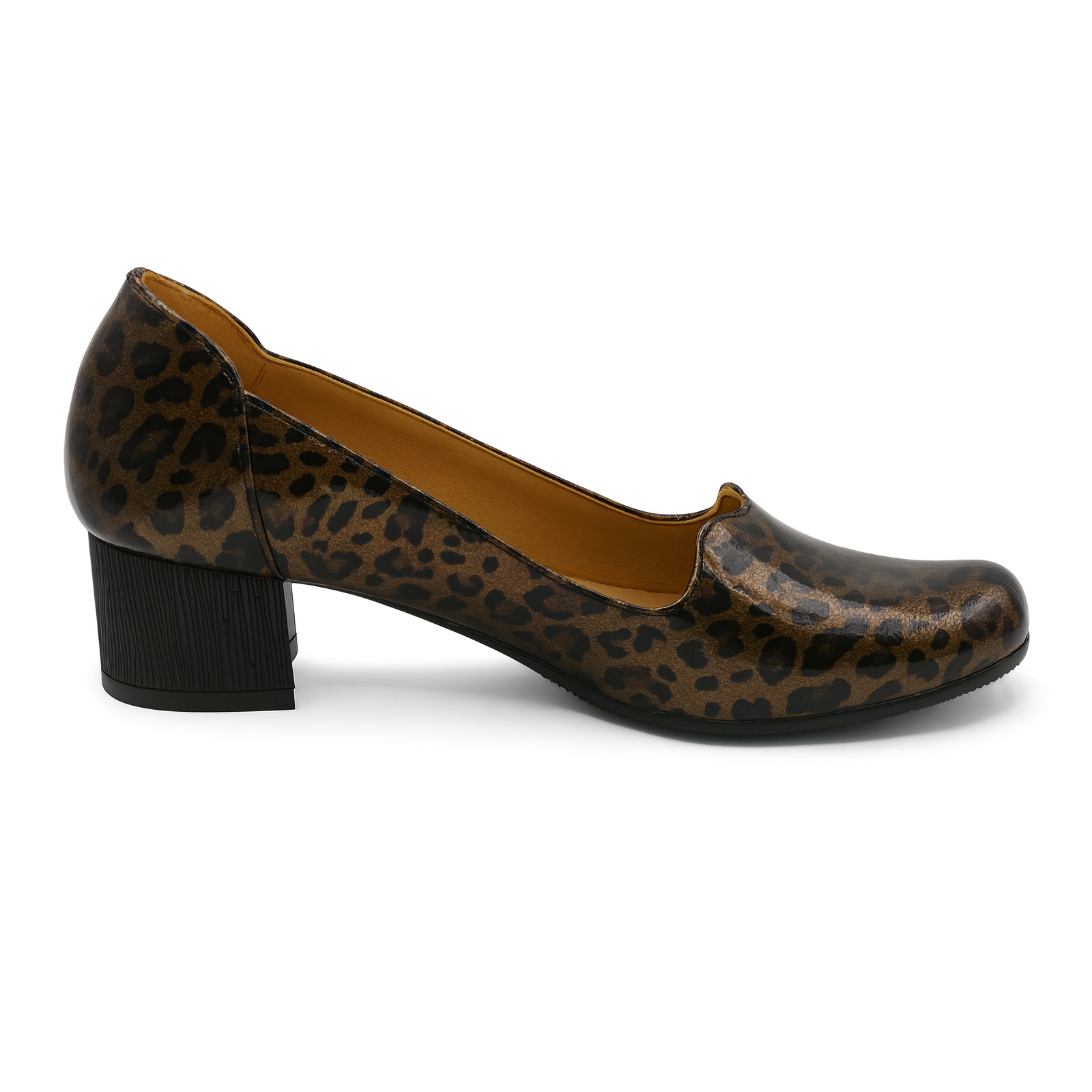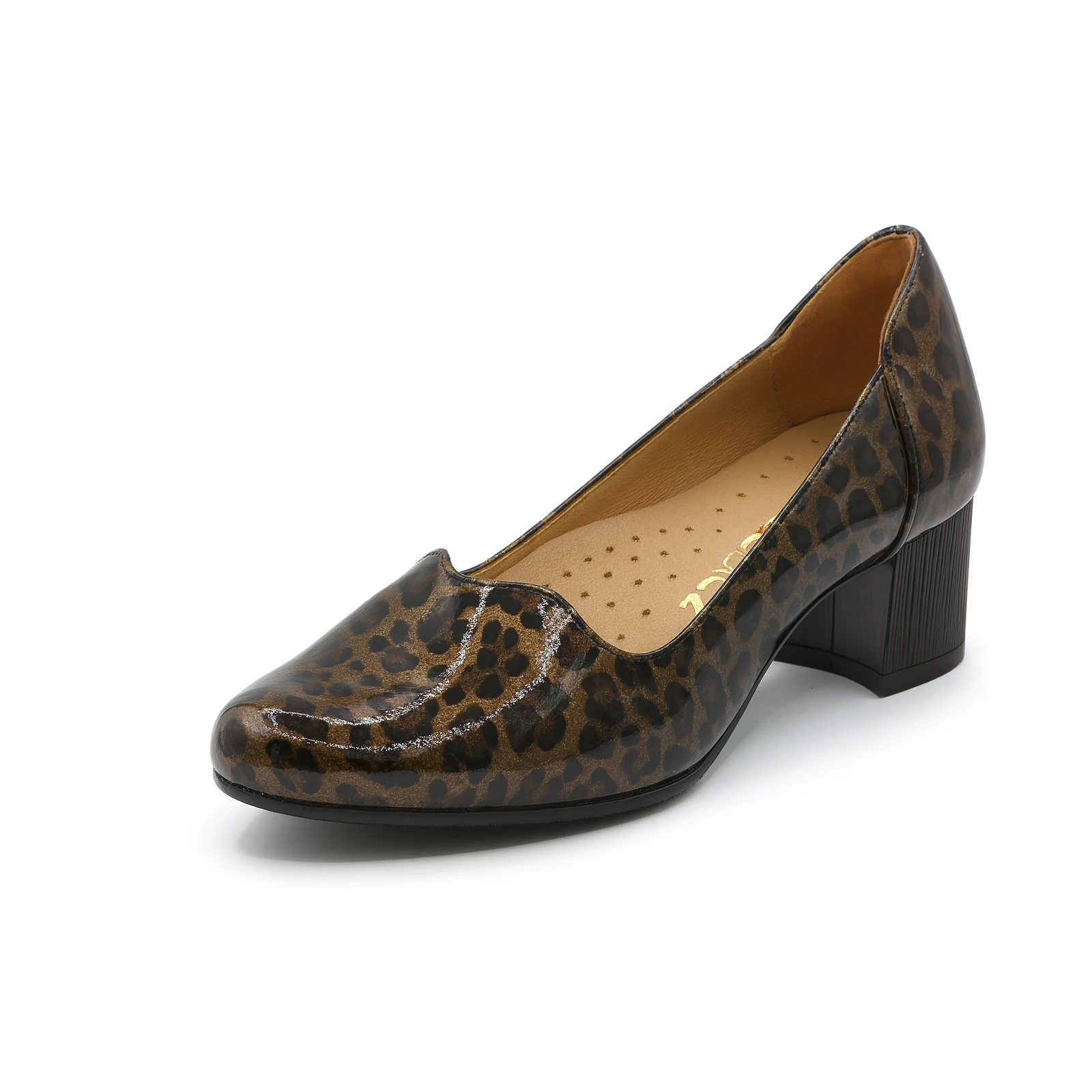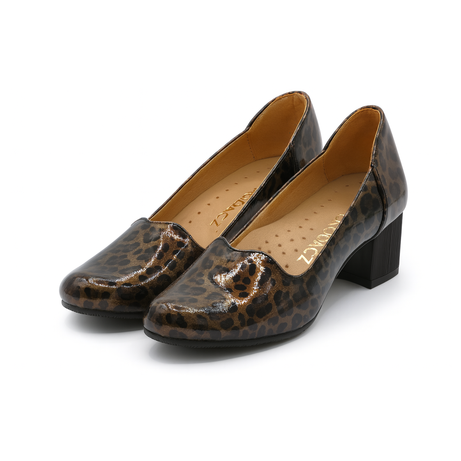 Charakterystyczny wzór panterki w odcieniach brązu i złota dodaje im wyjątkowego stylu i sprawia, że świetnie prezentują się w codziennych oraz eleganckich stylizacjach. Stabilny obcas gwarantuje wygodę przez cały dzień, a miękka wkładka ze skóry naturalnej dba o komfort stóp.