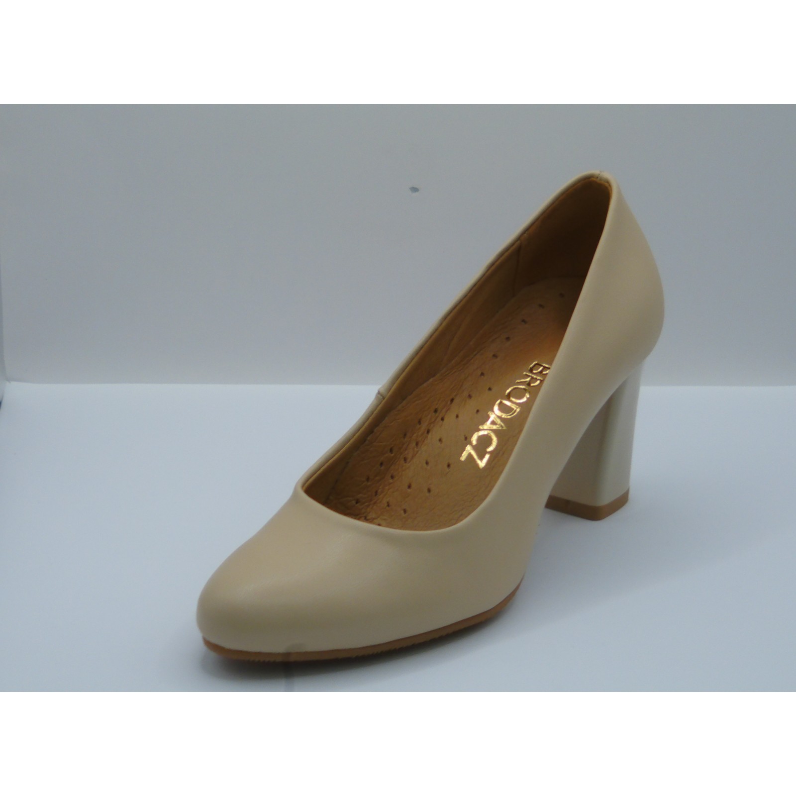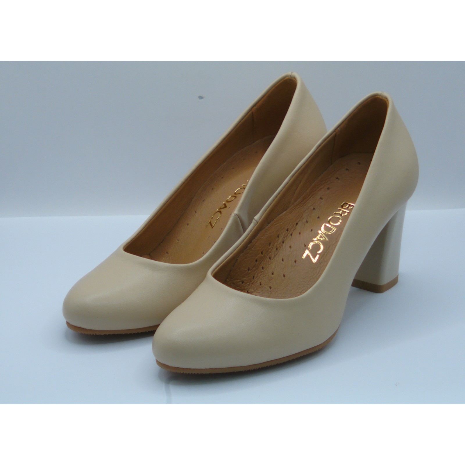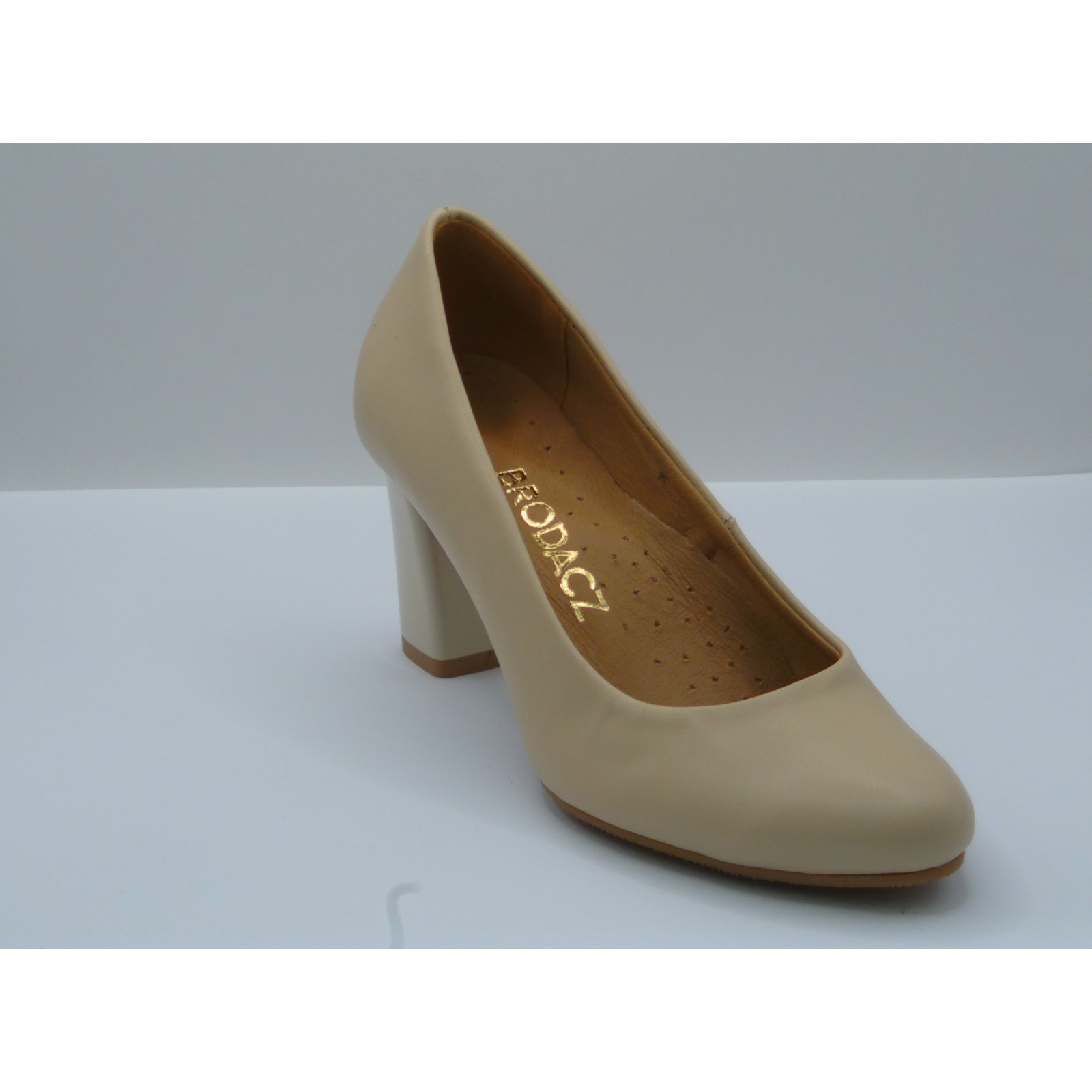 Czółenko skórzane damskie beżowe Brodacz – eleganckie buty na obcasie