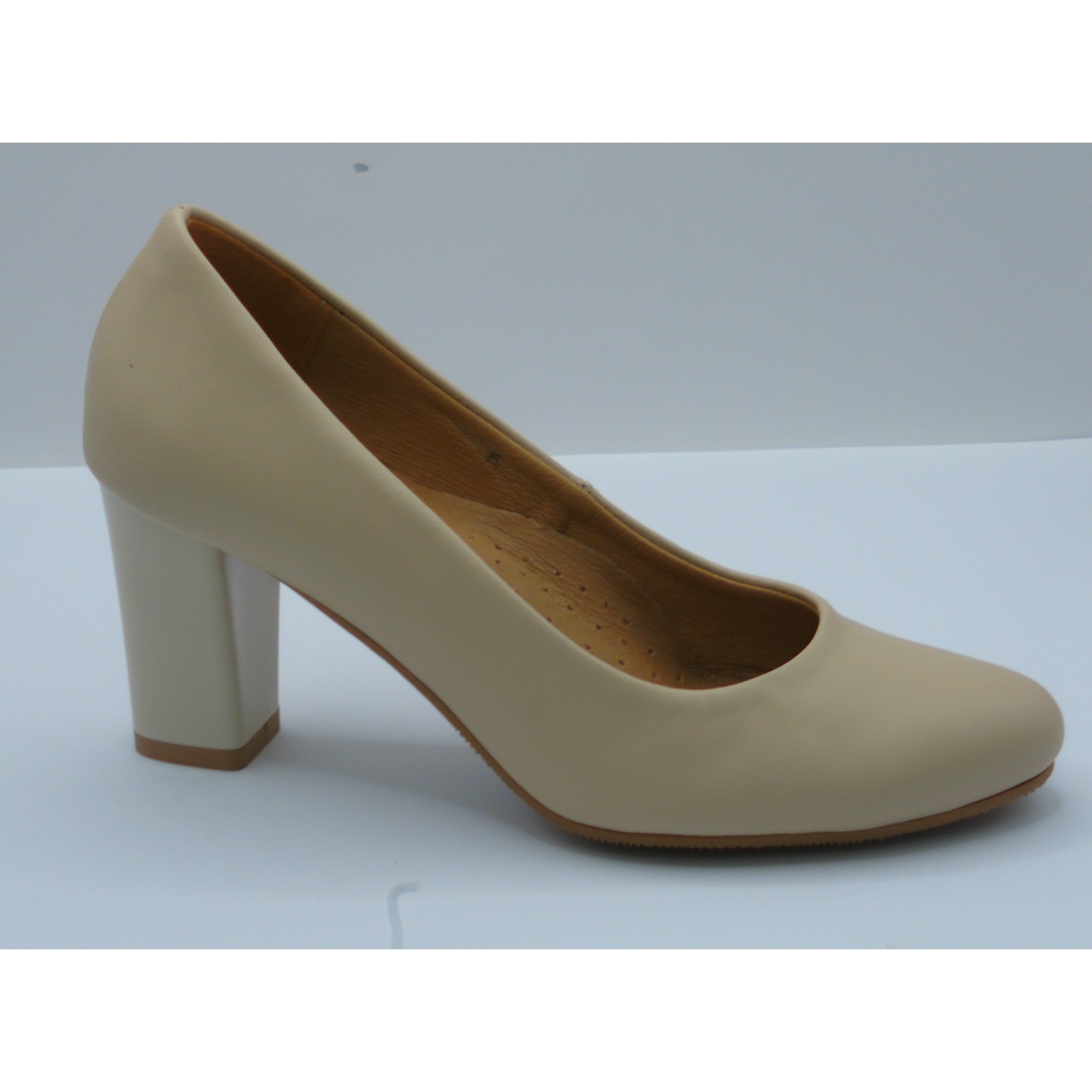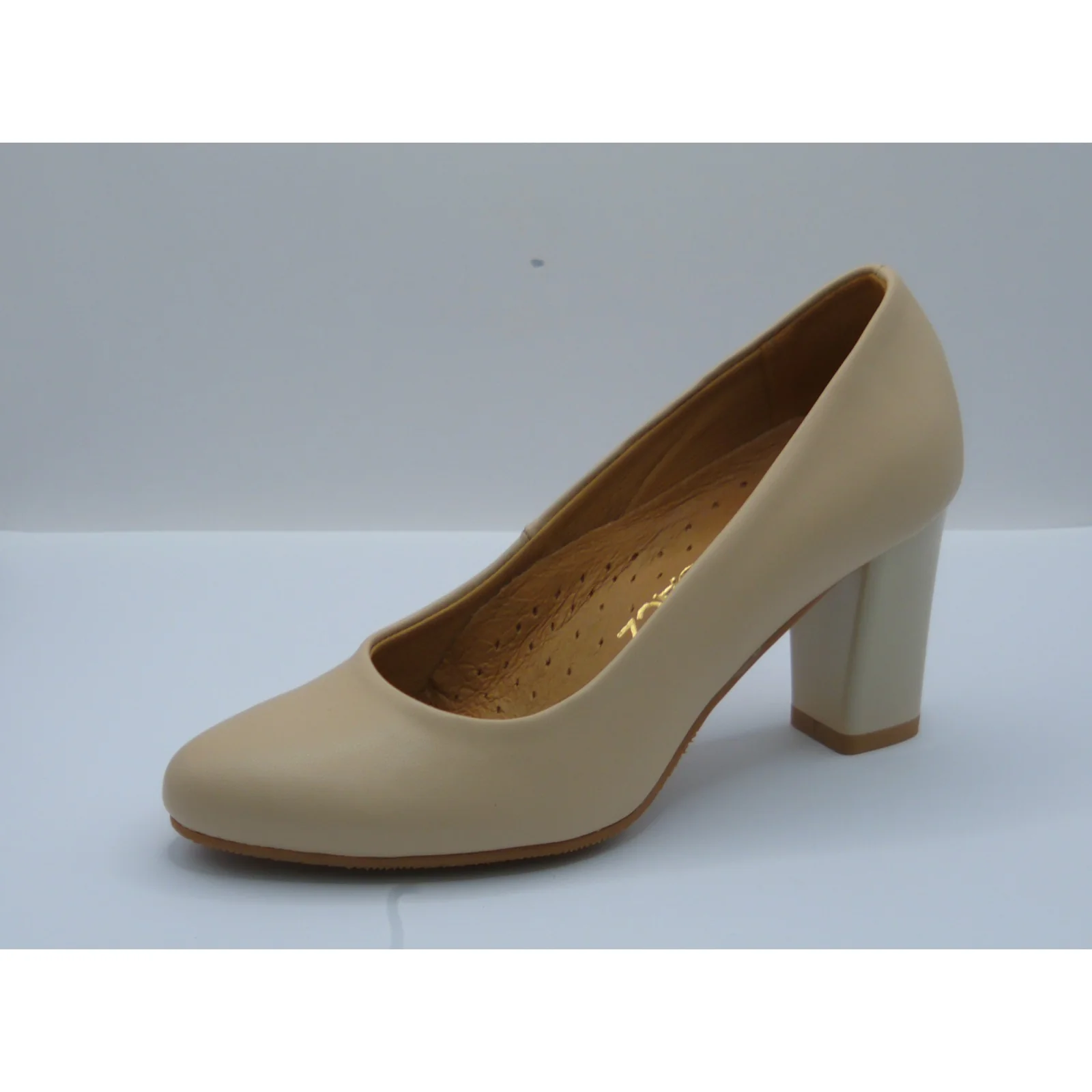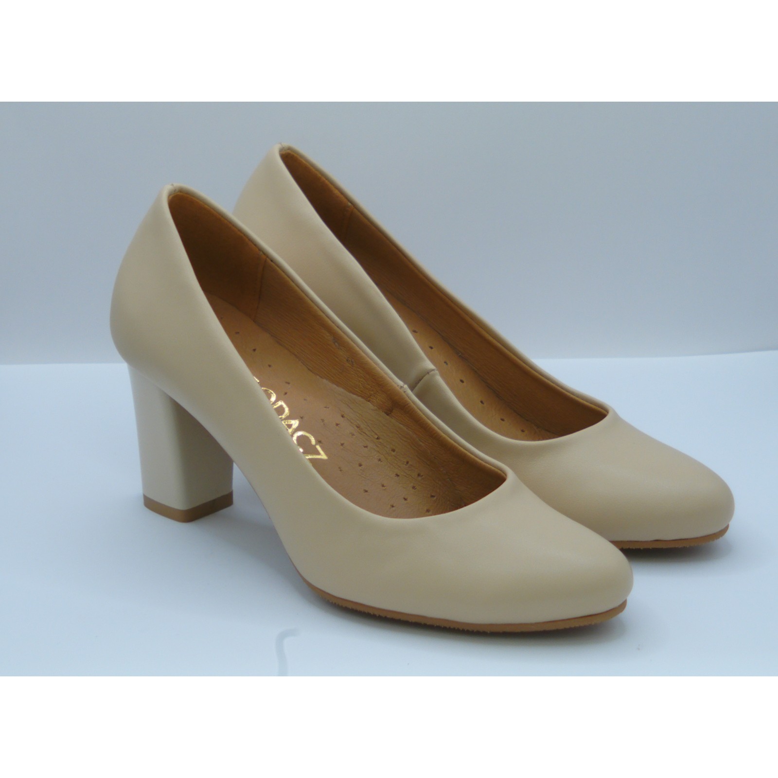 Czółenko skórzane damskie beżowe Brodacz – eleganckie buty na obcasie