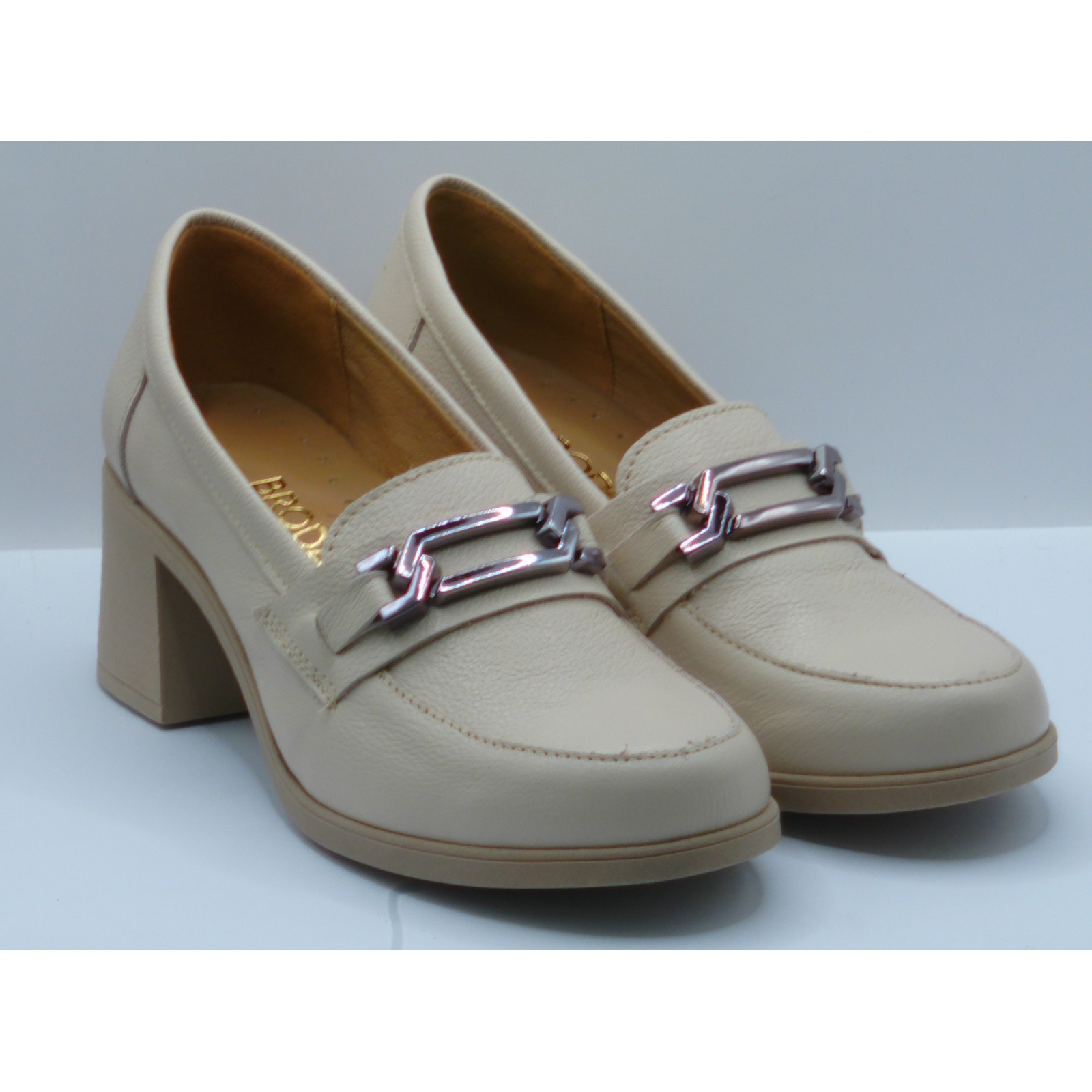 Brodacz – skórzane beżowe półbuty w stylu Retro