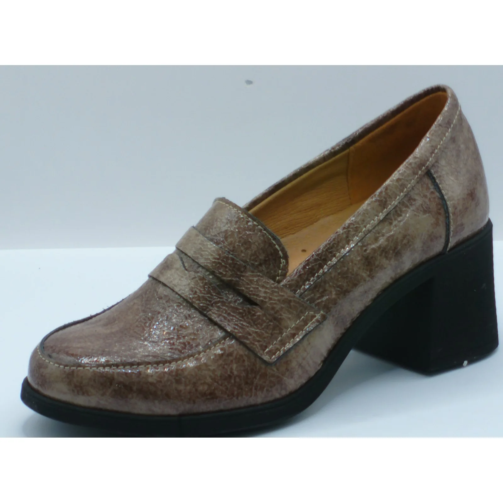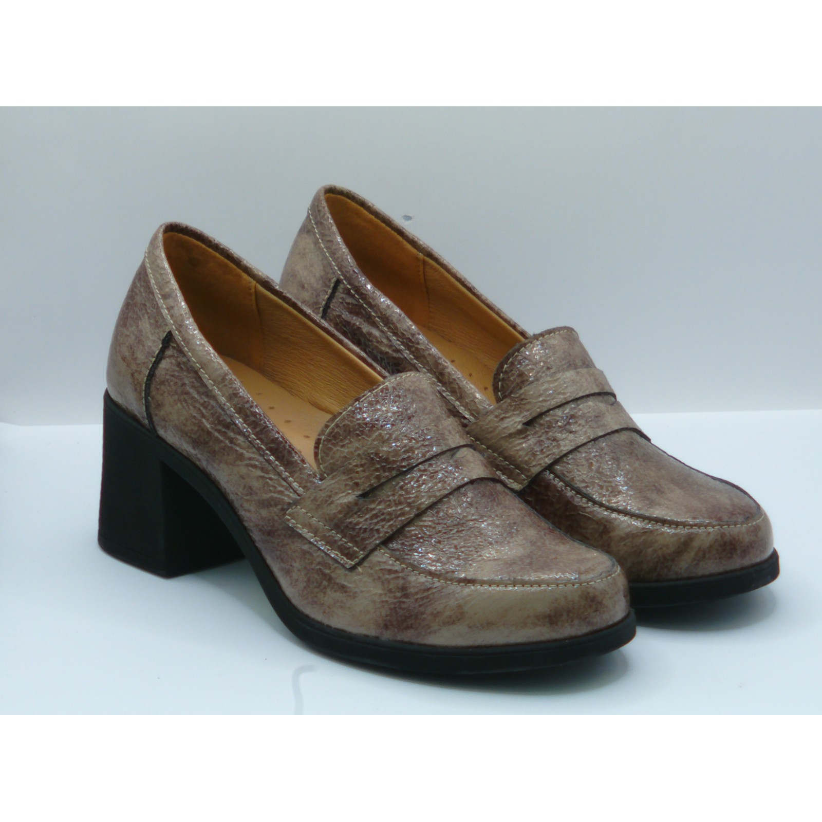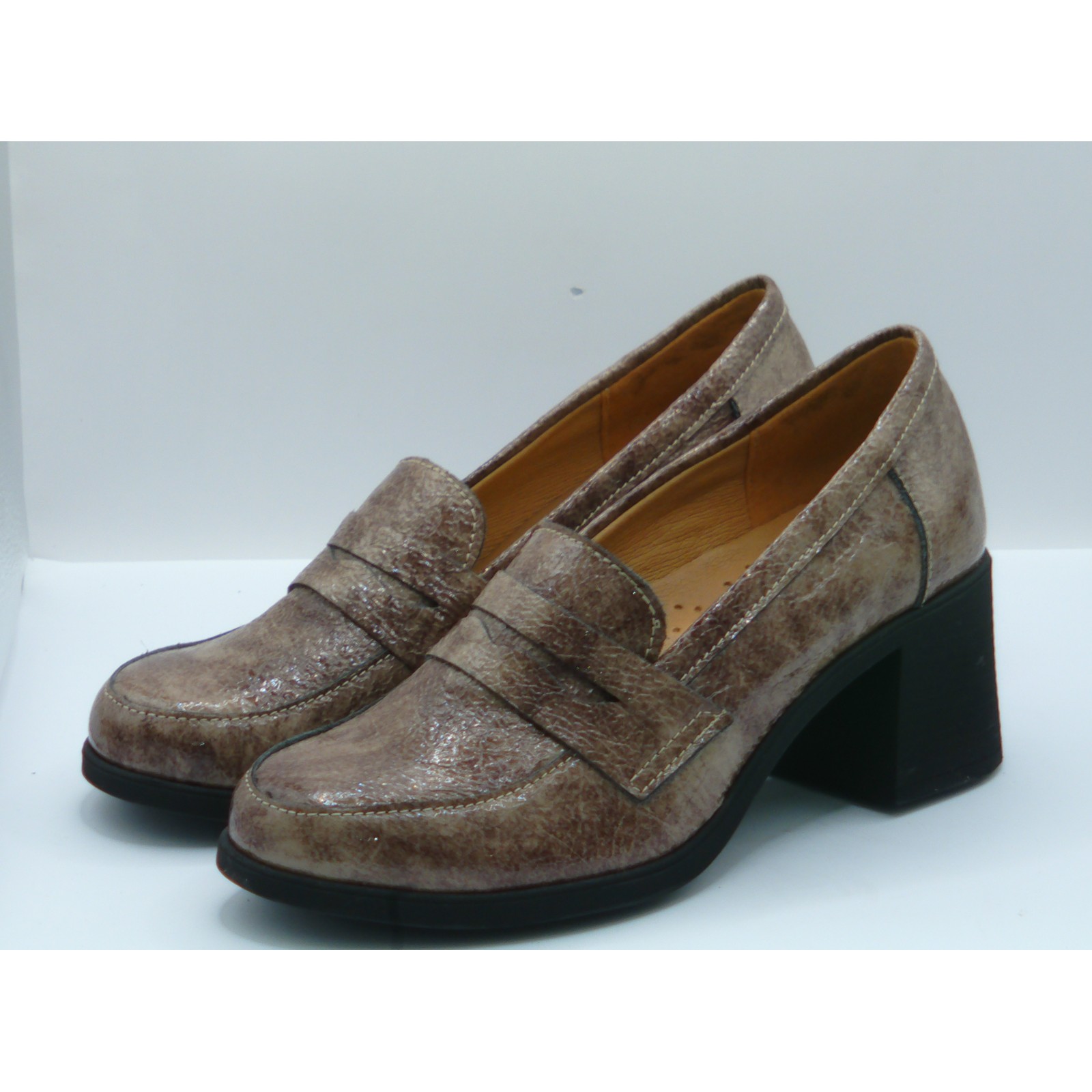 Półbuty damskie skórzane Brodacz – beżowe lakierowane