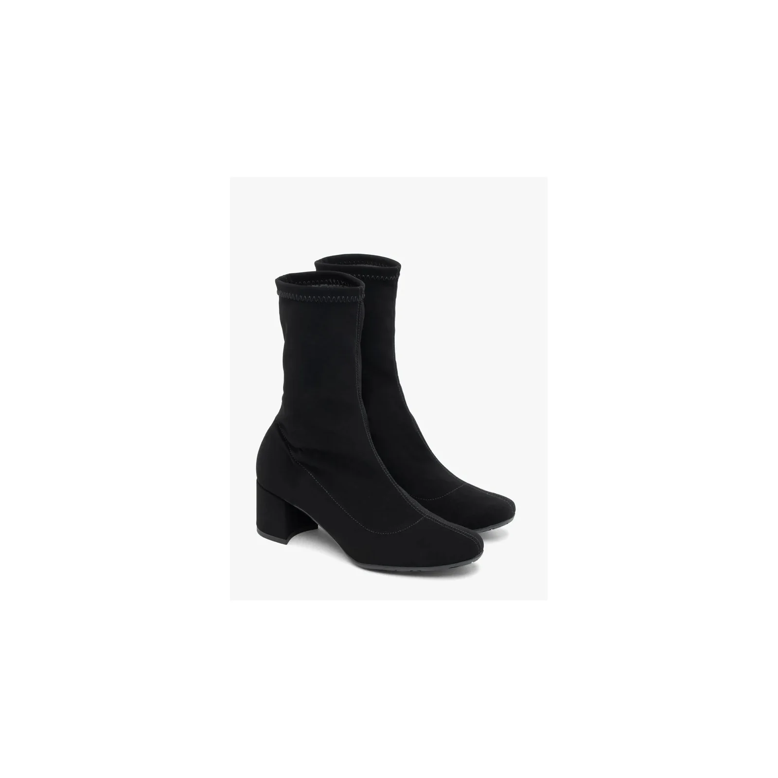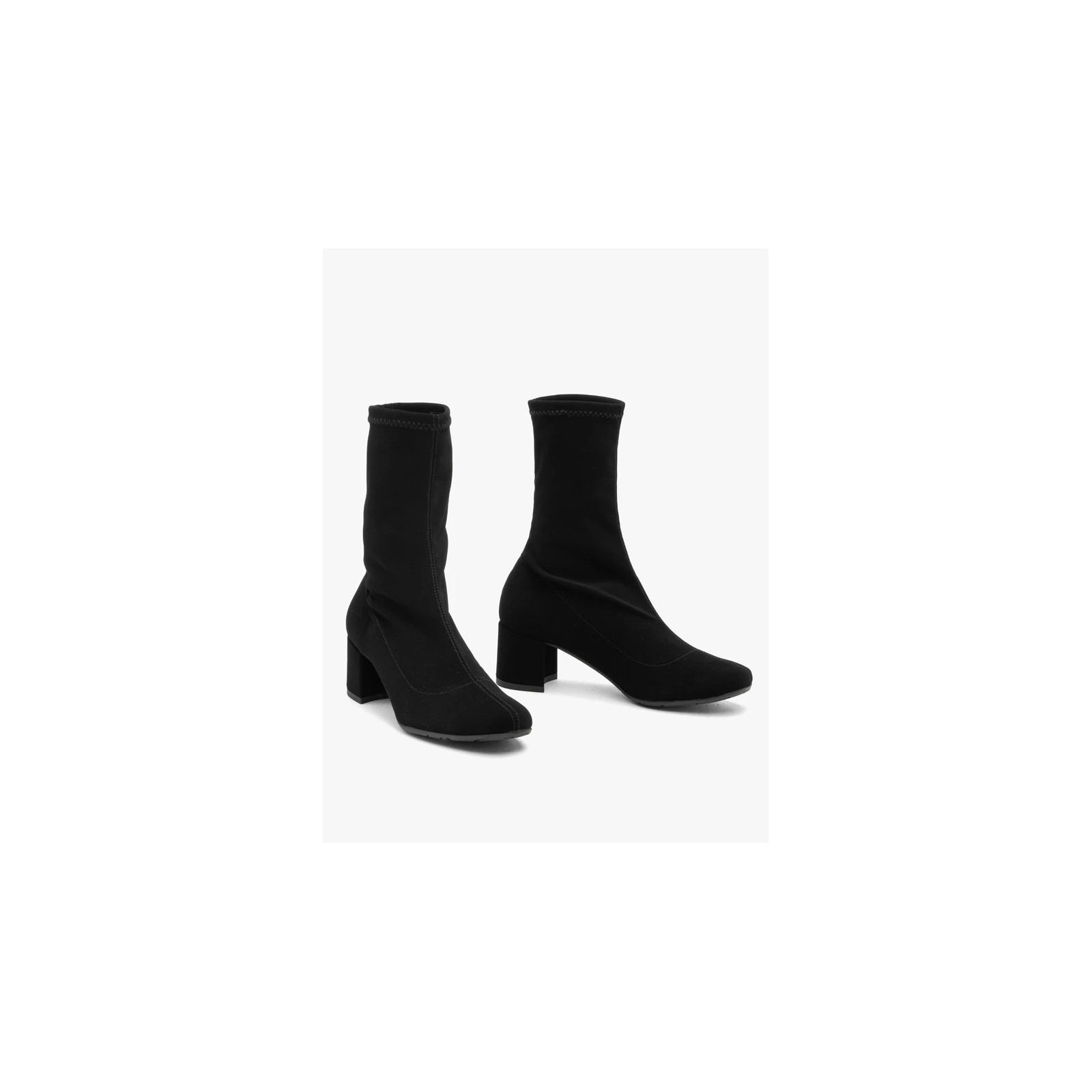 Czarne botki damskie skarpetowe z elastyczną cholewką wykonane z nubuku syntetycznego to połączenie komfortu i nowoczesnego designu. Nieocieplane, z wygodnym słupkowym obcasem 5,5 cm, łatwe do zakładania dzięki wsuwanej konstrukcji. Technologia R.SILENCE tłumi drgania i redukuje hałas, zapewniając komfort podczas chodzenia. Okrągły nosek i wyższa cholewka dodają im stylu. Linia Relax.