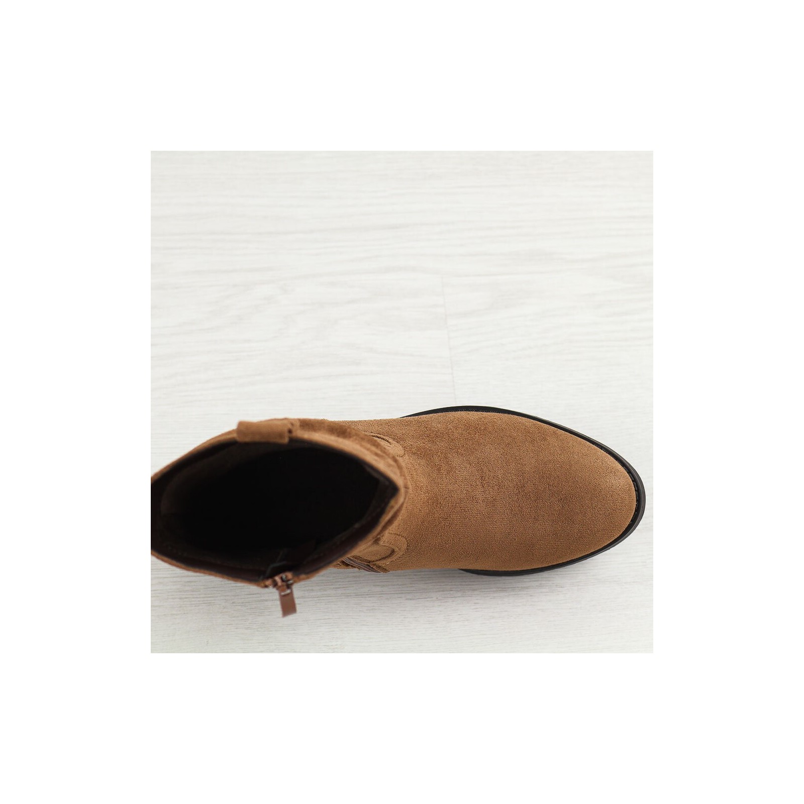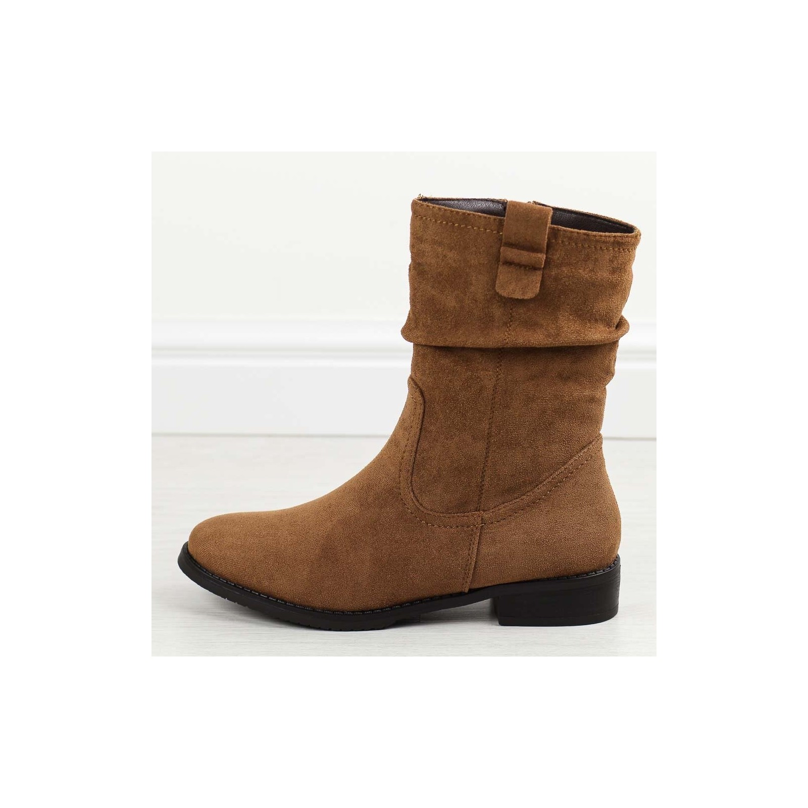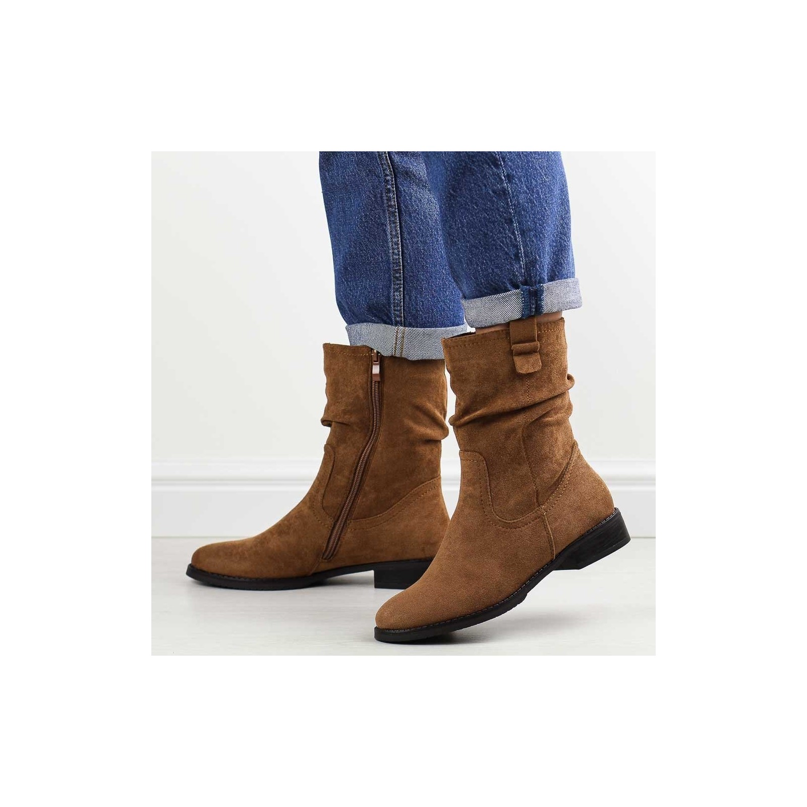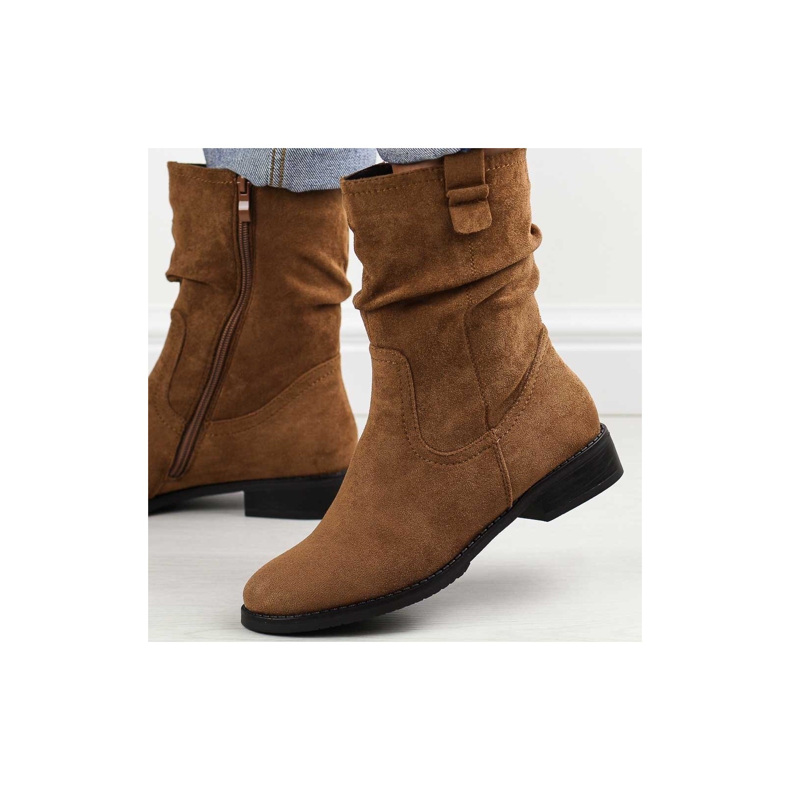 Poznaj nasze eleganckie kamelowe zamszowe botki damskie, idealne na chłodną jesień oraz zimę. Te stylowe botki mają cholewkę wykonaną z wysokiej jakości materiału zamszopodobnego, co nadaje im luksusowy wygląd i zapewnia trwałość. Zapinane na suwak, gwarantują wygodę i łatwość zakładania, co sprawia, że są praktyczne na co dzień.