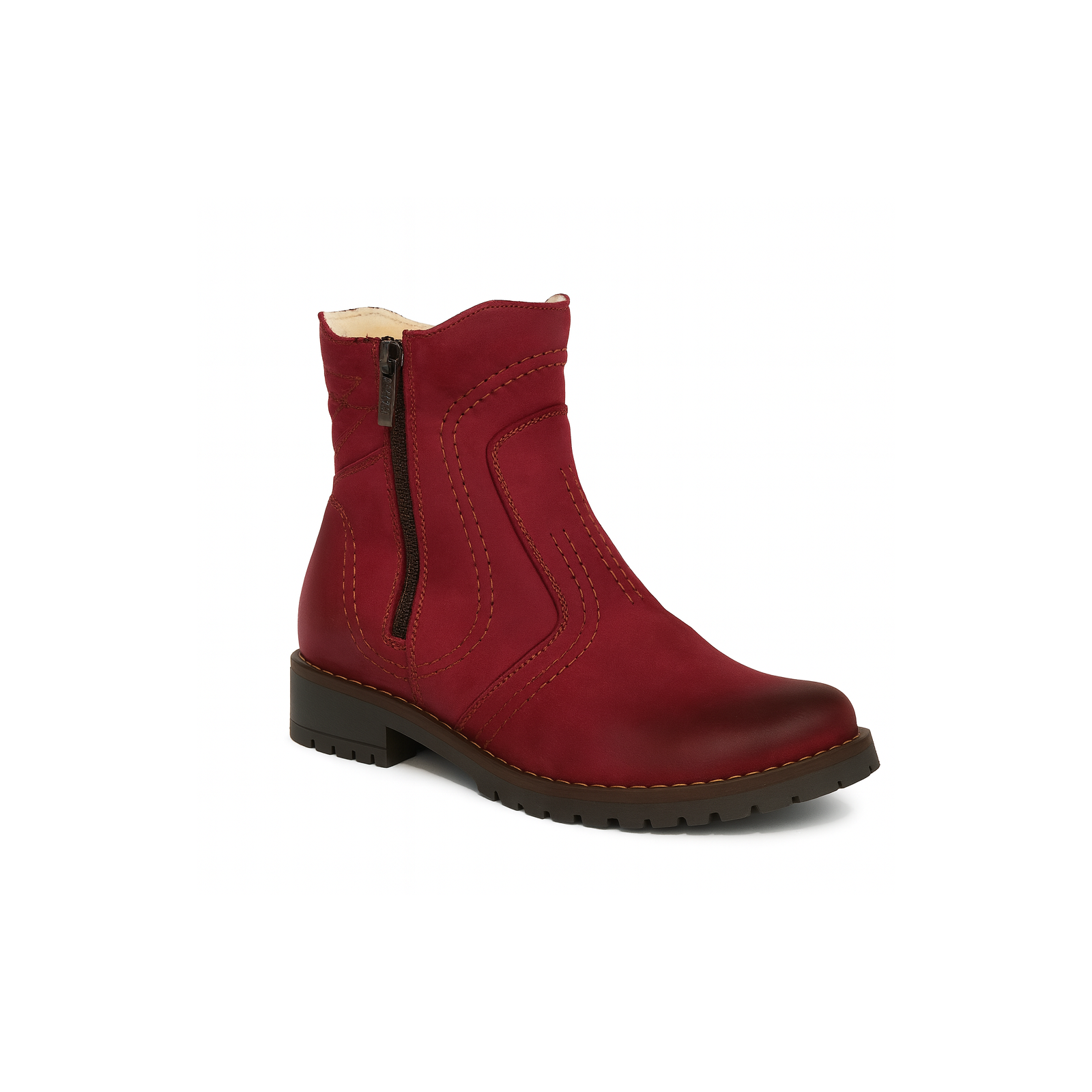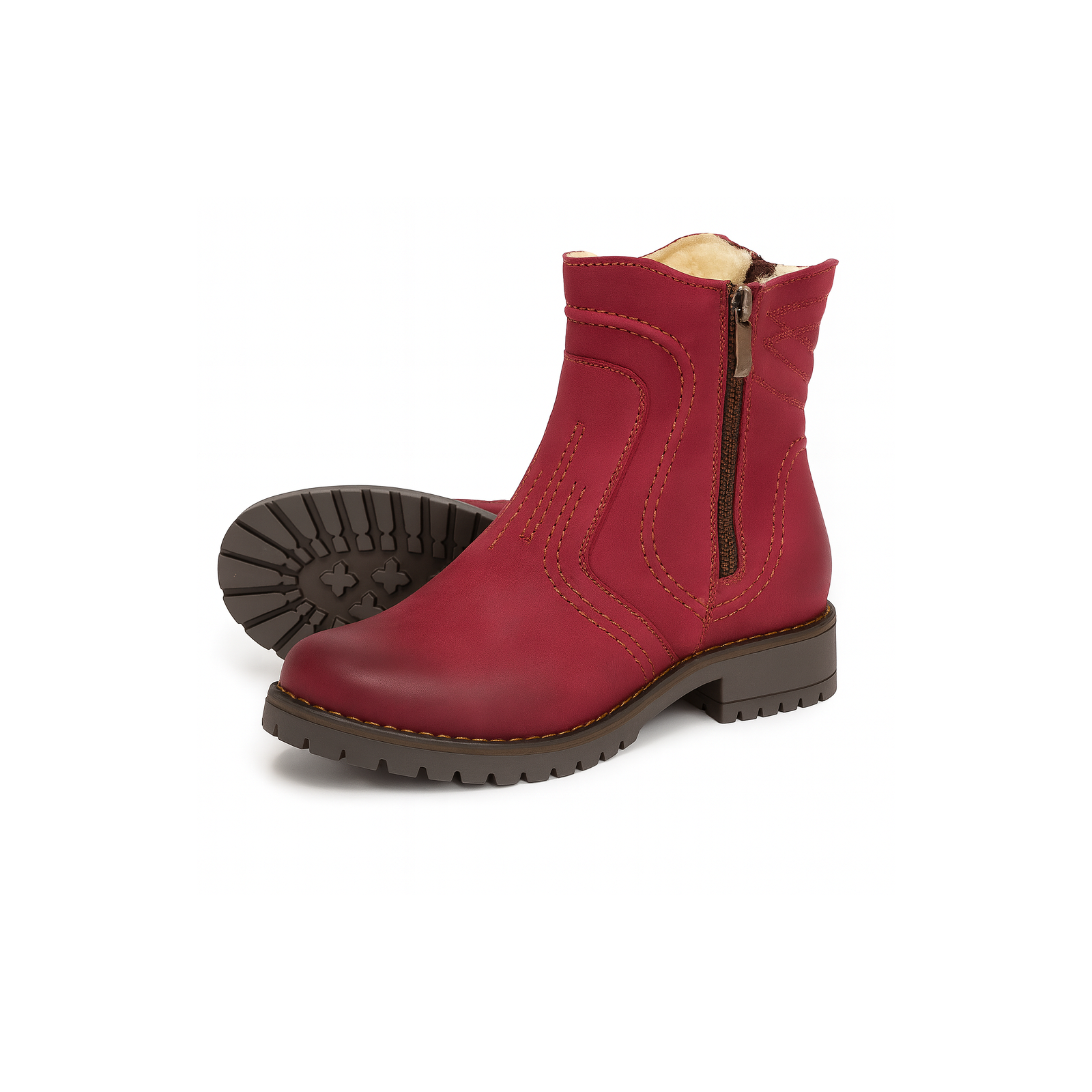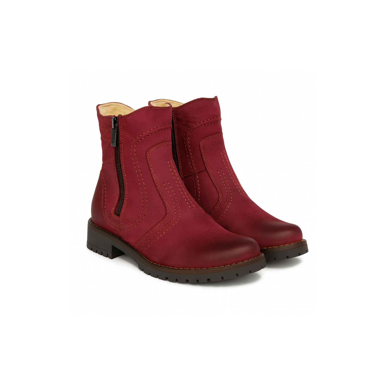 Odkryj wyjątkowe botki But-Bal wykonane z wysokiej jakości naturalnej skóry, które wyróżniają się niepowtarzalnym śliwkowym kolorem. To model stworzony dla kobiet ceniących połączenie wygody, funkcjonalności i modnego wyglądu.