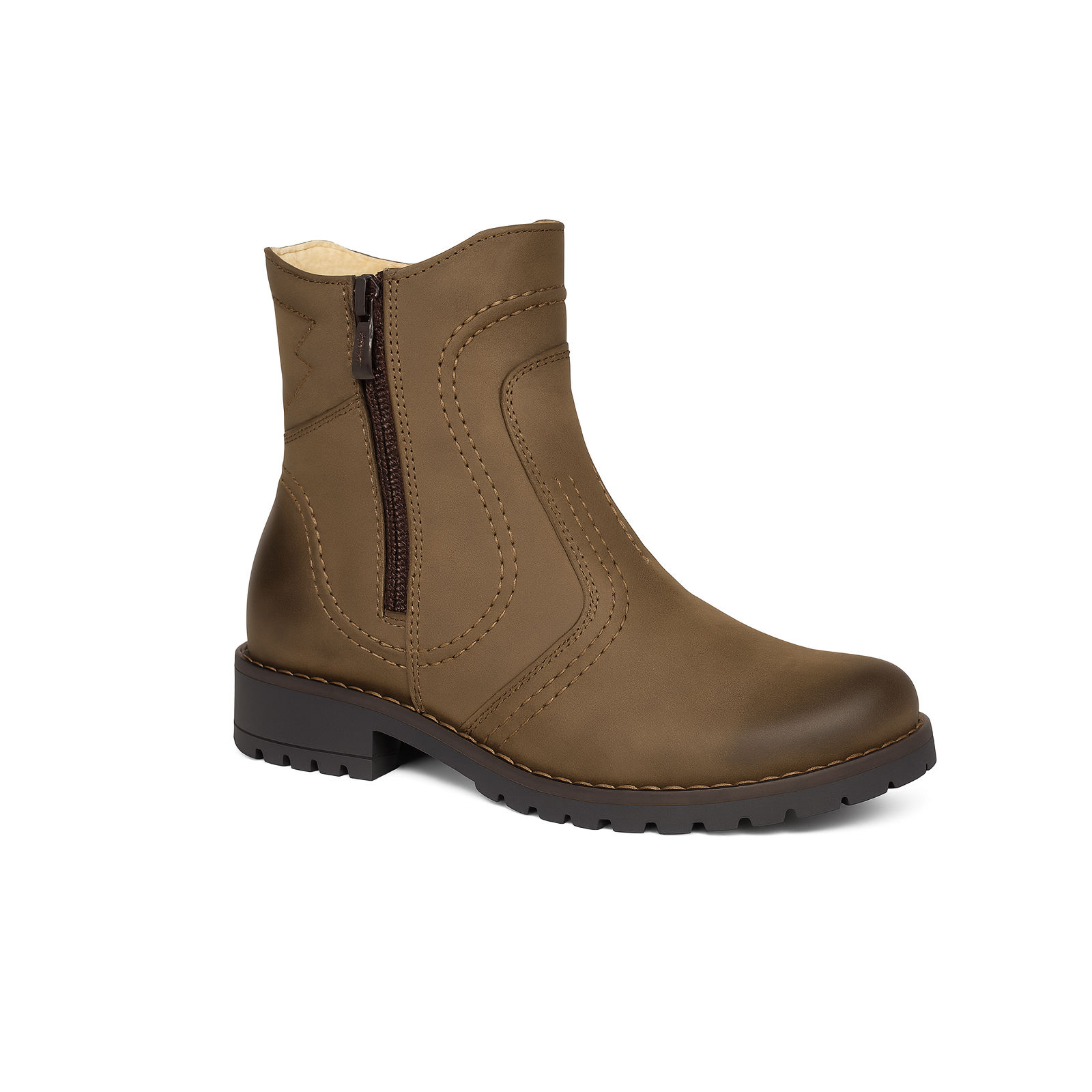 Praktyczne dwa zamki boczne ułatwiają zakładanie i zdejmowanie, a solidna, elastyczna podeszwa gwarantuje stabilność i bezpieczeństwo nawet podczas mniej sprzyjającej pogody. Botki świetnie sprawdzą się w sezonie jesienno-zimowym, a ich głęboka zieleń doda charakteru każdej stylizacji.