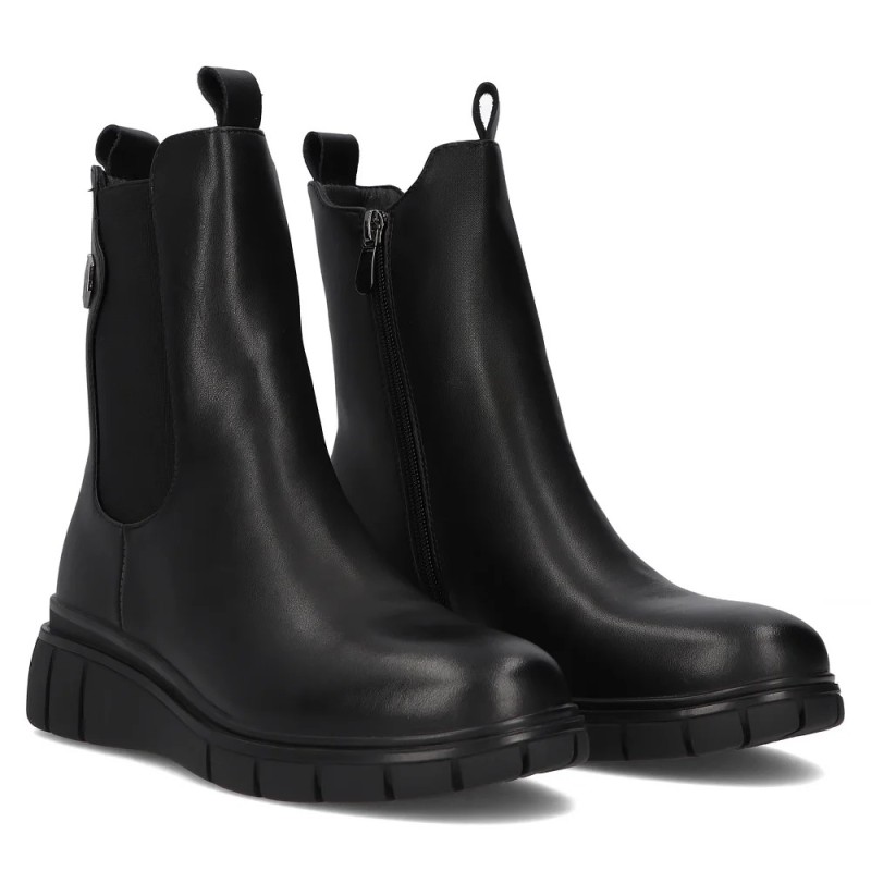 To nowoczesne obuwie, które łączy wygodę, styl i trwałość. Wykonane z wysokiej jakości naturalnej skóry, są idealnym wyborem na chłodniejsze dni. Ich minimalistyczny design w czarnym kolorze sprawia, że pasują do wielu stylizacji, zarówno casualowych, jak i bardziej eleganckich.