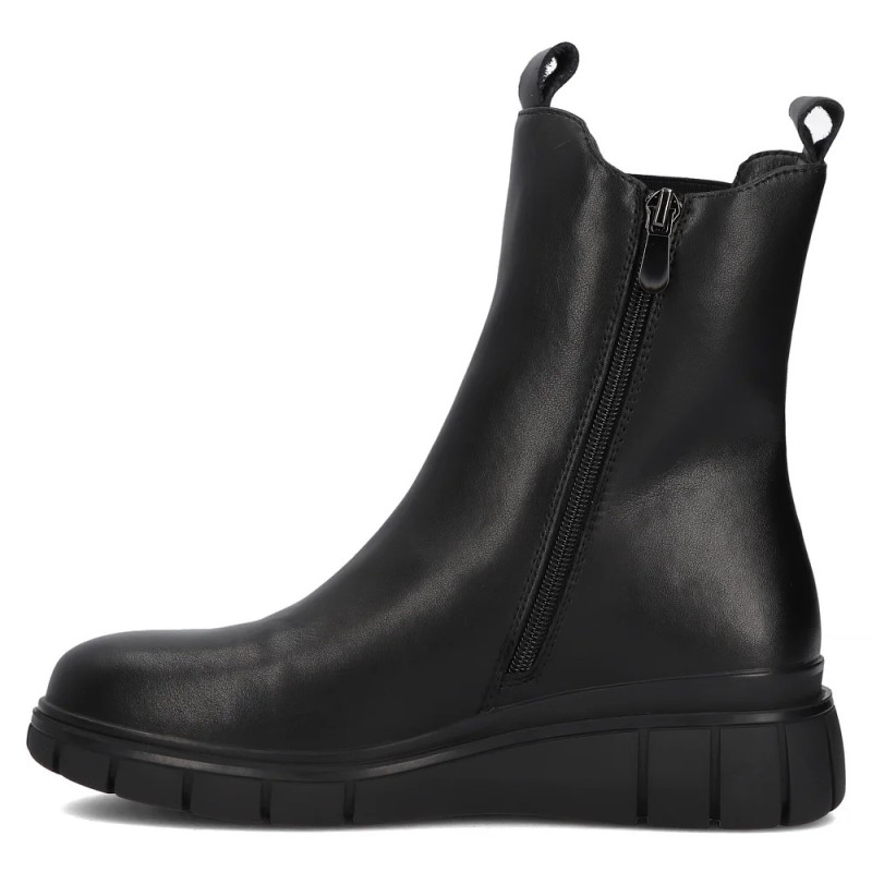 Cholewka z naturalnej skóry licowej zapewnia trwałość i estetyczny wygląd, a solidna platforma dodaje nowoczesnego charakteru oraz gwarantuje wygodę podczas codziennego noszenia. Zapięcie na suwak ułatwia zakładanie i zdejmowanie, a ergonomiczny fason dba o komfort stopy.