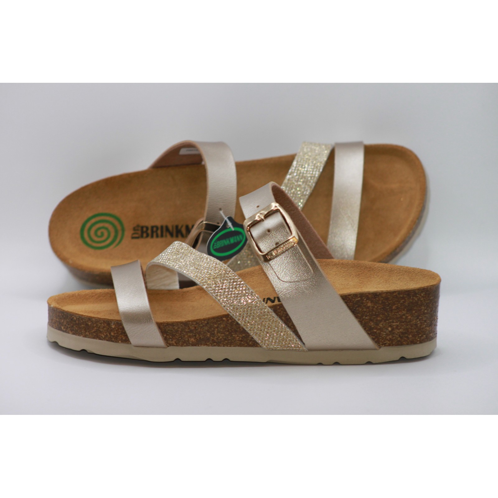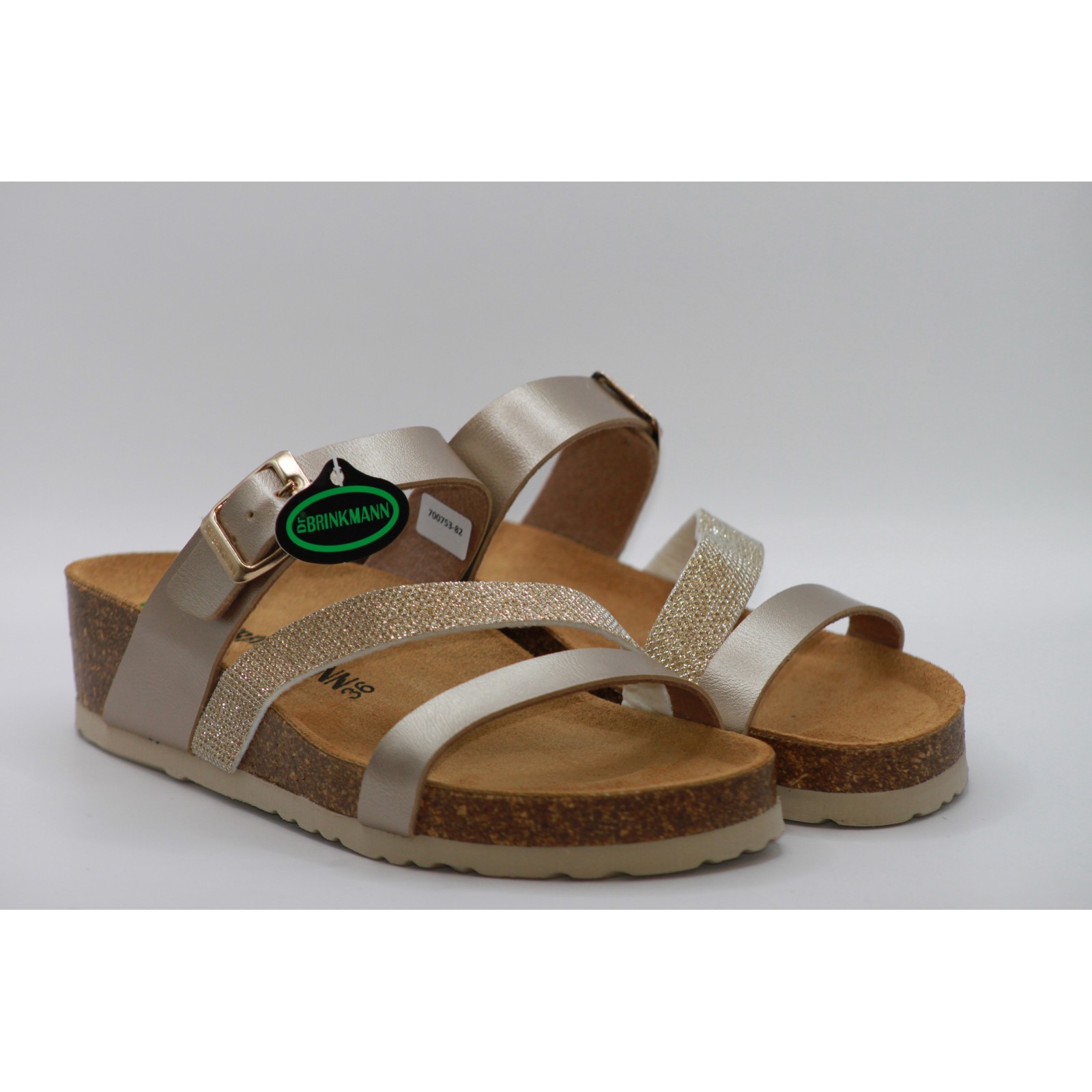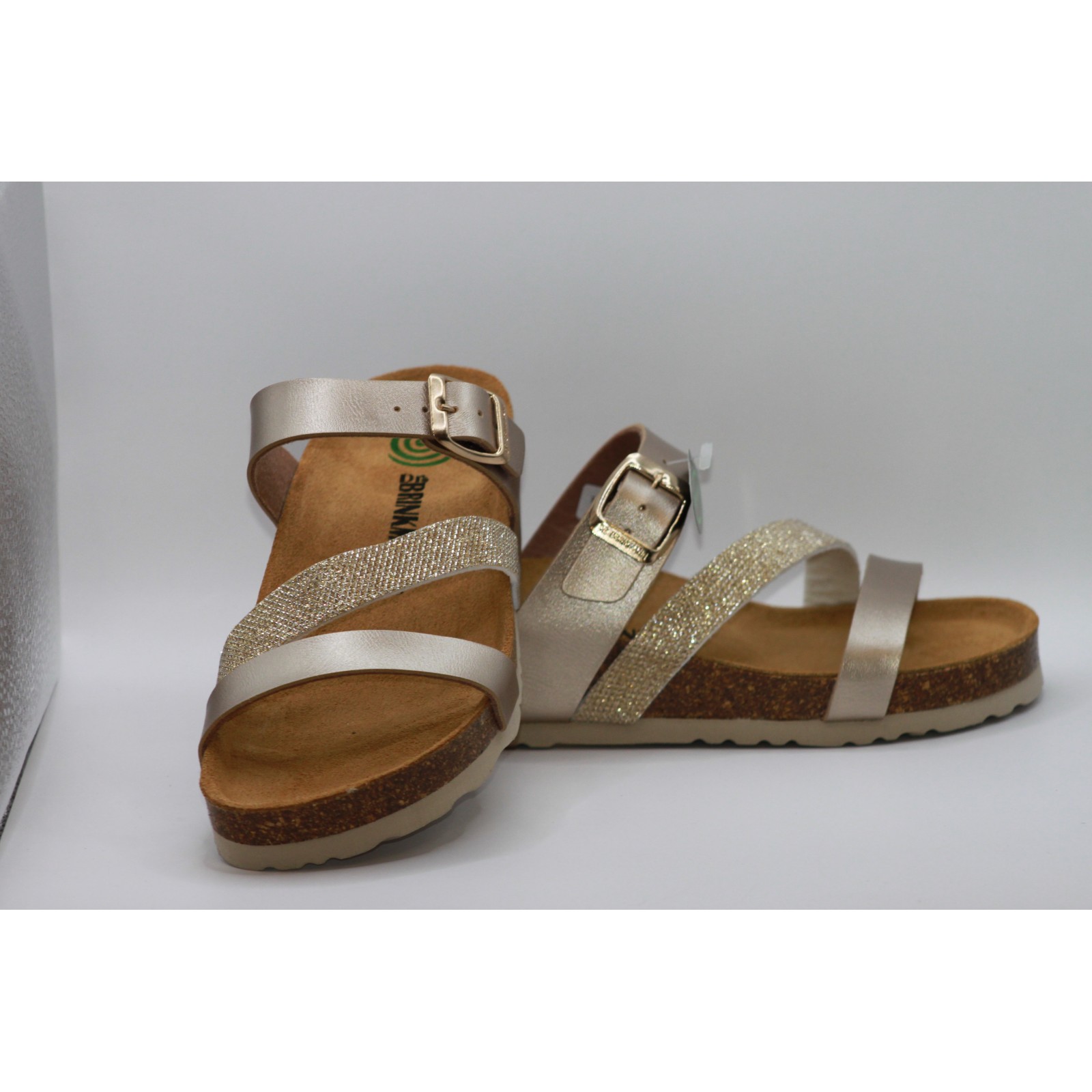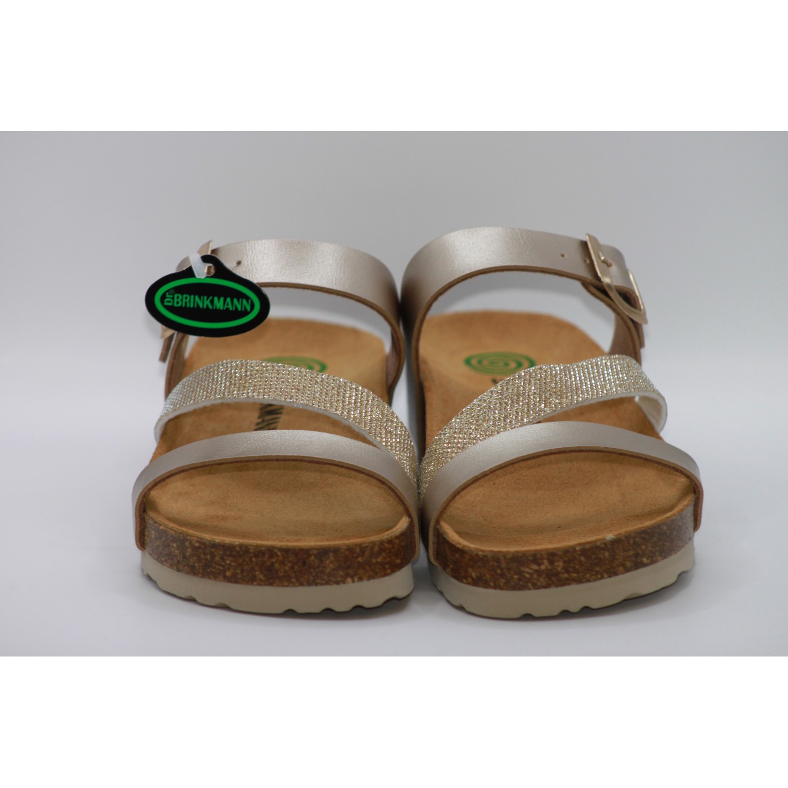 Skórzane sandałki Brodacz7042 na koturnie platyna z motywem kwiatowym