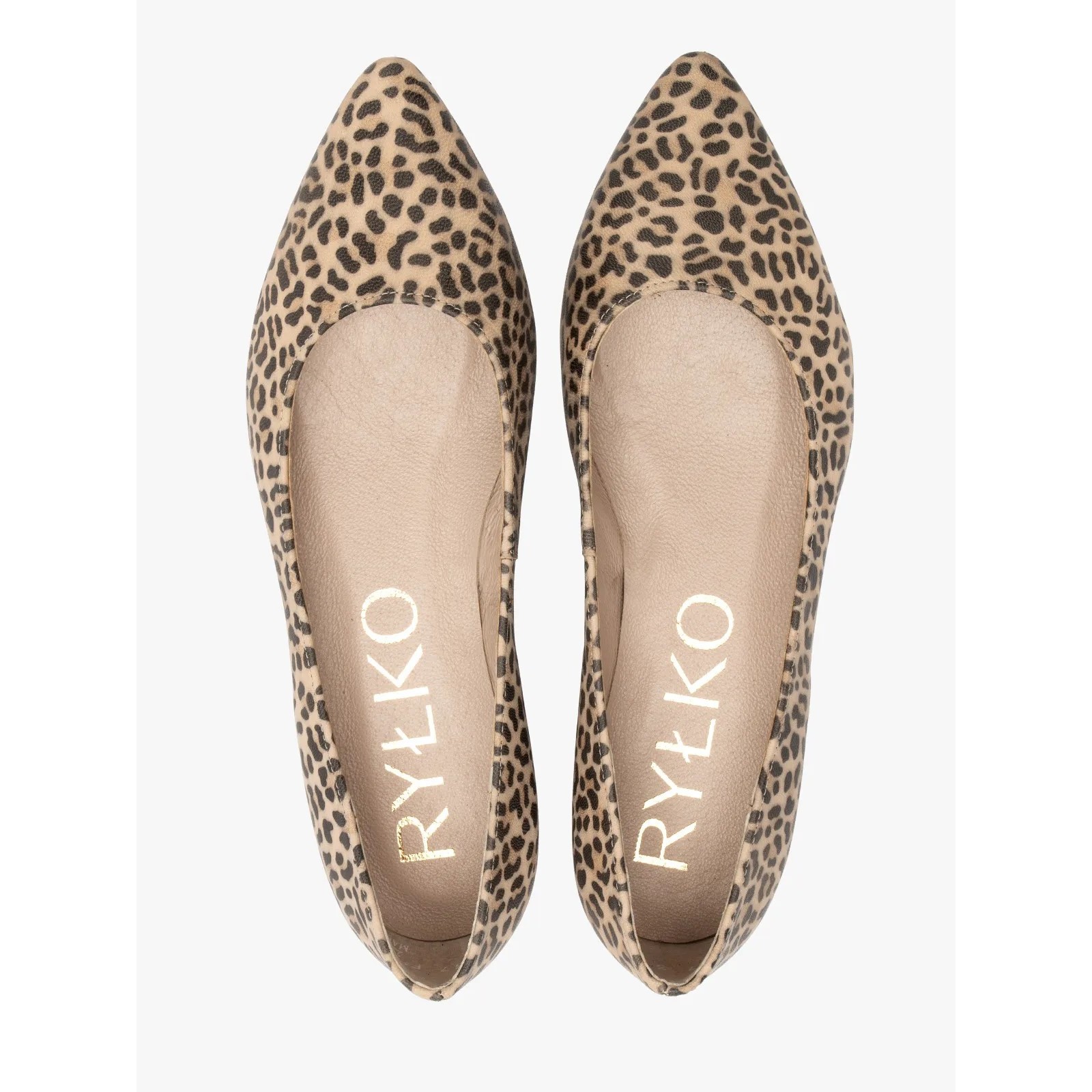 Baleriny damskie w zwierzęcy deseń oraz noskiem w szpic z linii RYŁKO.
