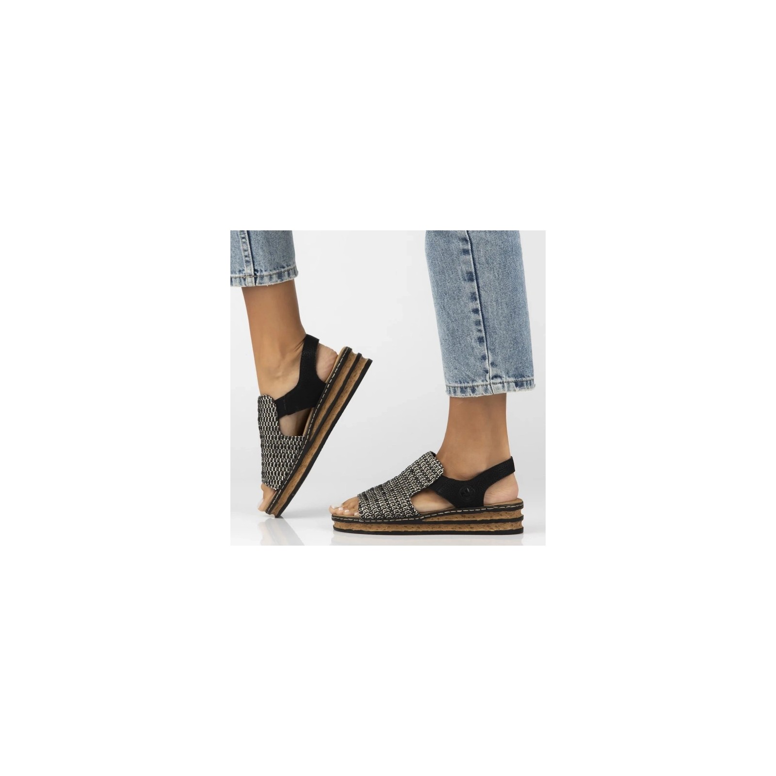 Skórzane oryginalne wygodne sandały damskie Rieker65919-33 czerwone