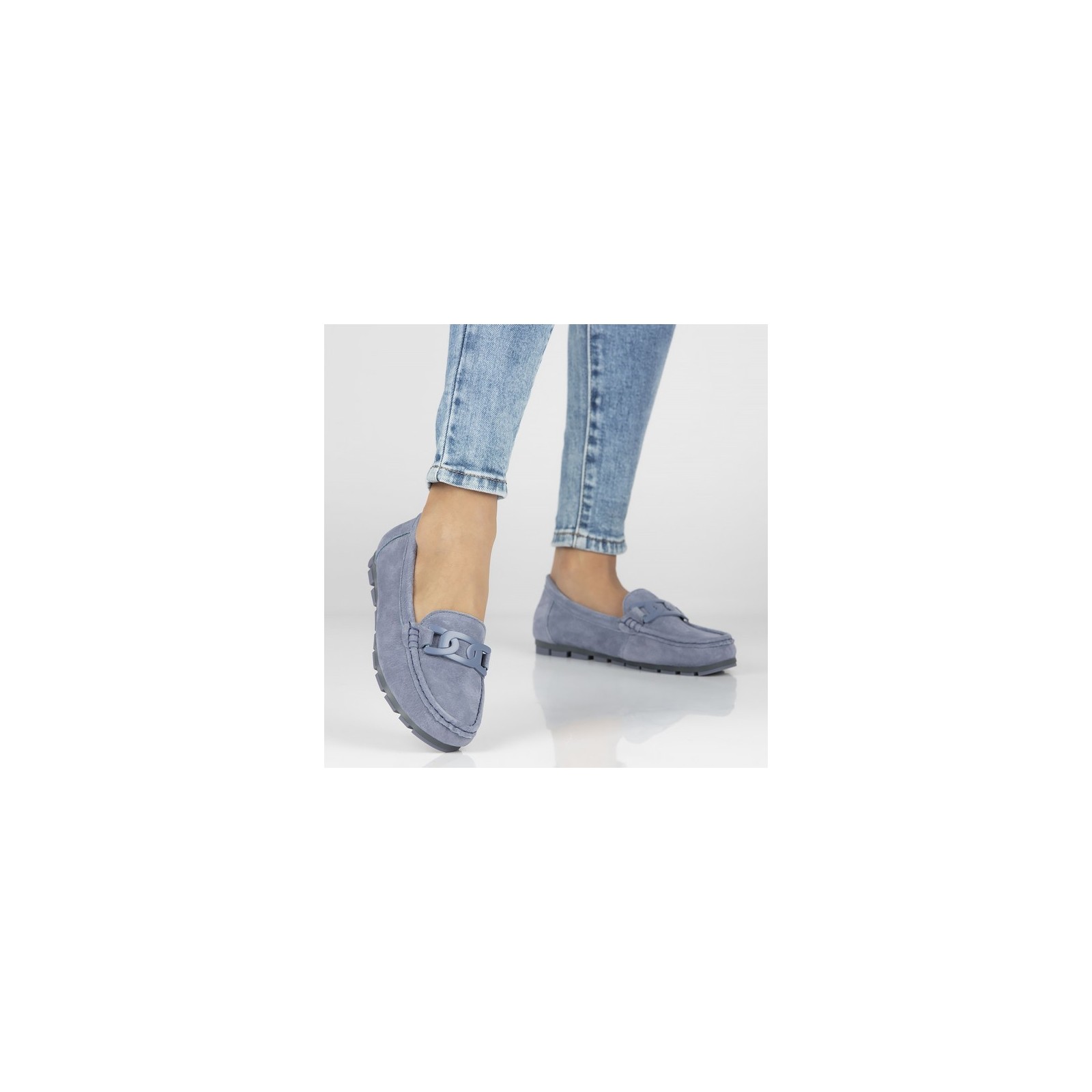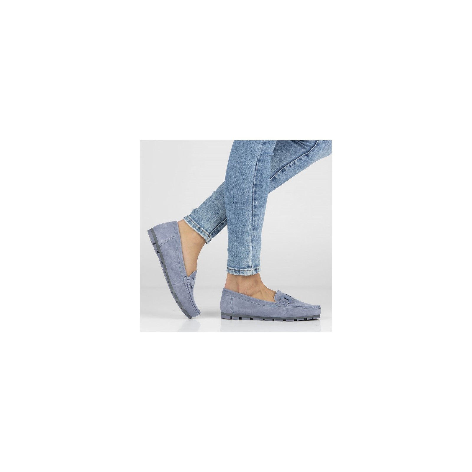 Czarne mokasyny damskie skórzane na obcasie Ryłko