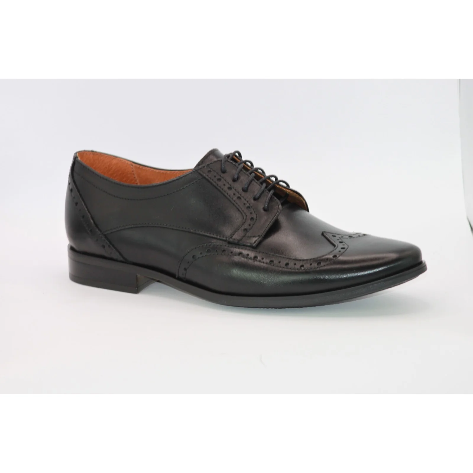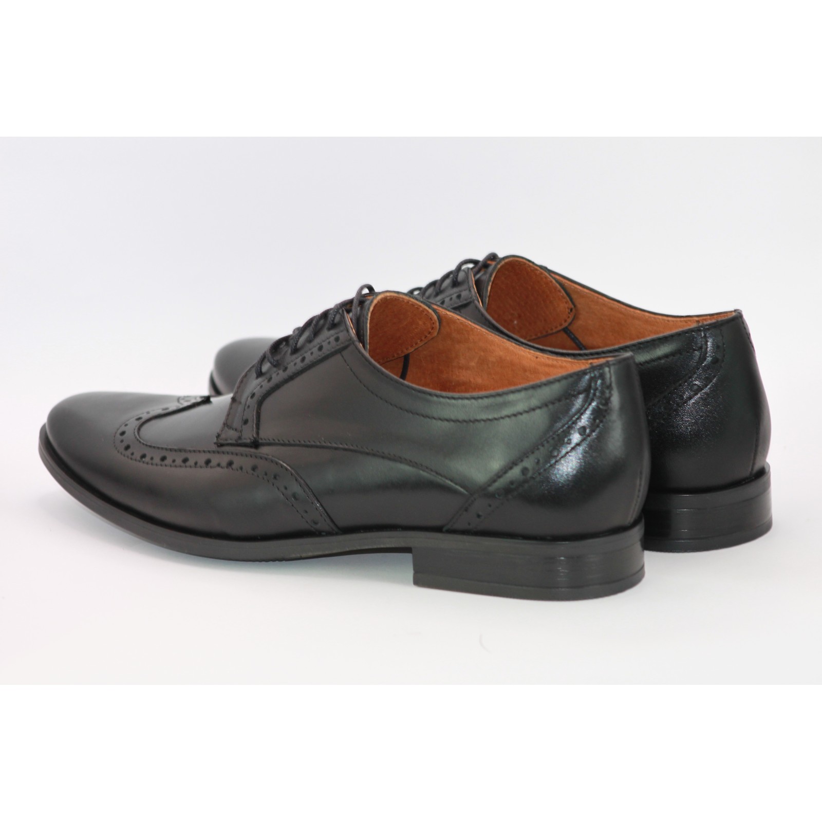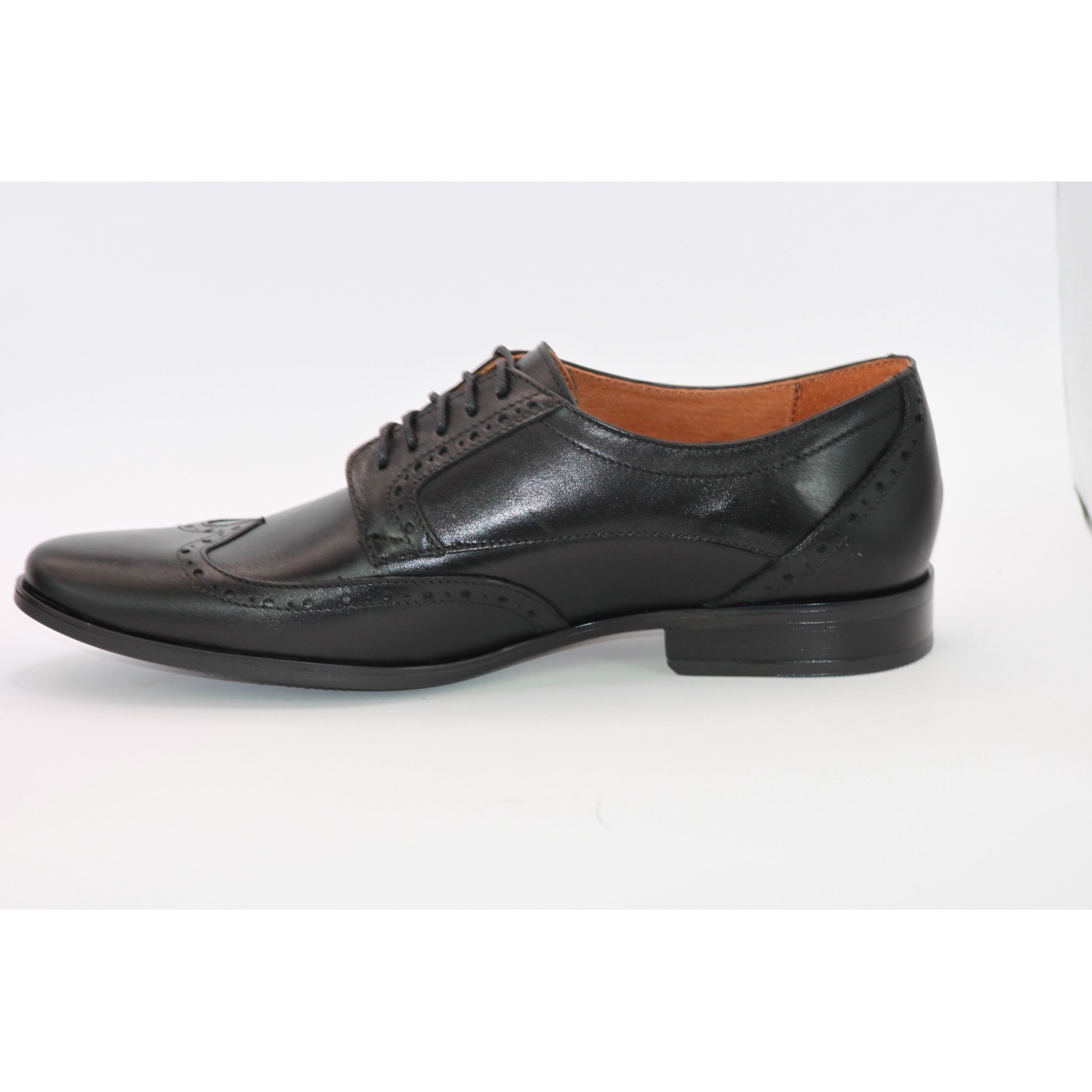 Półbuty męskie czarne skórzane sznurowane Lavaggio
