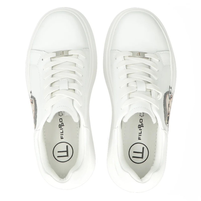 Białe skórzane sneakersy Filippo to uniwersalne obuwie, które doskonale pasuje do jeansów, sukienek czy sportowych zestawów. To must-have dla kobiet ceniących styl, komfort i jakość.