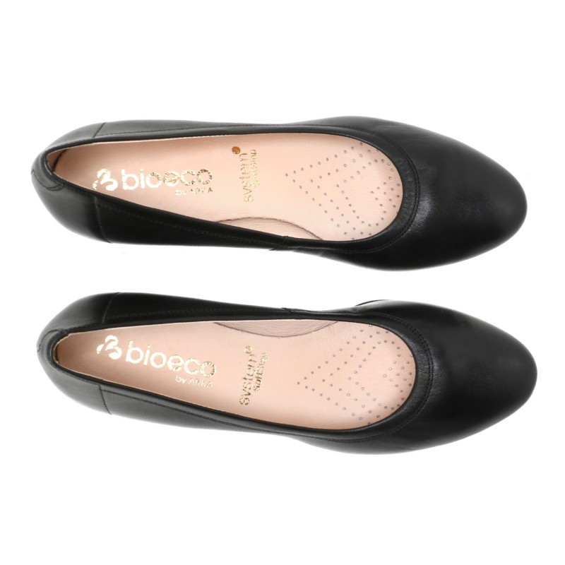Czarne skórzane czółenka na klocku Bioeco by Arka