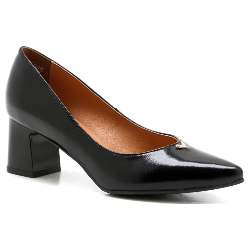 Klasyczne czarne czółenka damskie skórzane Wielbut na szpilce