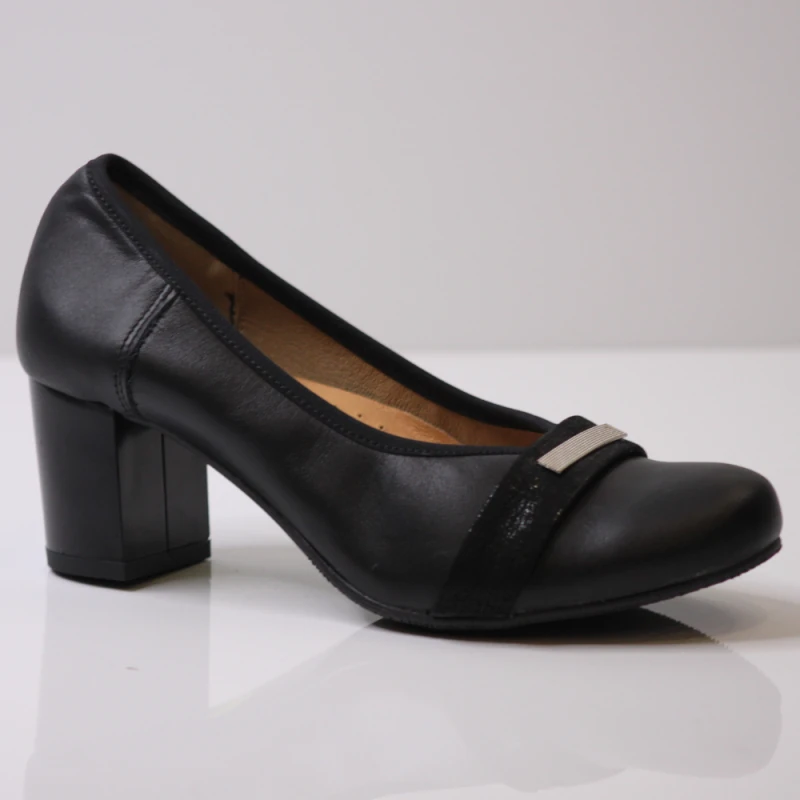 Czółenka wizytowe czarne z ozdobą Sabatina