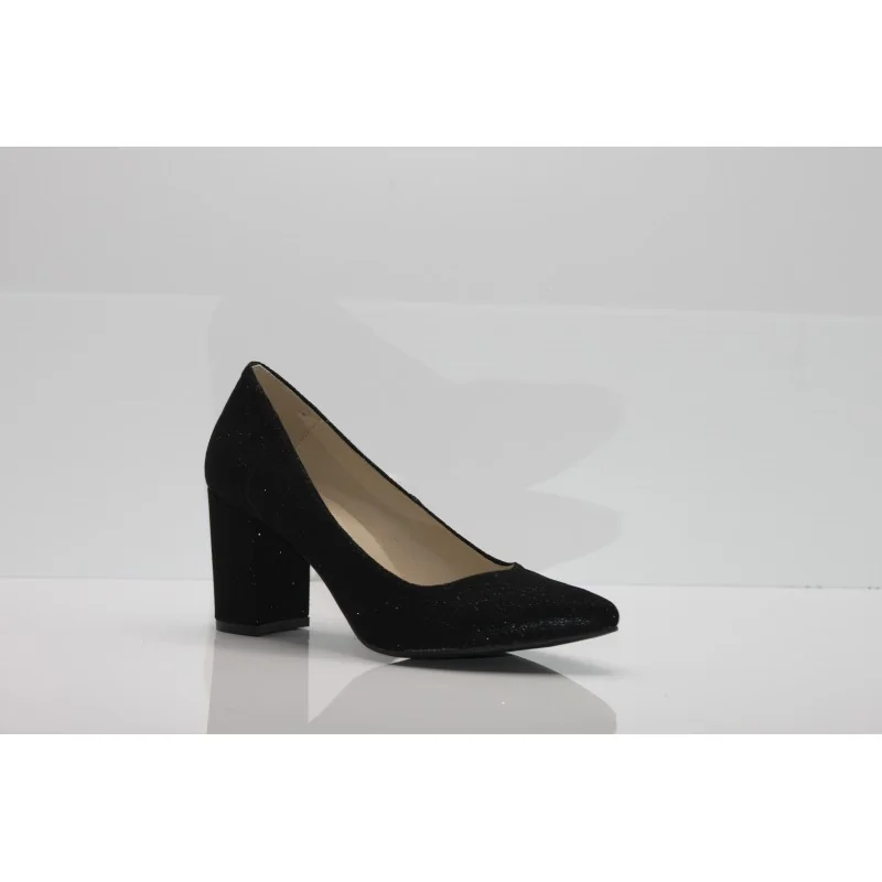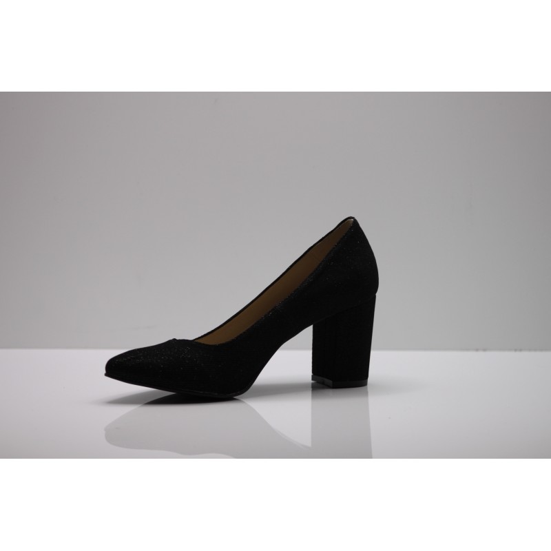 Cholewka w klasycznym czarnym kolorze została starannie wyprofilowana, aby zapewnić idealne dopasowanie do stopy. Stabilny słupek unosi sylwetkę, dodając elegancji i pewności siebie, a jednocześnie minimalizując obciążenie stóp podczas chodzenia.