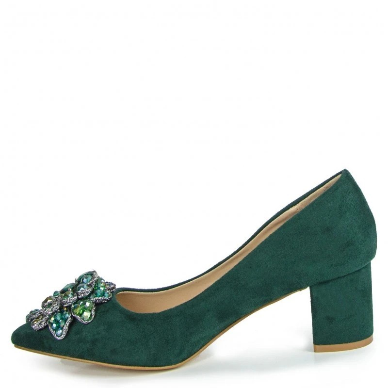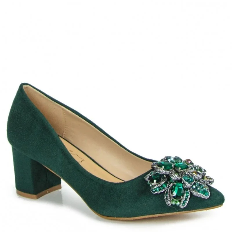Czółenka damskie zielone Sabatina z ozdobą na cholewce
