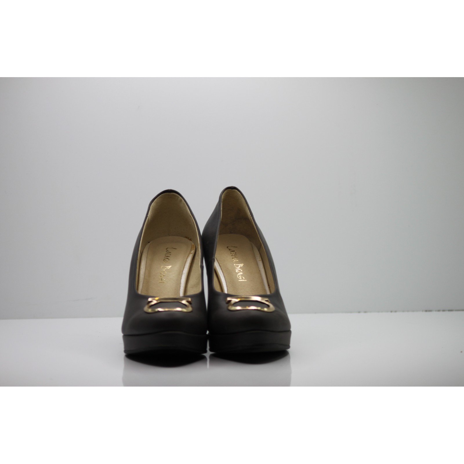 Klasyczne czółenka skórzane lakierowane szare na szpilce Wielbut