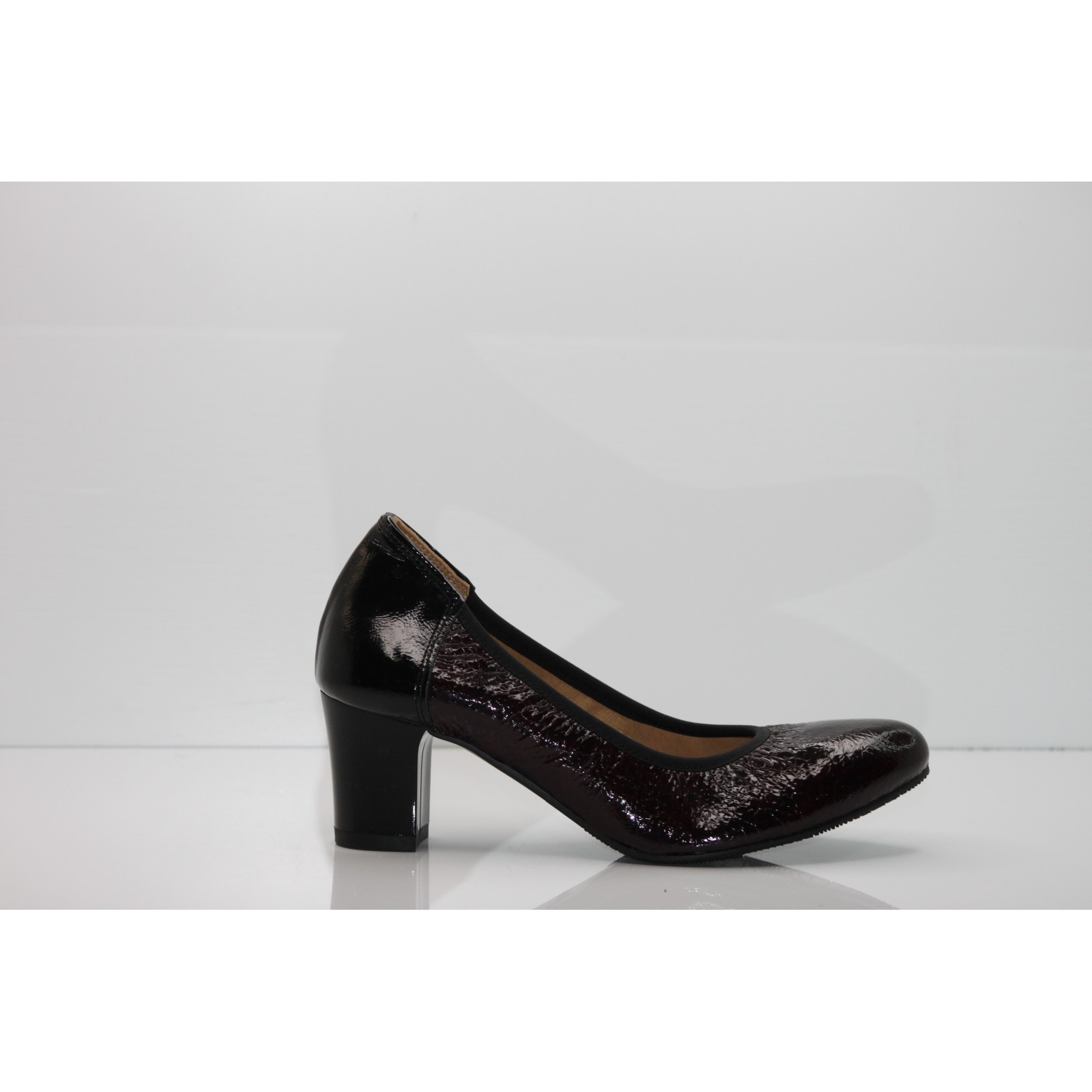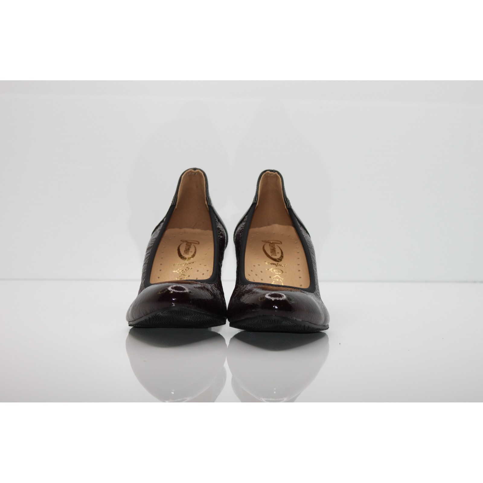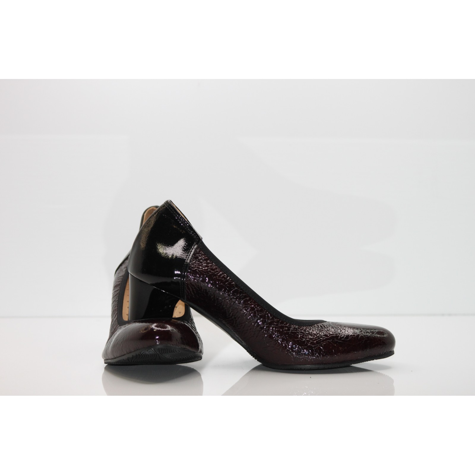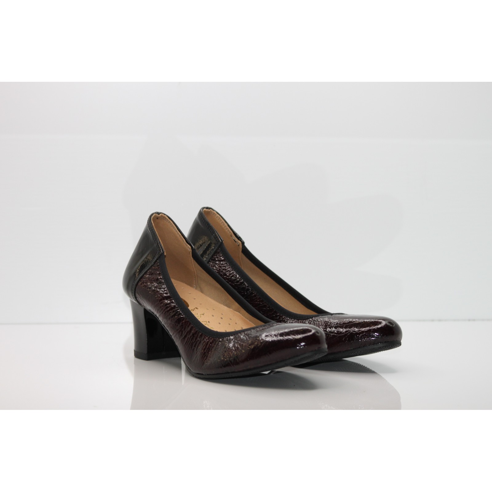 Bordowe skórzane lakierowane czółenka na słupku Jaromin