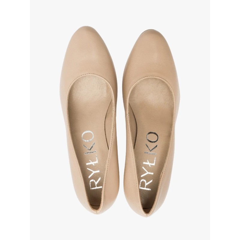 Czółenka skórzane Ryłko na słupku w kolorze beżowym