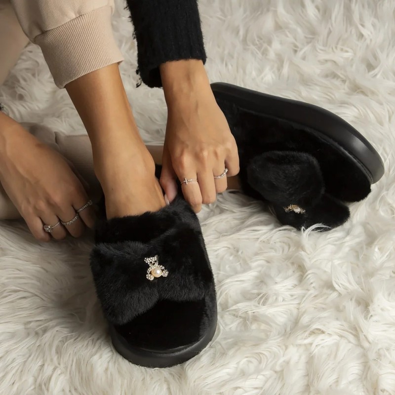 Kapcie damskie Filippo czarne z ozdobnym misiem