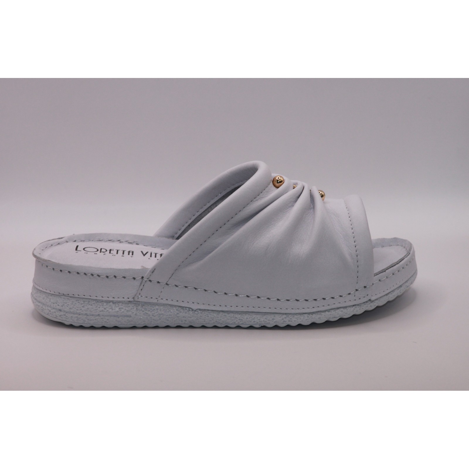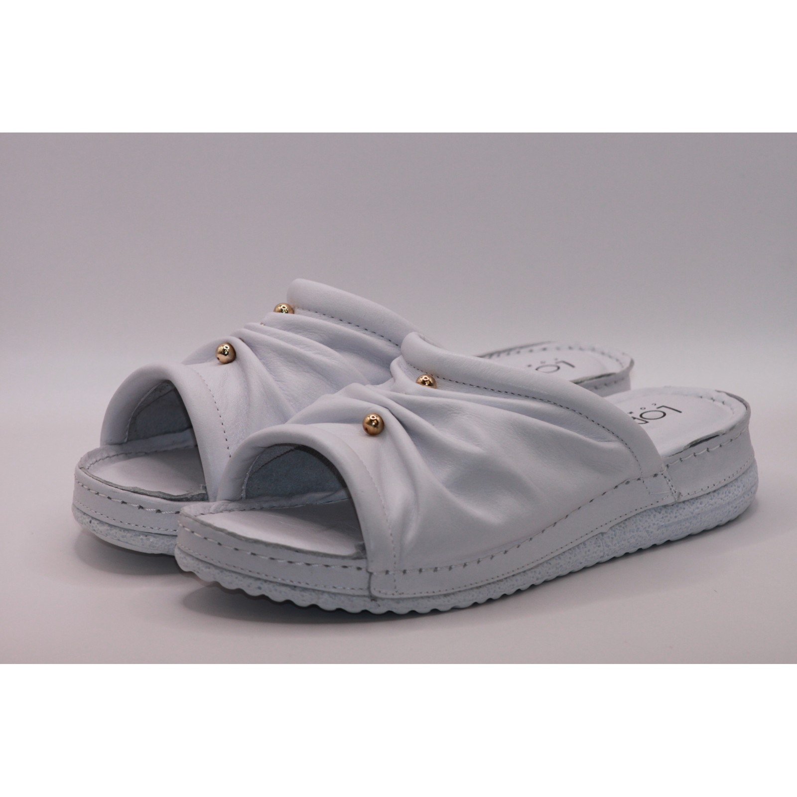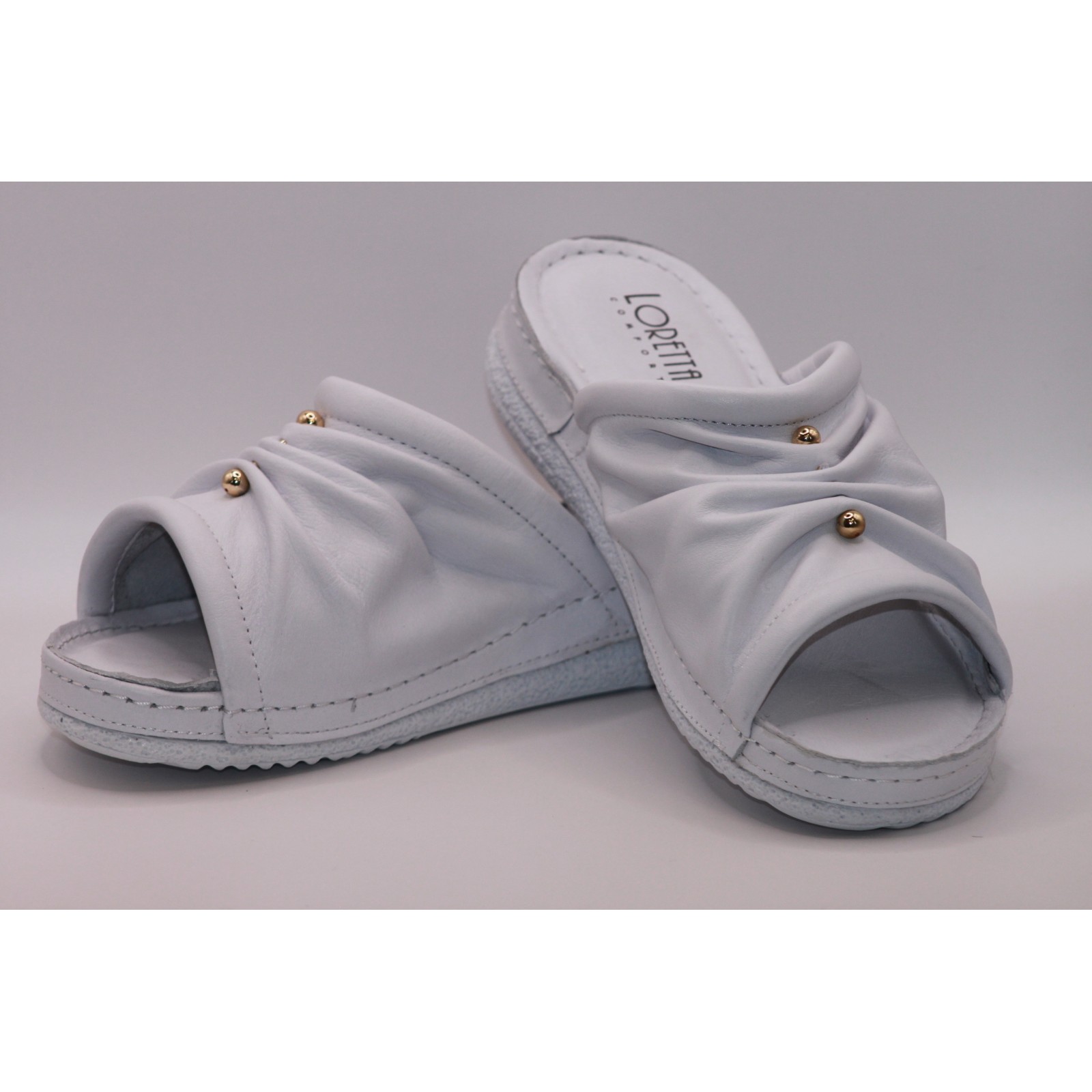 Fly Flot 77 J01 WC – białe skórzane klapki zdrowotne, wygodne i profilowane