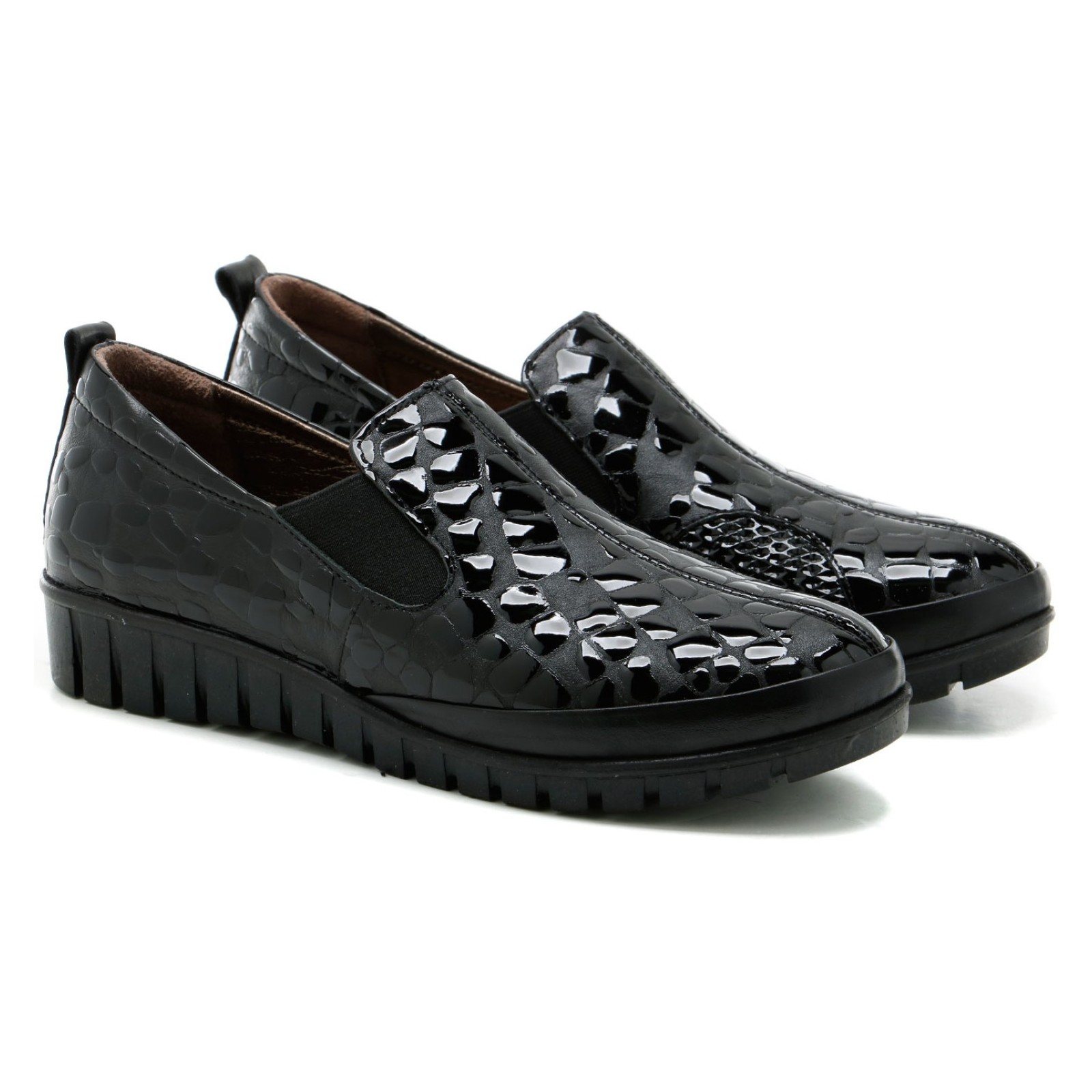 Czarne mokasyny damskie skórzane nakrapiane Loretta Vitale