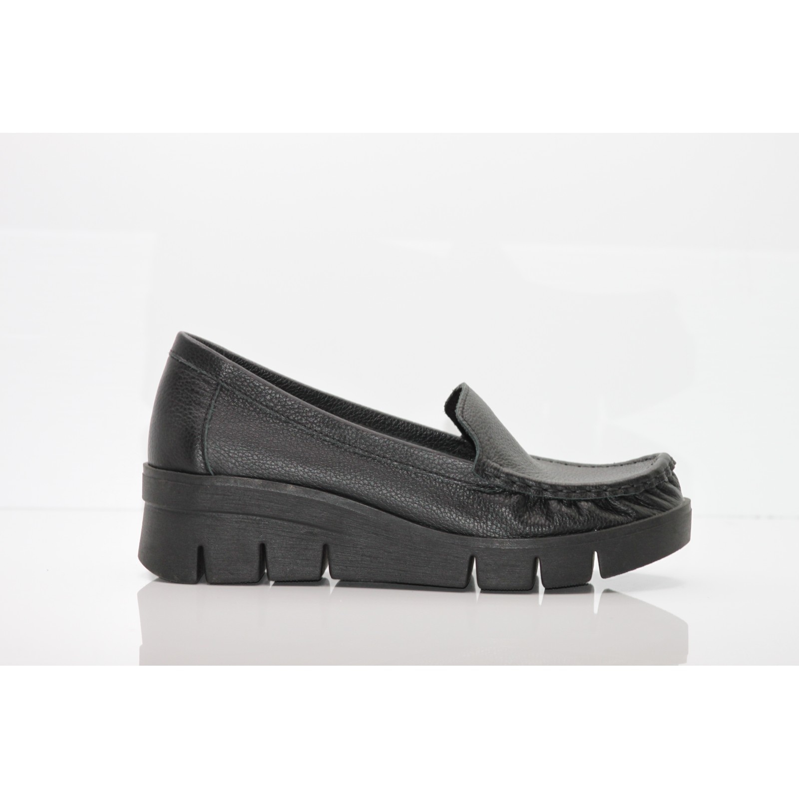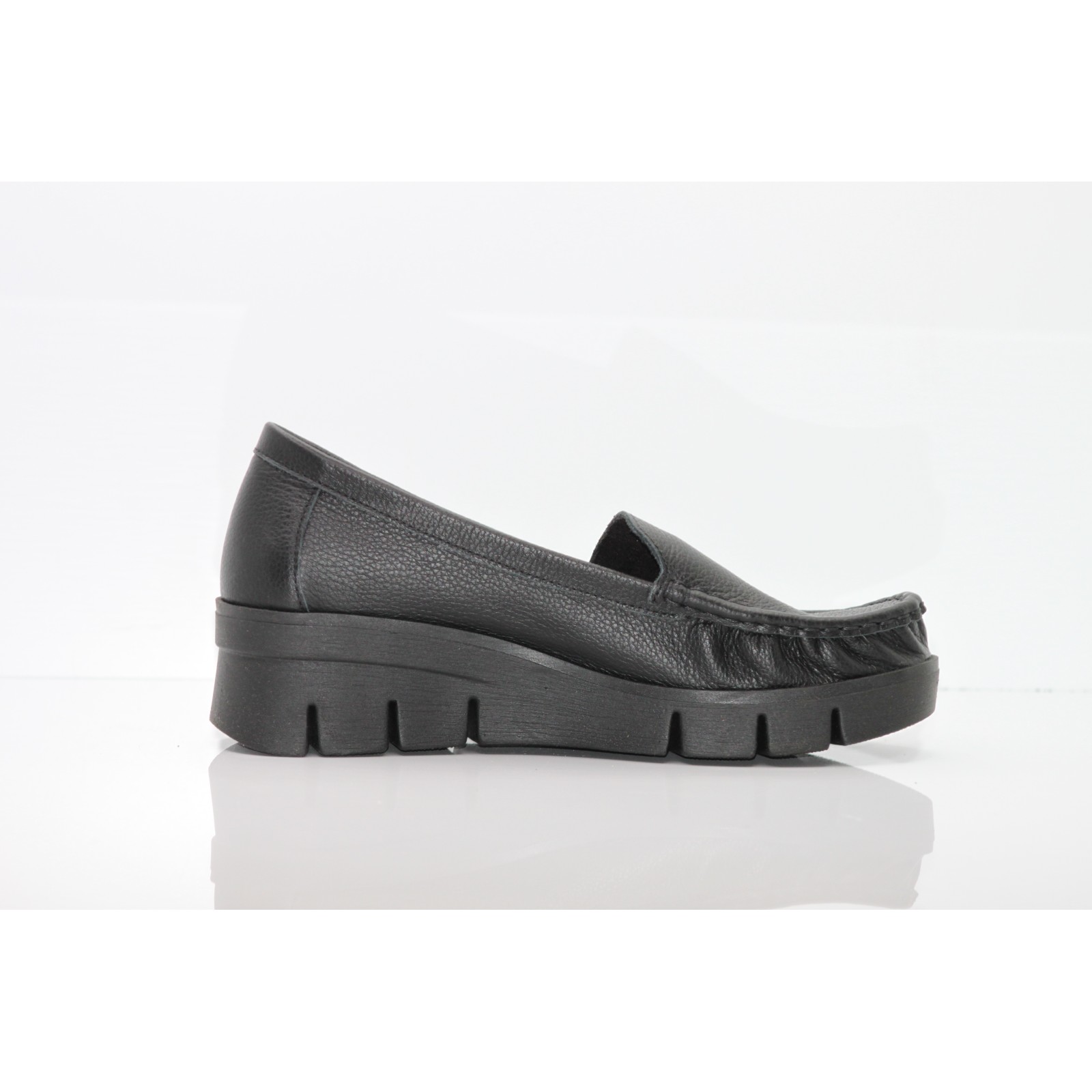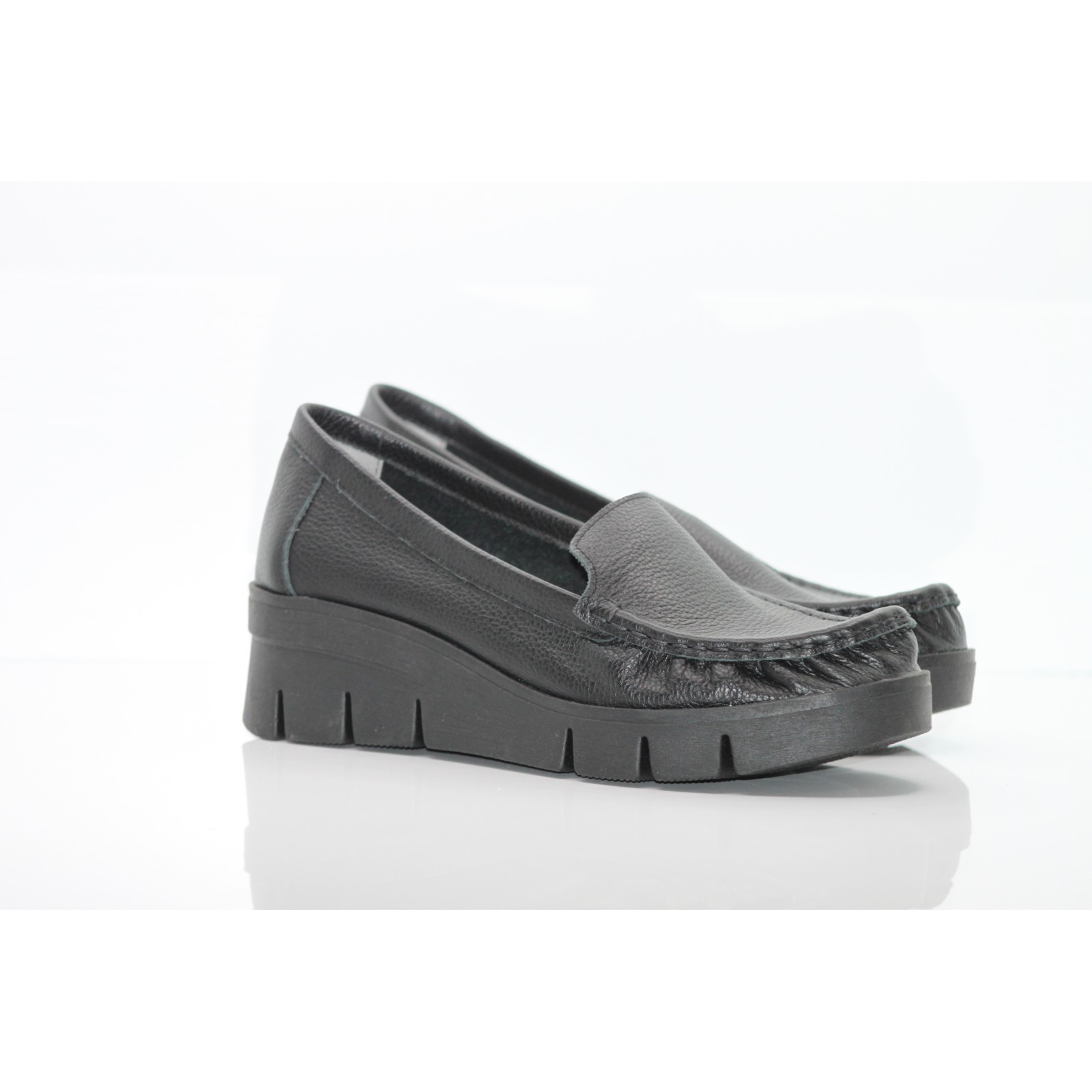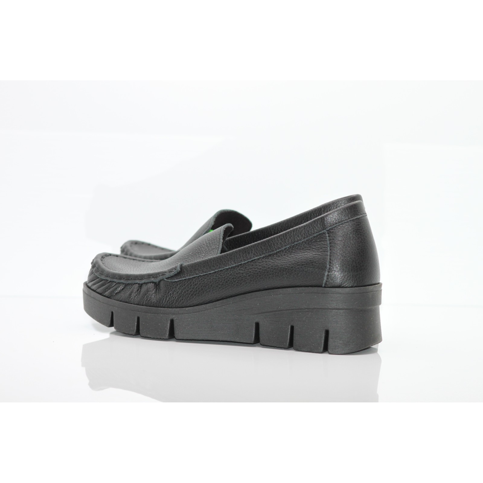Czarne skórzane mokasyny na koturnie