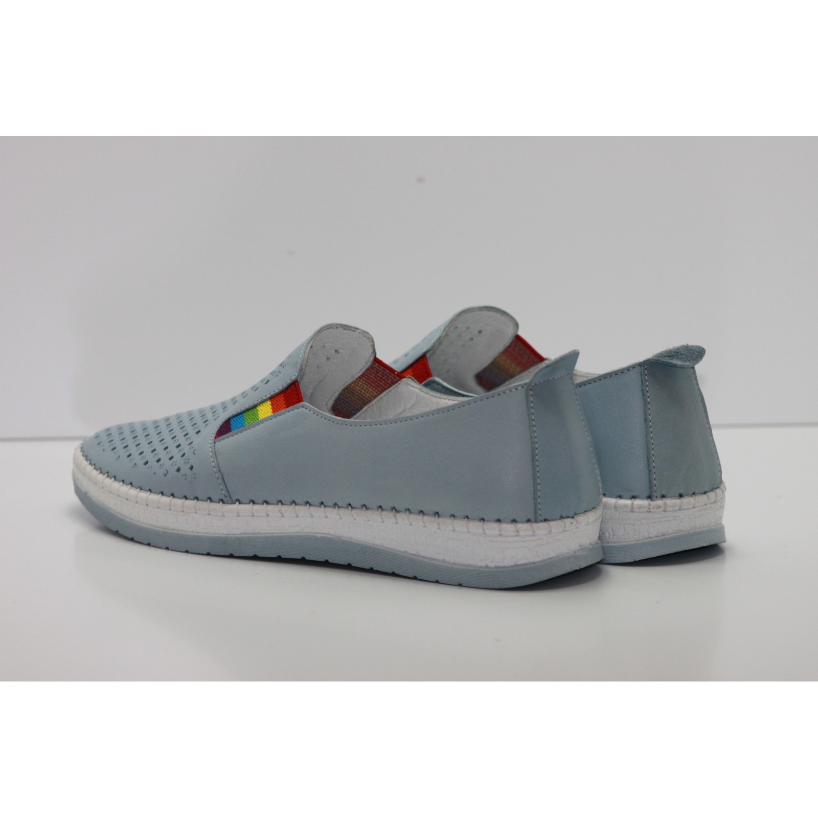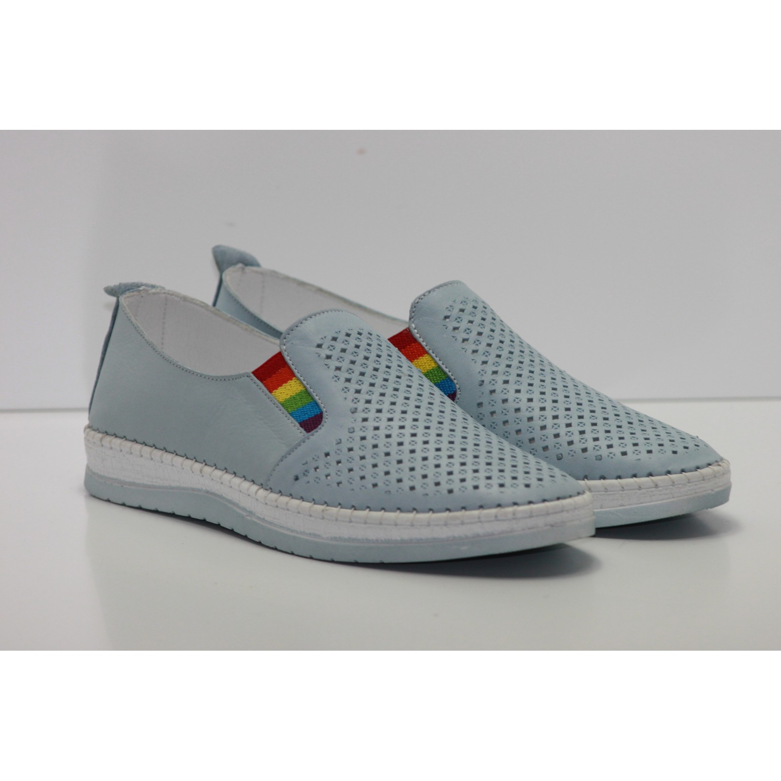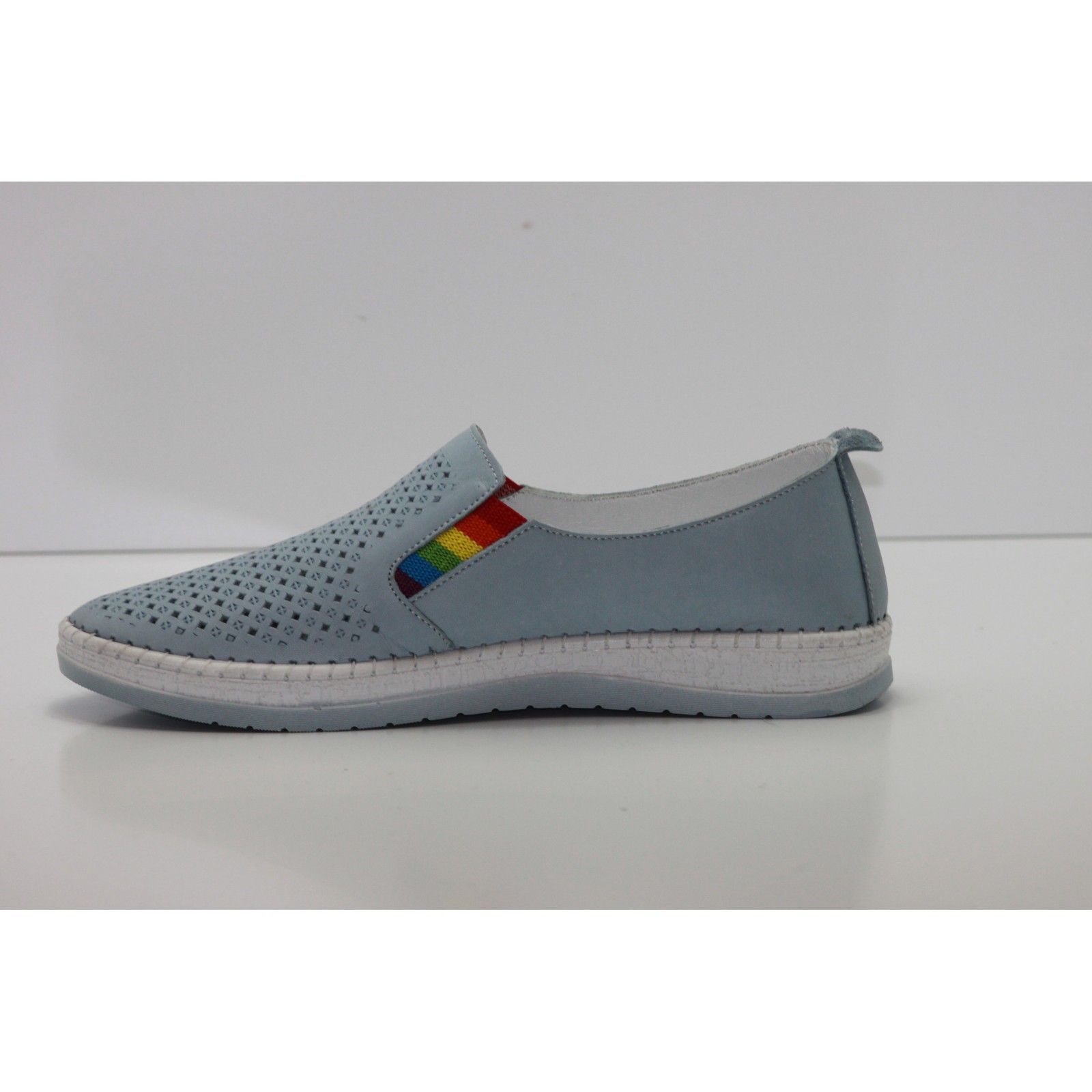 Delikatny niebieski kolor świetnie komponuje się z jasnymi stylizacjami, zarówno codziennymi, jak i bardziej eleganckimi, wprowadzając do nich świeżość i lekkość. To doskonały wybór dla kobiet, które szukają przewiewnego, wygodnego i stylowego obuwia na co dzień.
