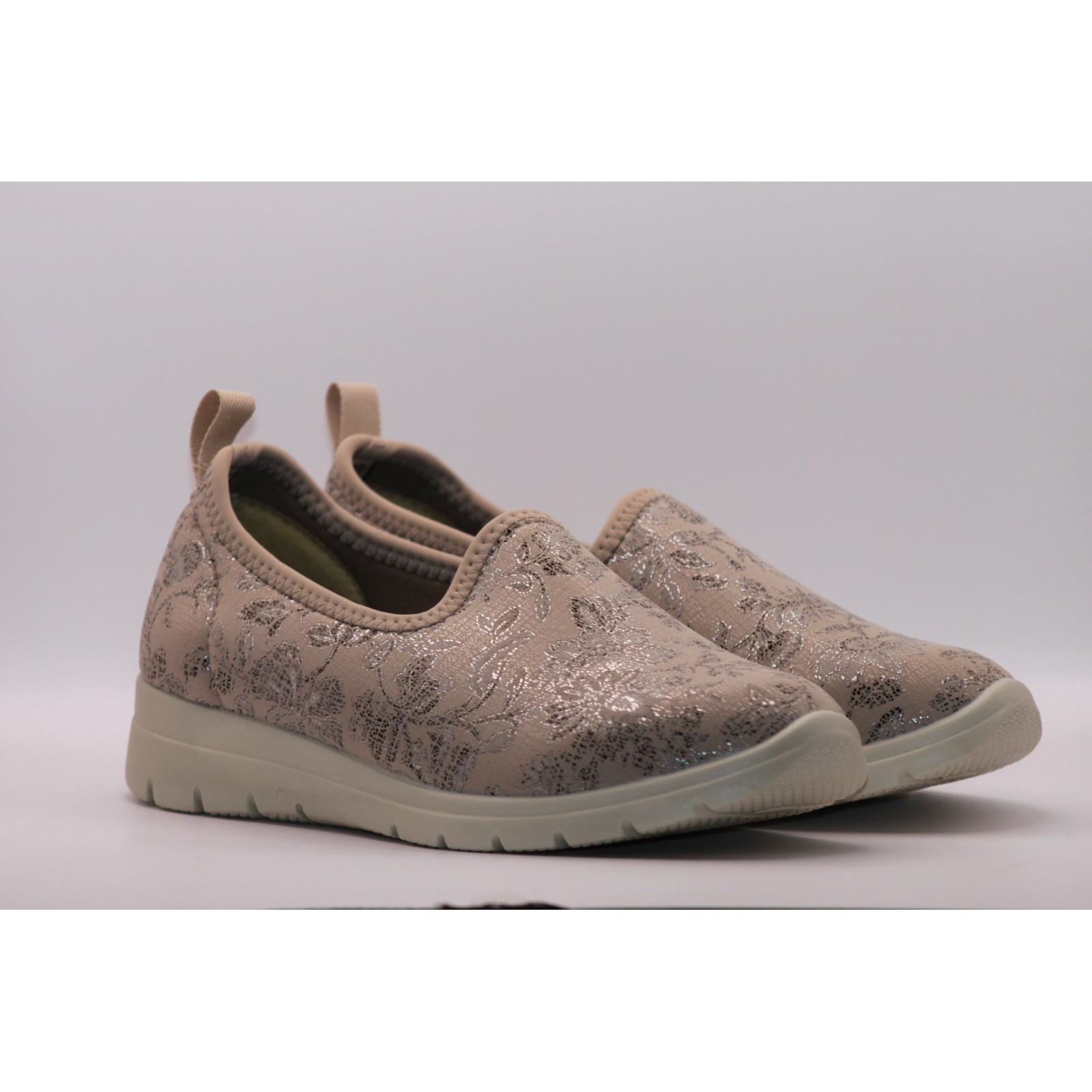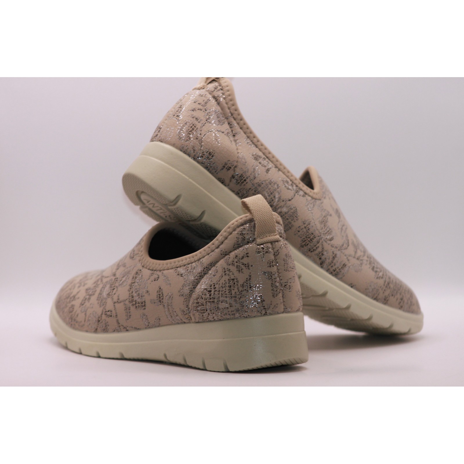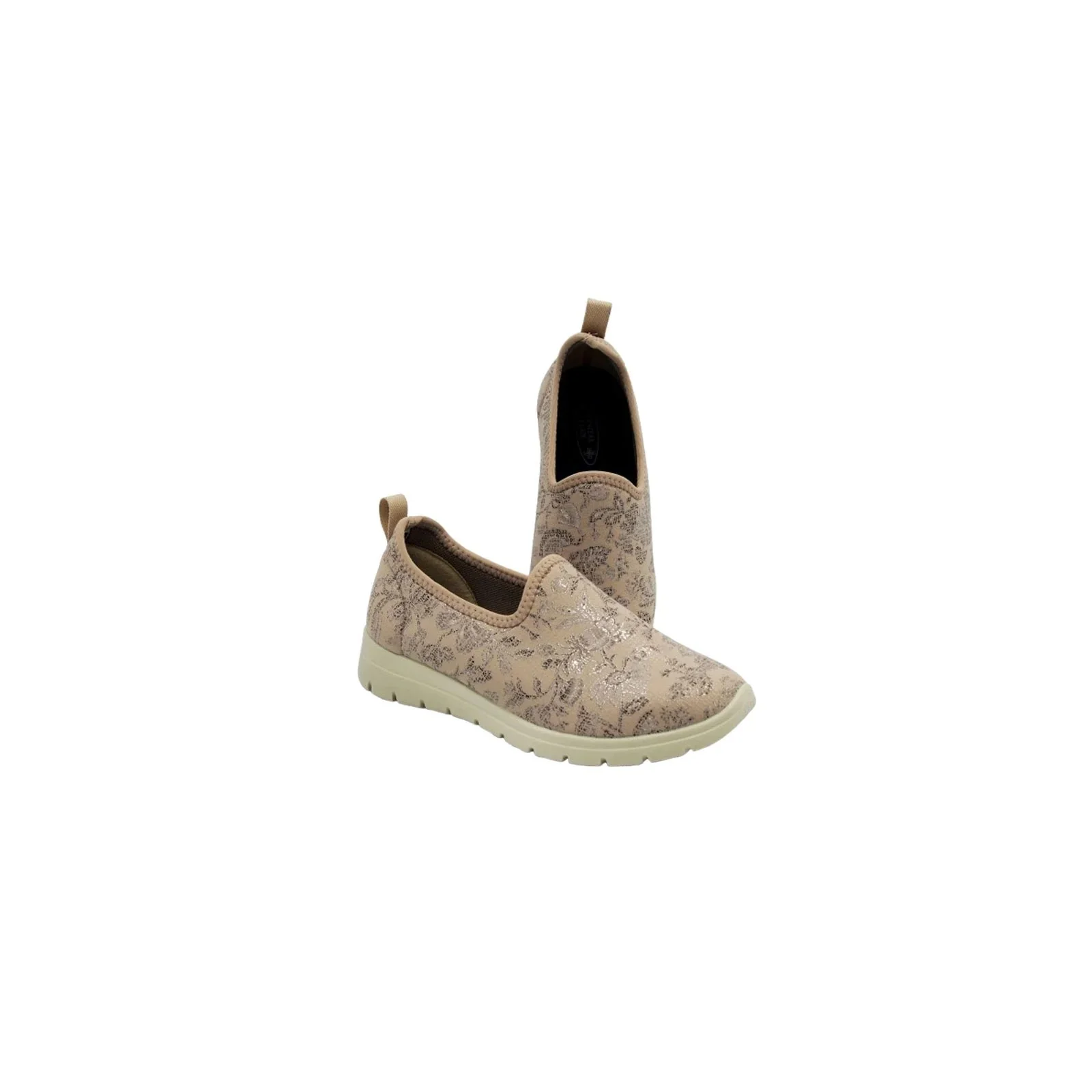 To idealny wybór dla osób ceniących komfort i specjalistyczne obuwie. Wykonane z rozciągliwego materiału tekstylnego, doskonale dopasowują się do kształtu stopy, minimalizując nacisk i otarcia. Neutralny beżowy kolor sprawia, że świetnie komponują się z codziennymi stylizacjami.