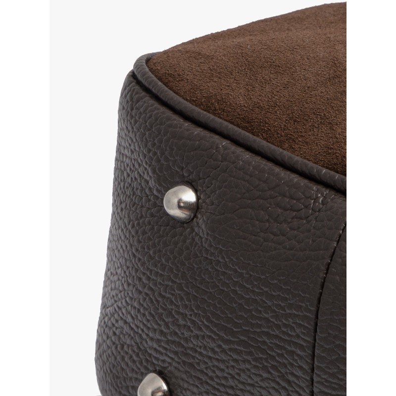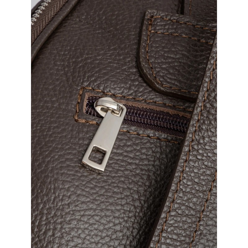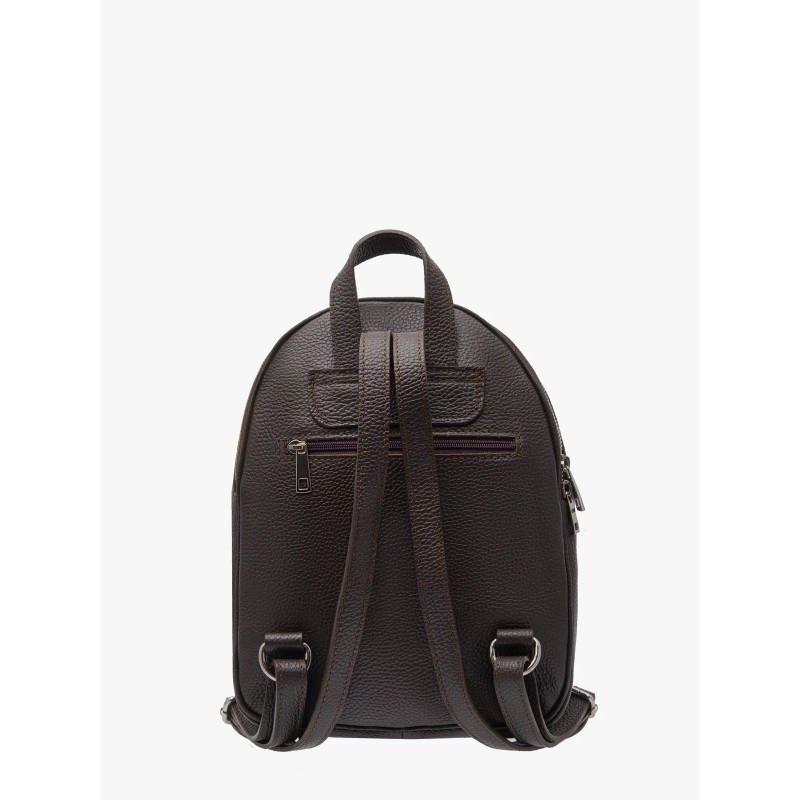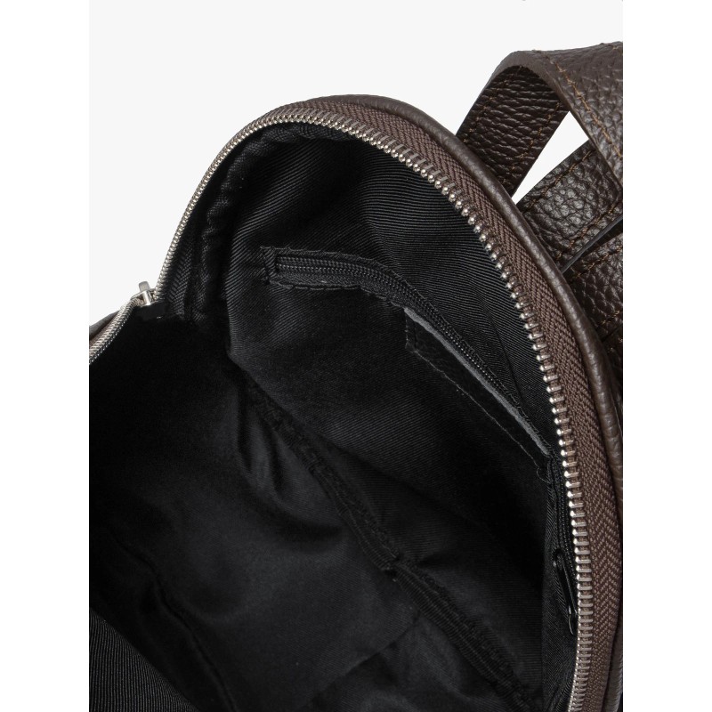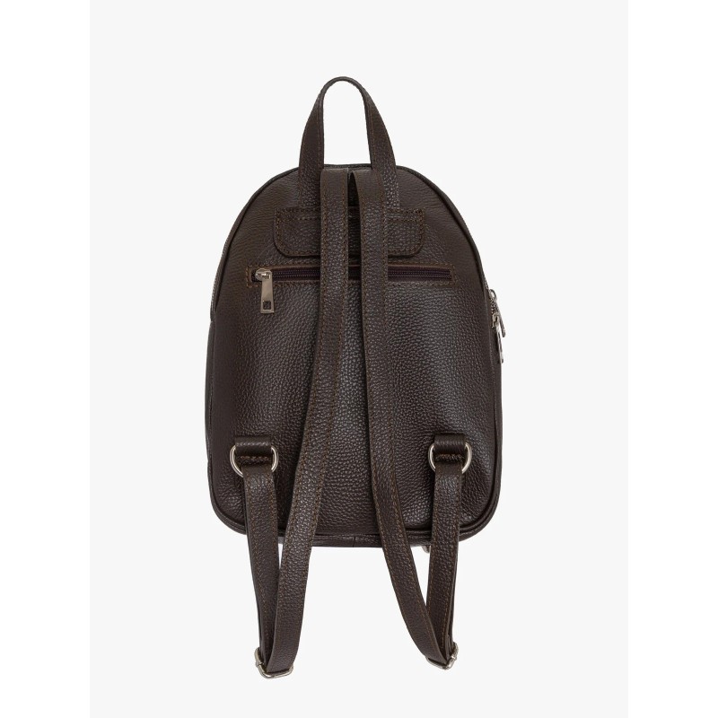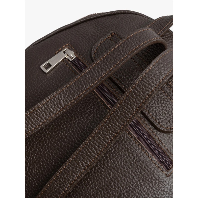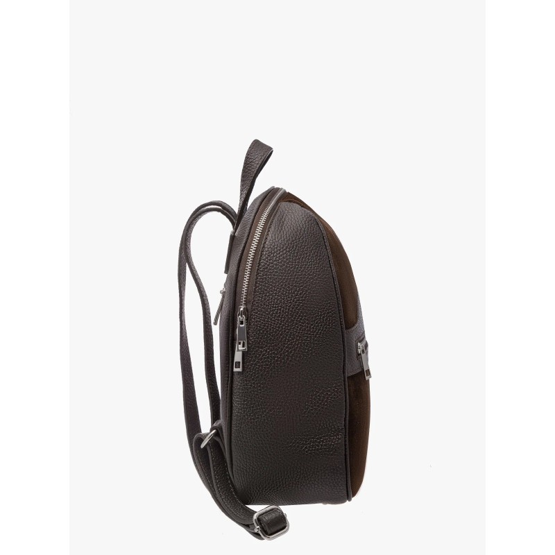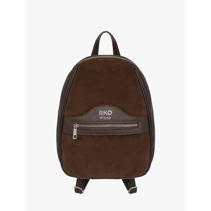 Plecak ma średnią wielkość, niemieszczącą formatu A4, co czyni go kompaktowym i poręcznym rozwiązaniem na najważniejsze rzeczy. Zapinany na solidny zamek błyskawiczny, zapewnia bezpieczeństwo przechowywanej zawartości. Połączenie skóry licowej i welurowej nadaje mu unikalny charakter, a głęboki brązowy kolor dodaje elegancji.