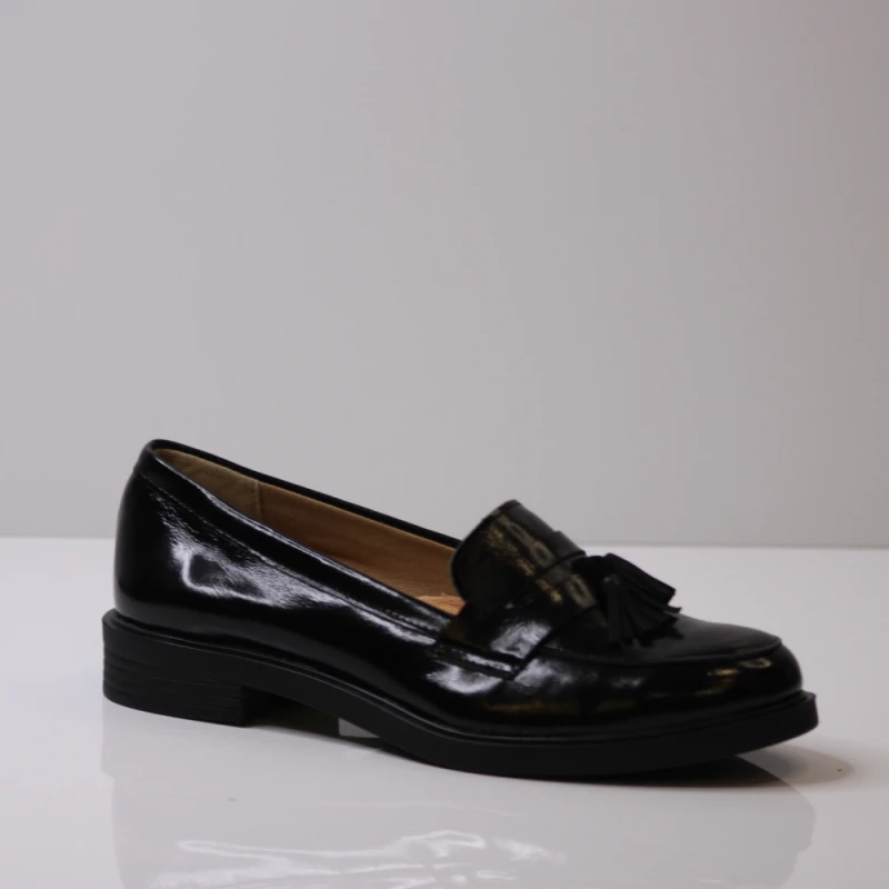 To eleganckie obuwie, które doskonale łączy klasyczny styl z nowoczesnym połyskiem. Wykonane z wysokiej jakości lakierowanej skóry, wyróżniają się trwałością, starannością wykonania i wyrafinowanym designem, idealnym na każdą okazję.