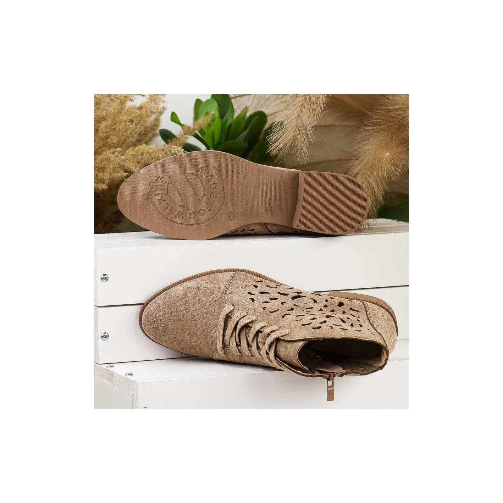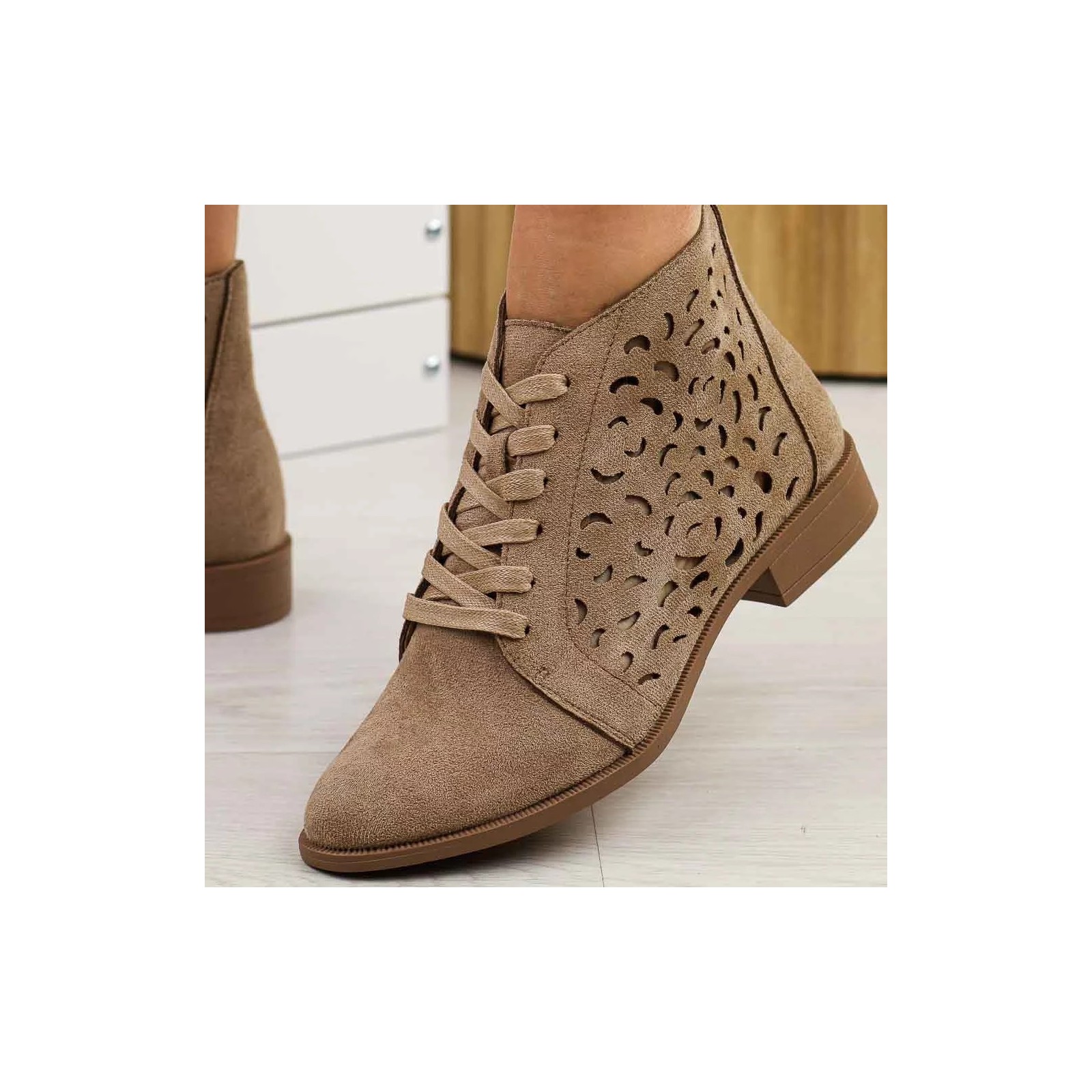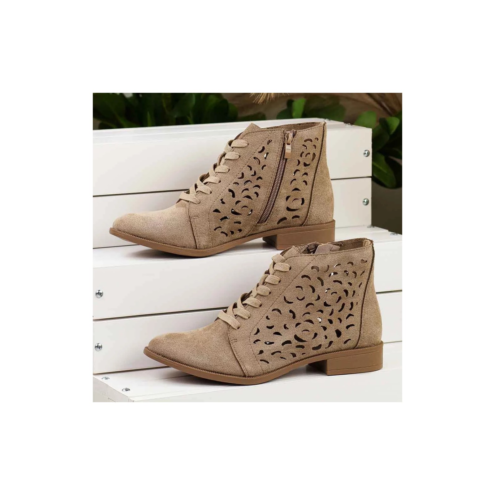 Beżowe zamszowe botki damskie M.Daszyński